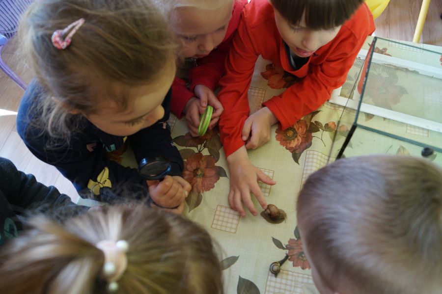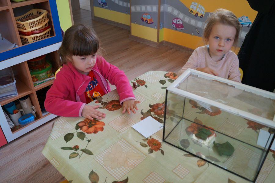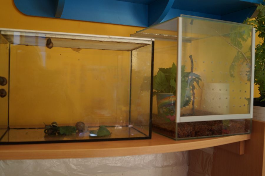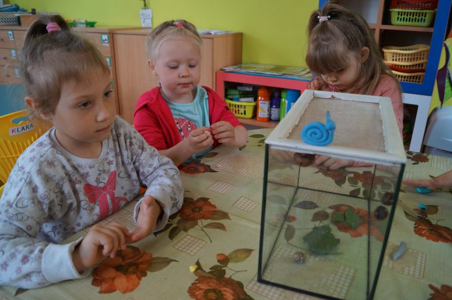 Maluchy realizują temat kompleksowy „Na łące”, dlatego tez założyliśmy tymczasową hodowlę ślimaków. Cieszy się ona ogromnym zainteresowaniem wszystkich przedszkolaków, a nasze patyczaki zyskały sąsiadów. 😉