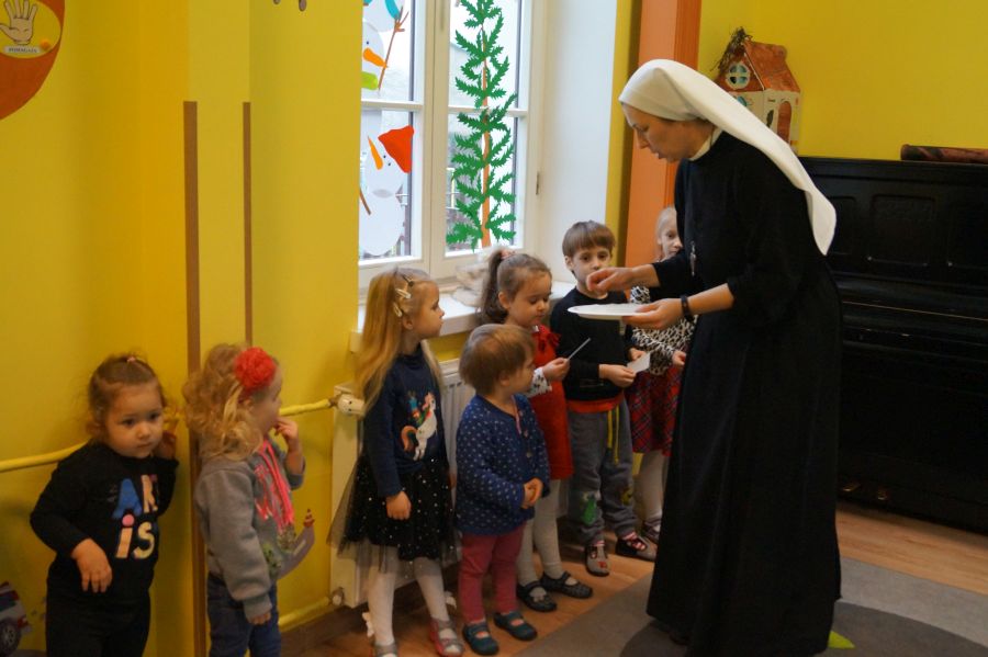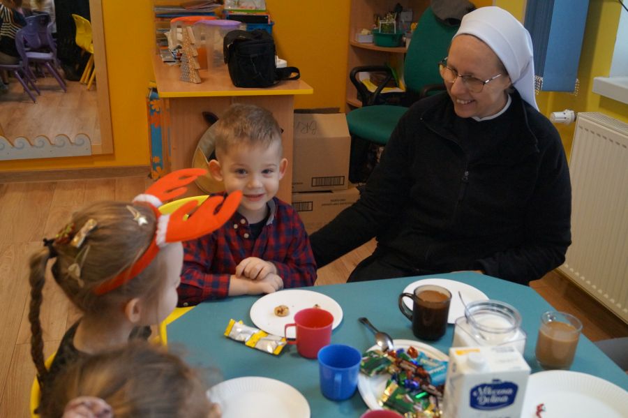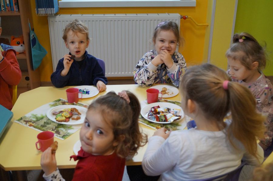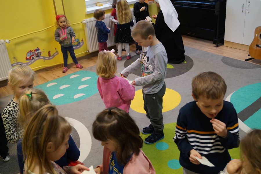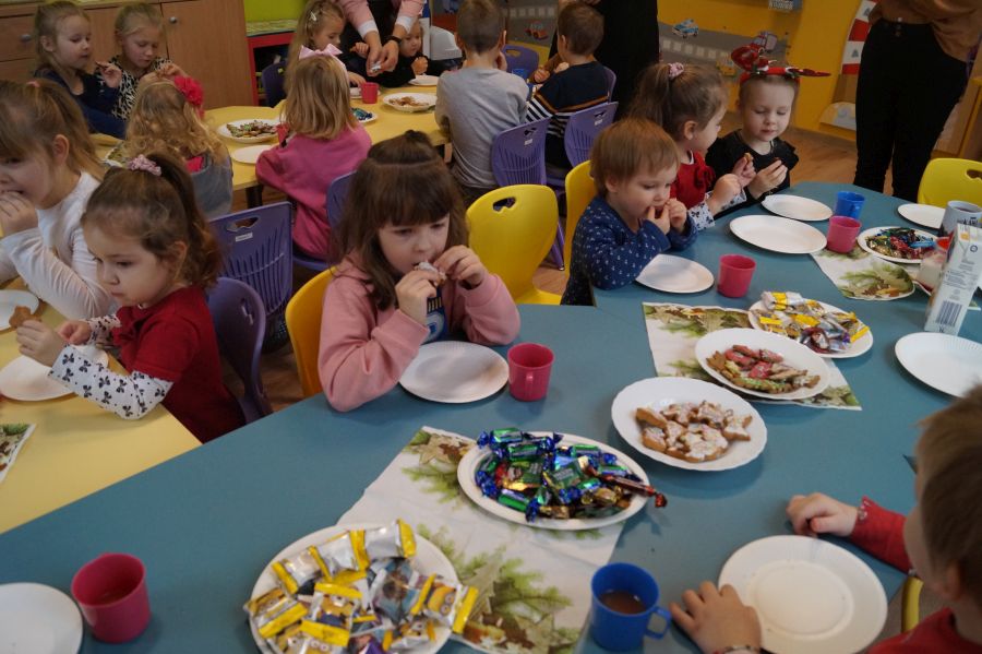 W niezbyt dużej grupie dzieci oraz pracowników spotkaliśmy się, aby złożyć sobie życzenia i na chwilę usiąść razem do stołu.