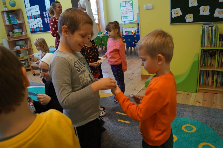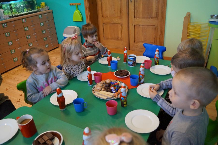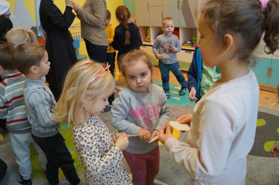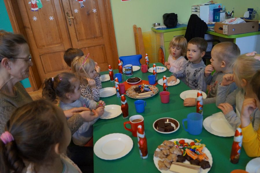 W ostatnim dniu pobytu w przedszkolu, w tym roku kalendarzowym dzieci wraz z opiekunami podzieliły się opłatkiem i złożyły sobie życzenia.