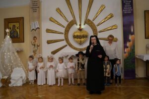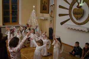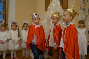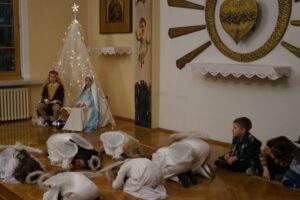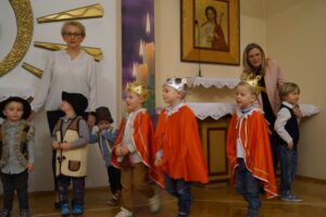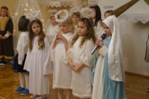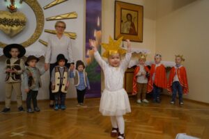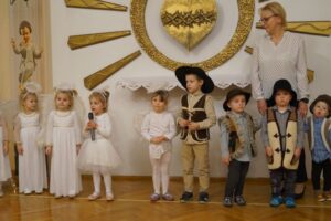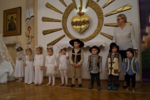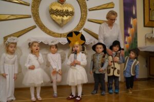 Czas adwentu bardzo szybko mija. Dzieci starannie przygotowują się na Uroczystość Bożego Narodzenia. Tradycyjnie obie grupy wystąpiły w przedstawieniach jasełkowych dla swoich bliskich. Wszystkie dzieci były bardzo podekscytowane, chętnie recytowały wierszyki, śpiewały kolędy, pastorałki oraz tańczyły. Dziękujemy rodzicom Zosi i Stasia za podzielenie się swoimi talentami muzycznymi i ubogacenie spotkania swoim śpiewem oraz grą na gitarze.