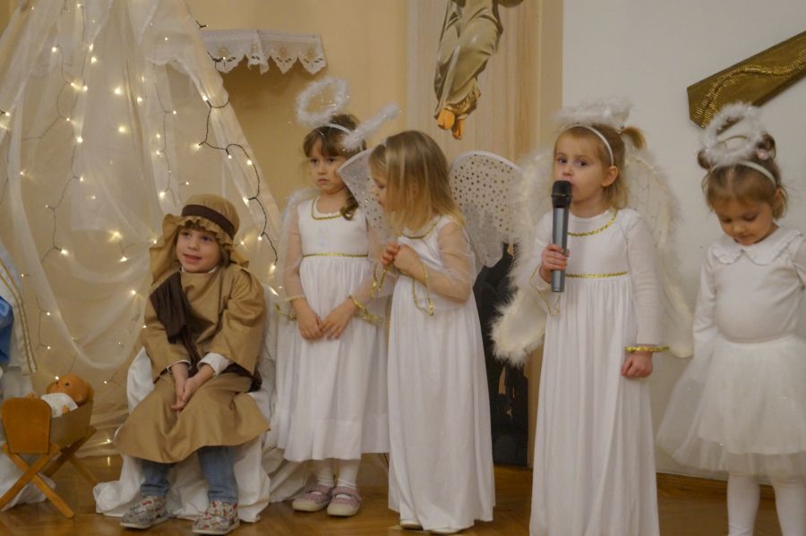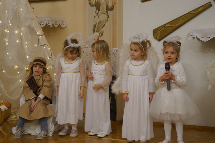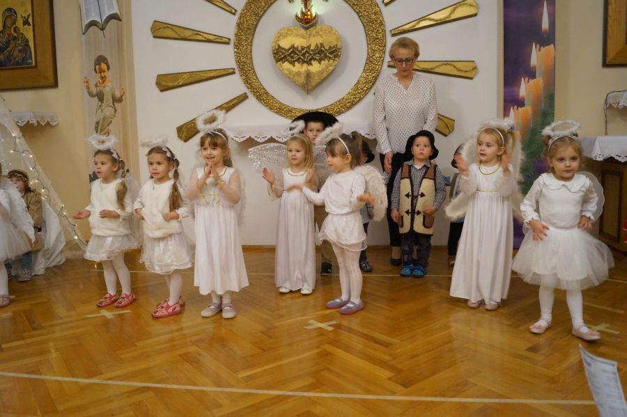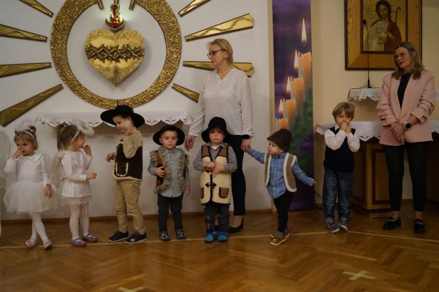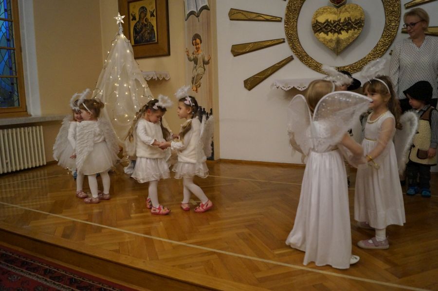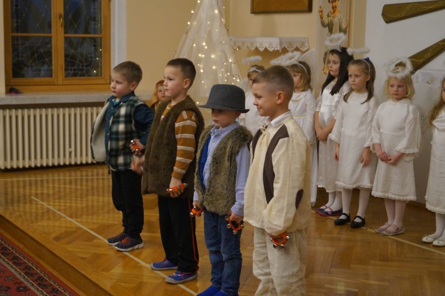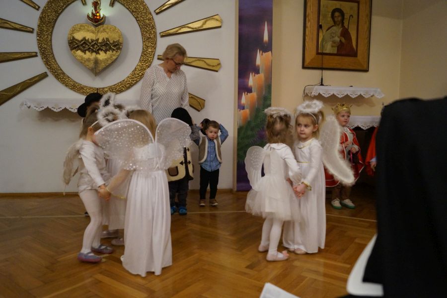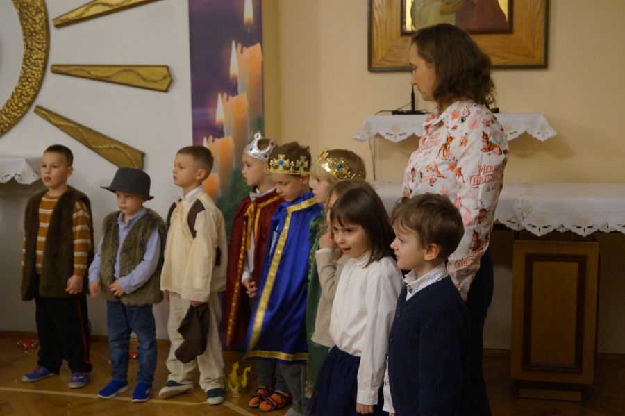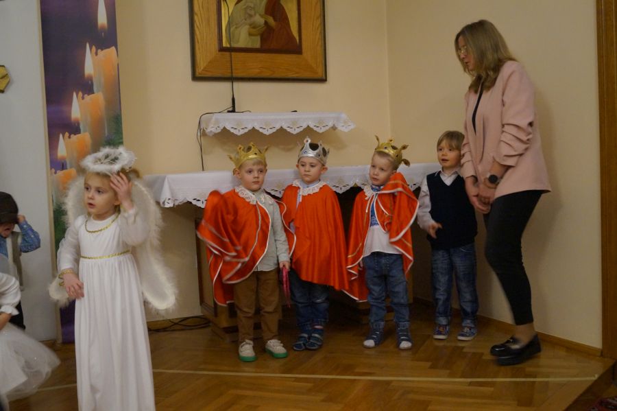 Czas adwentu bardzo szybko mija. Dzieci starannie przygotowują się na Uroczystość Bożego Narodzenia. Tradycyjnie obie grupy wystąpiły w przedstawieniach jasełkowych dla swoich bliskich. Wszystkie dzieci były bardzo podekscytowane, chętnie recytowały wierszyki, śpiewały kolędy, pastorałki oraz tańczyły. Dziękujemy rodzicom Zosi i Stasia za podzielenie się swoimi talentami muzycznymi i ubogacenie spotkania swoim śpiewem oraz grą na gitarze.