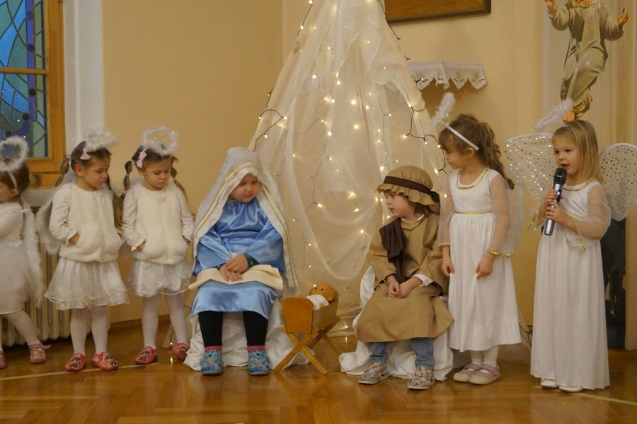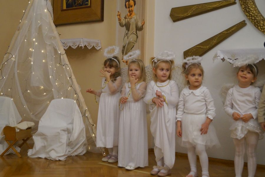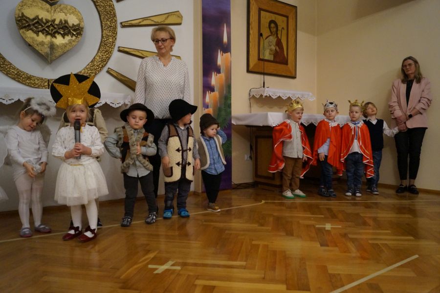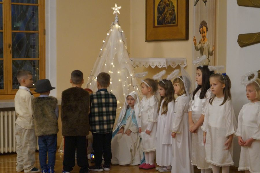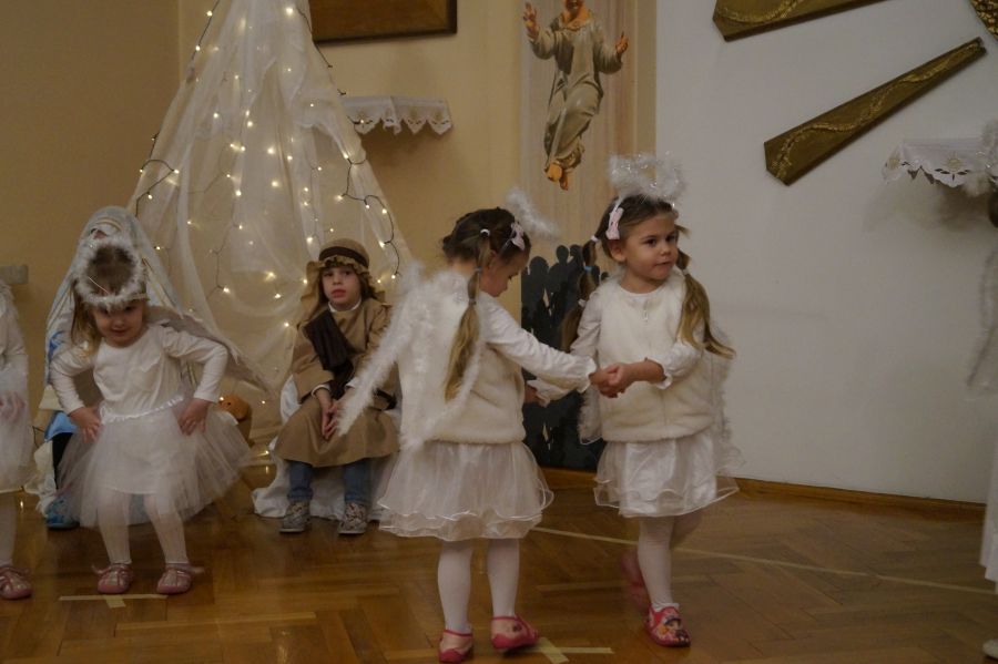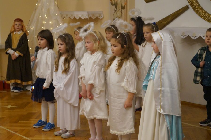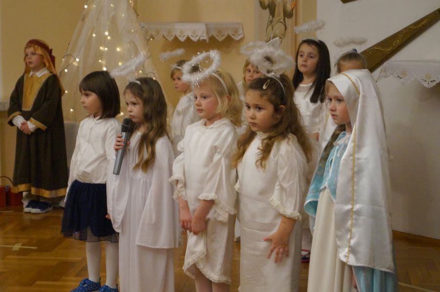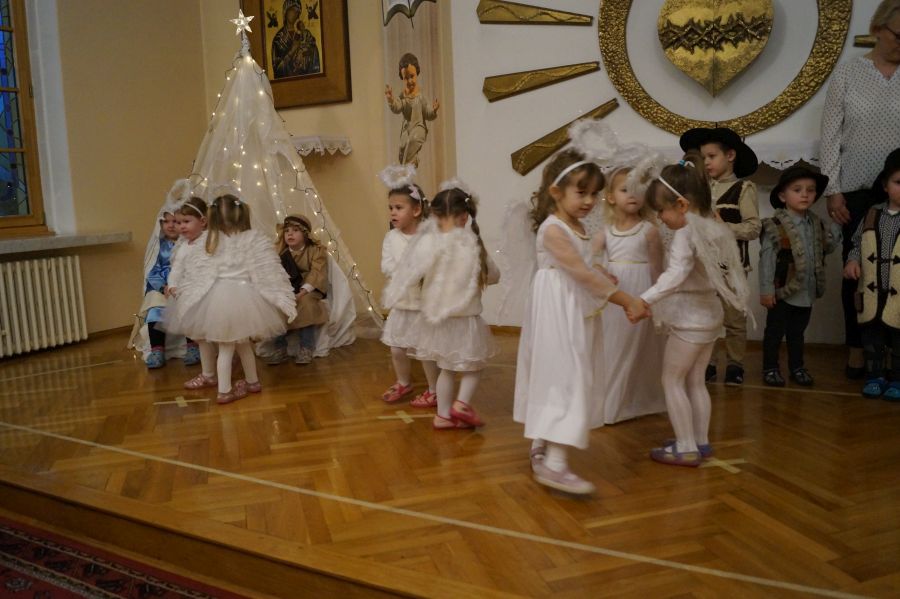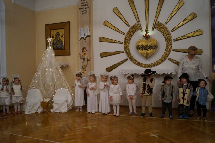 Czas adwentu bardzo szybko mija. Dzieci starannie przygotowują się na Uroczystość Bożego Narodzenia. Tradycyjnie obie grupy wystąpiły w przedstawieniach jasełkowych dla swoich bliskich. Wszystkie dzieci były bardzo podekscytowane, chętnie recytowały wierszyki, śpiewały kolędy, pastorałki oraz tańczyły. Dziękujemy rodzicom Zosi i Stasia za podzielenie się swoimi talentami muzycznymi i ubogacenie spotkania swoim śpiewem oraz grą na gitarze.