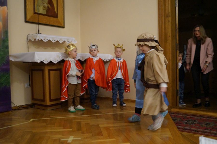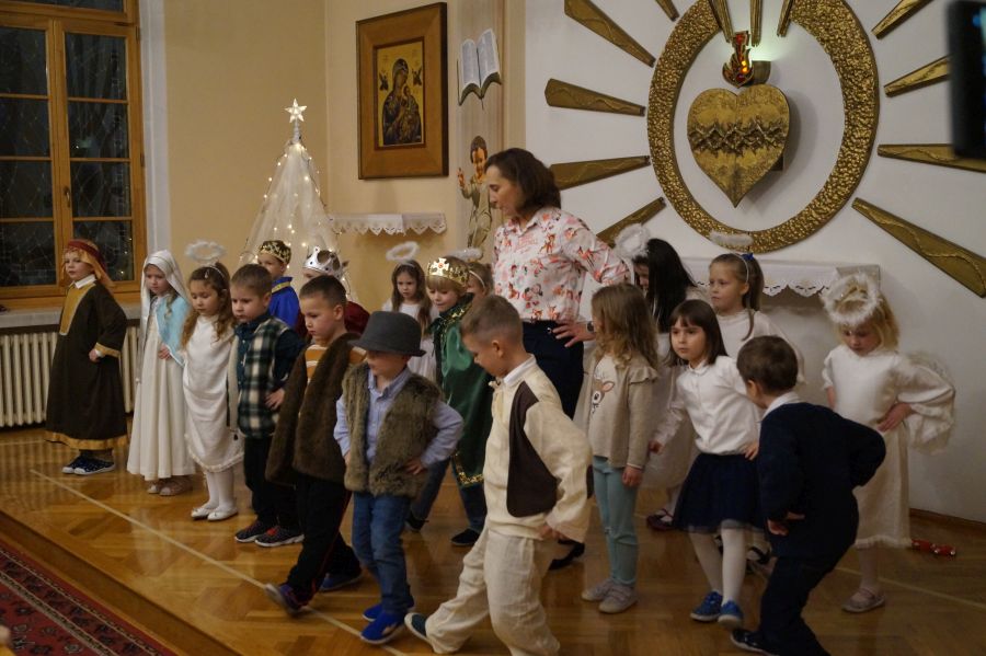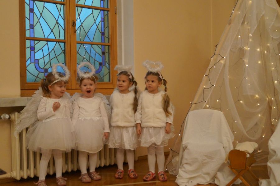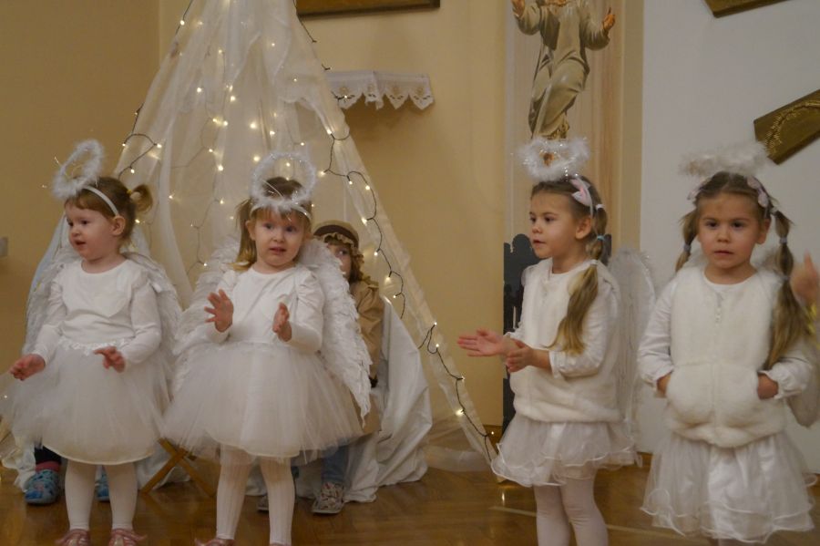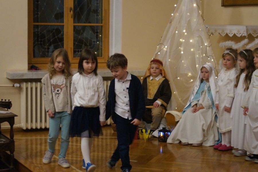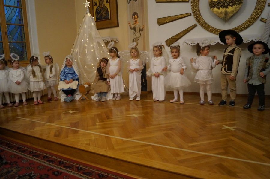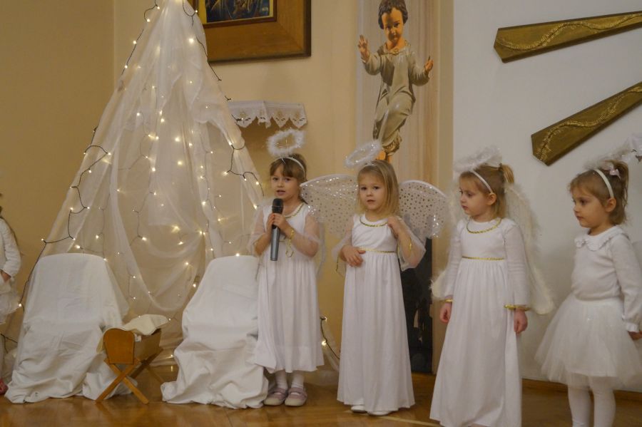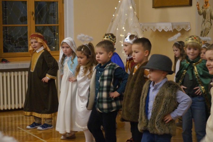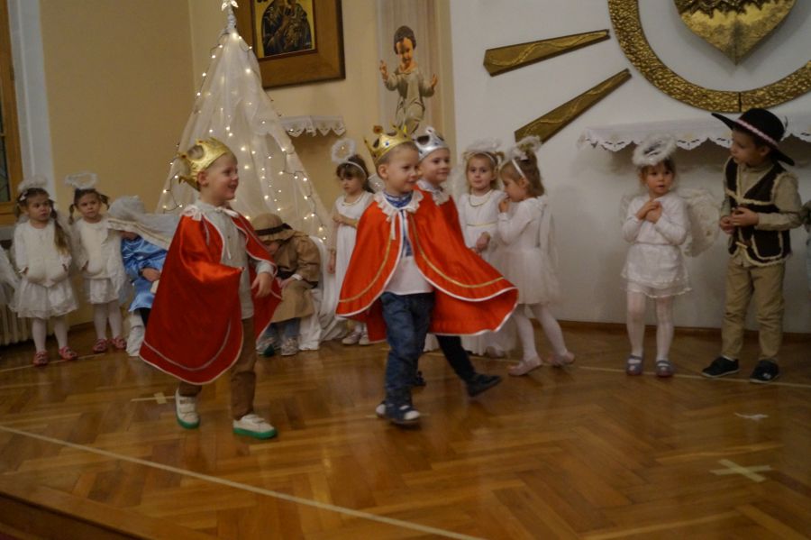 Czas adwentu bardzo szybko mija. Dzieci starannie przygotowują się na Uroczystość Bożego Narodzenia. Tradycyjnie obie grupy wystąpiły w przedstawieniach jasełkowych dla swoich bliskich. Wszystkie dzieci były bardzo podekscytowane, chętnie recytowały wierszyki, śpiewały kolędy, pastorałki oraz tańczyły. Dziękujemy rodzicom Zosi i Stasia za podzielenie się swoimi talentami muzycznymi i ubogacenie spotkania swoim śpiewem oraz grą na gitarze.