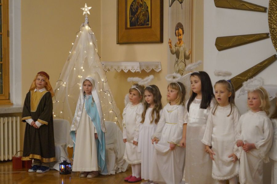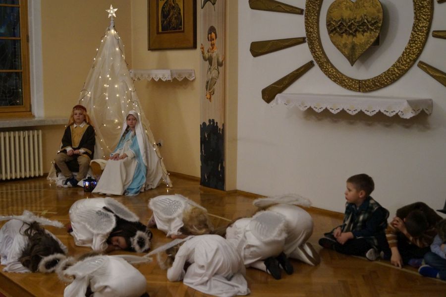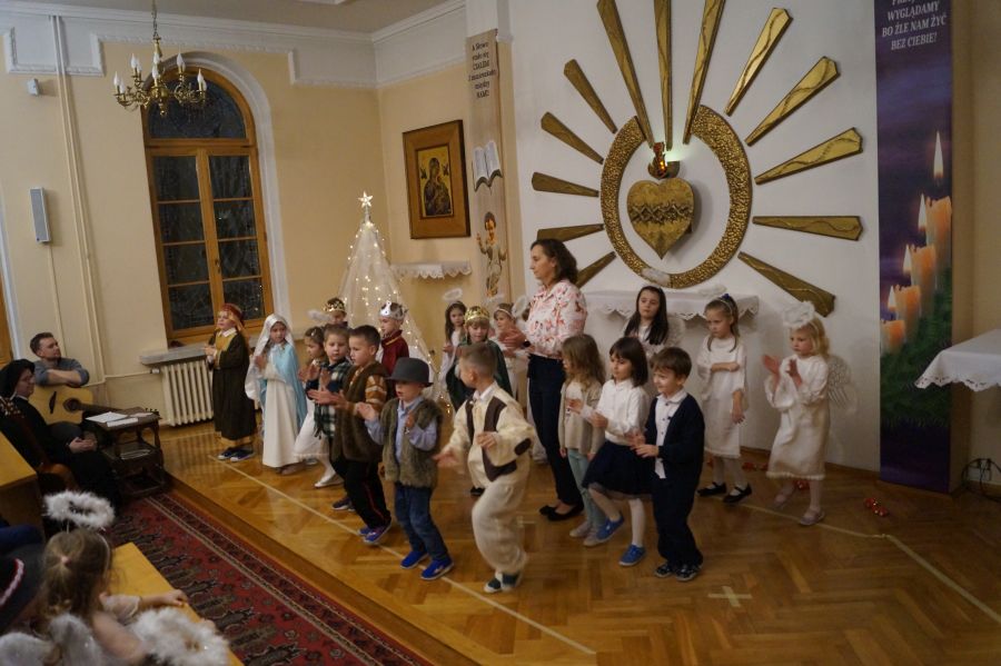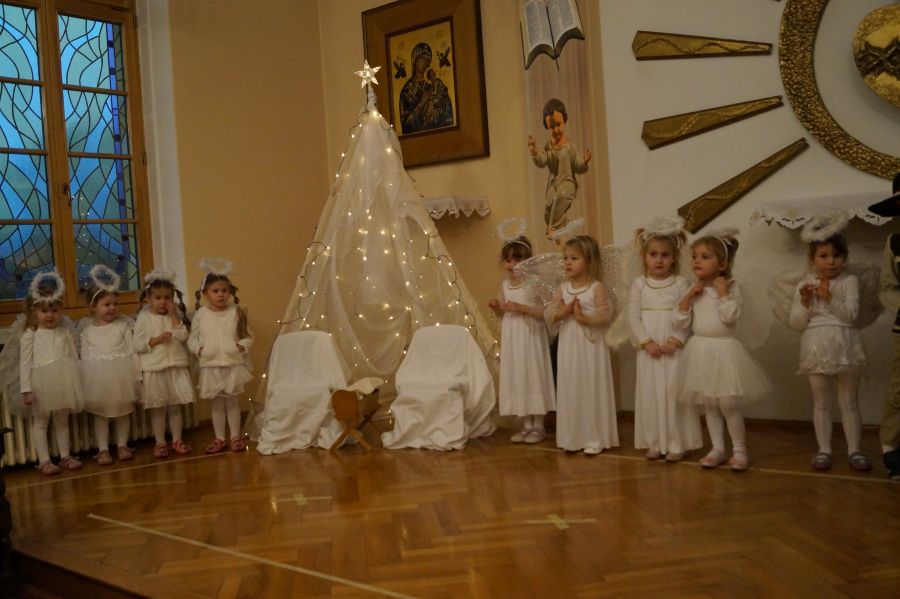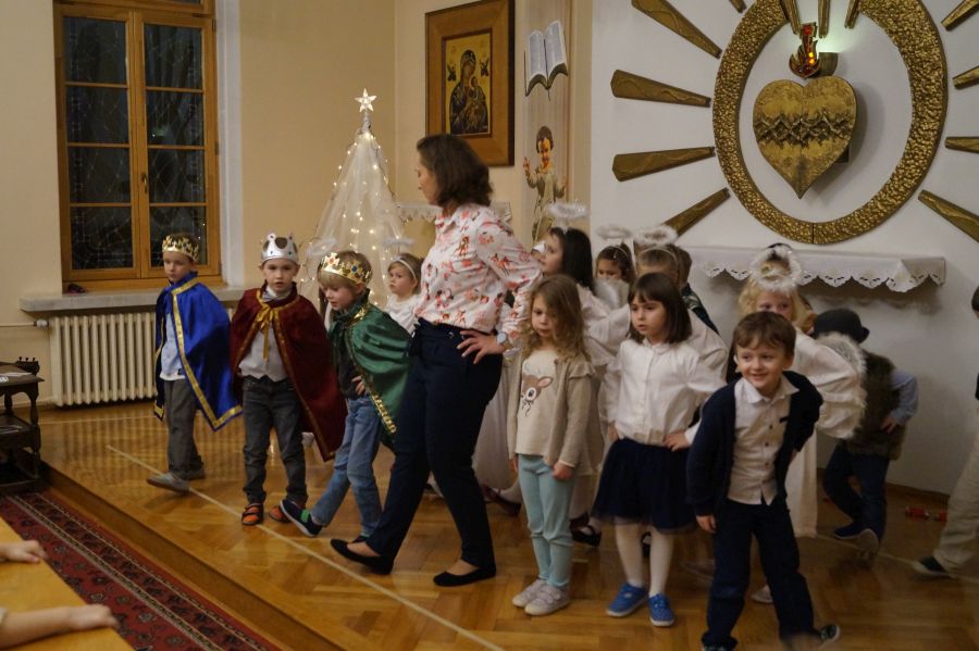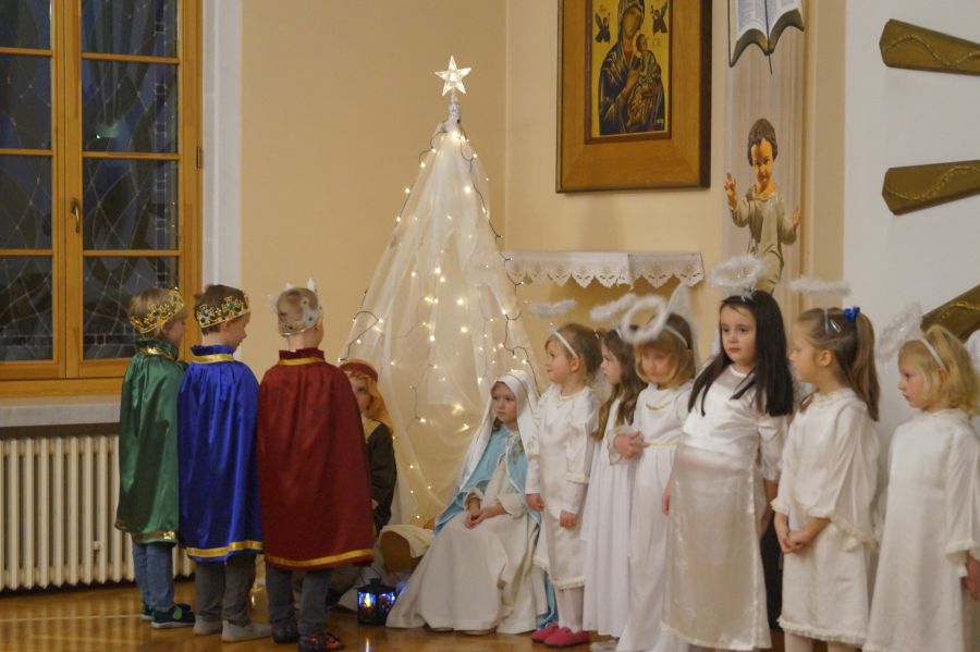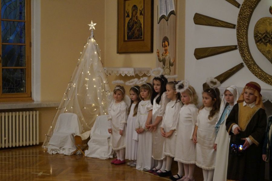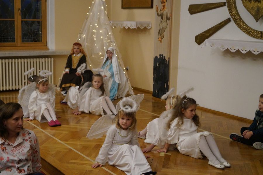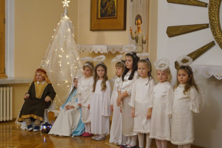Czas adwentu bardzo szybko mija. Dzieci starannie przygotowują się na Uroczystość Bożego Narodzenia. Tradycyjnie obie grupy wystąpiły w przedstawieniach jasełkowych dla swoich bliskich. Wszystkie dzieci były bardzo podekscytowane, chętnie recytowały wierszyki, śpiewały kolędy, pastorałki oraz tańczyły. Dziękujemy rodzicom Zosi i Stasia za podzielenie się swoimi talentami muzycznymi i ubogacenie spotkania swoim śpiewem oraz grą na gitarze.