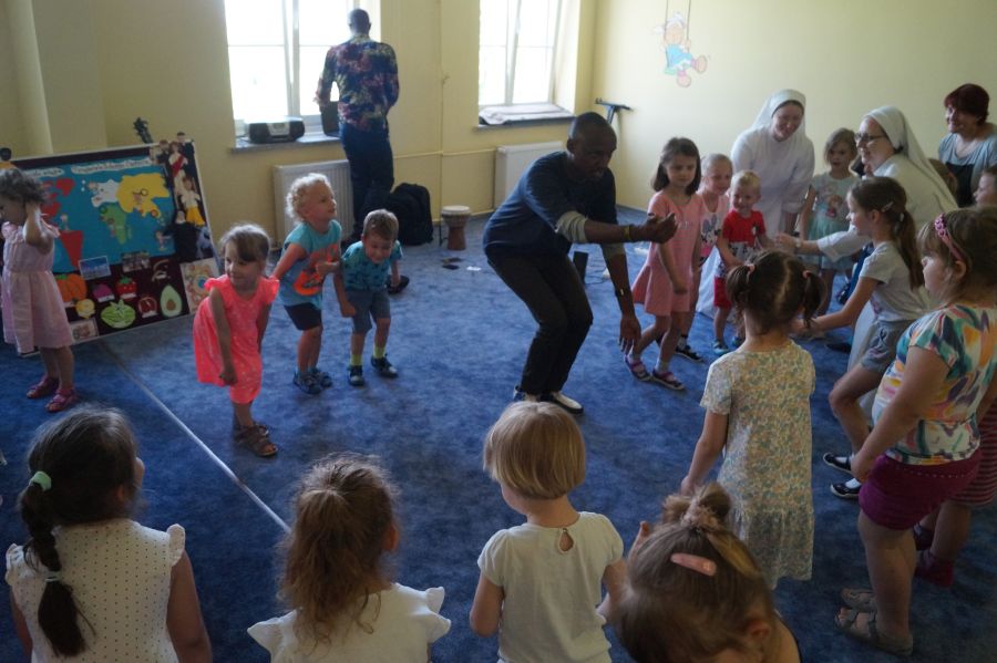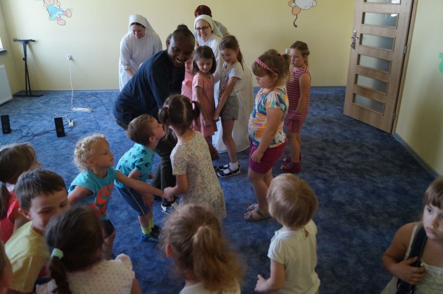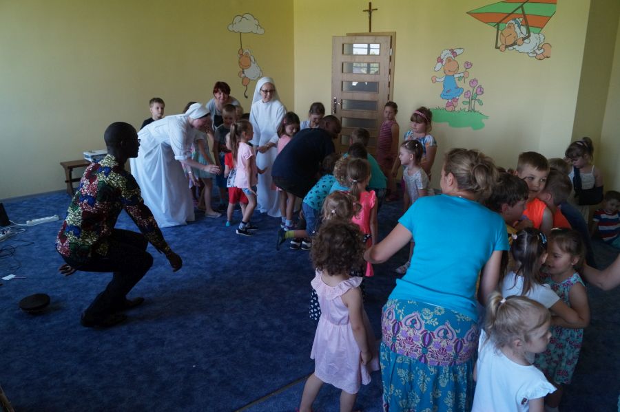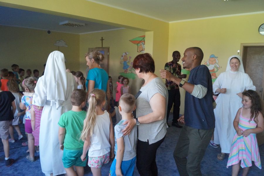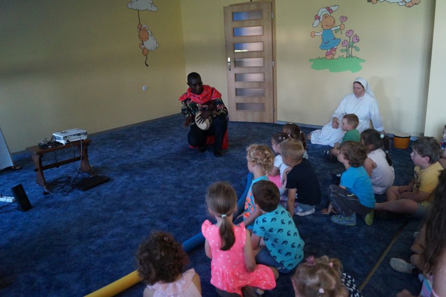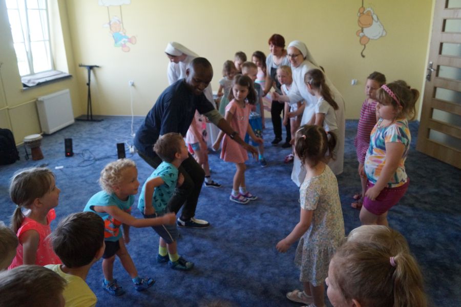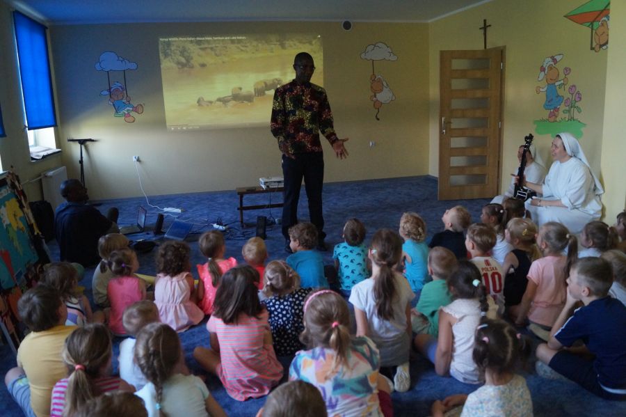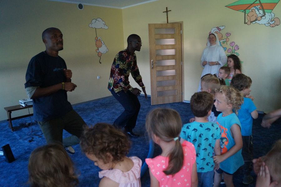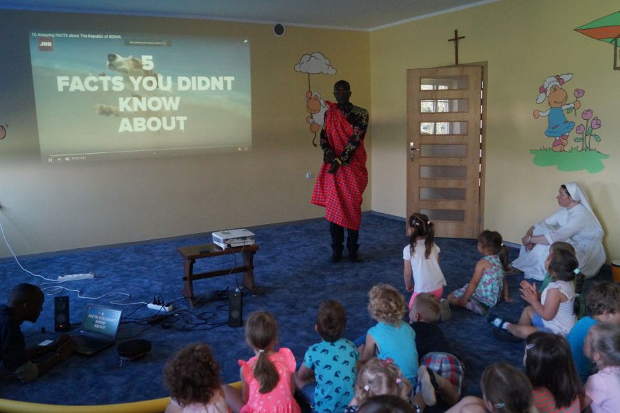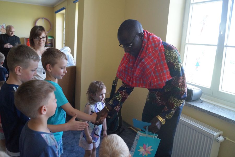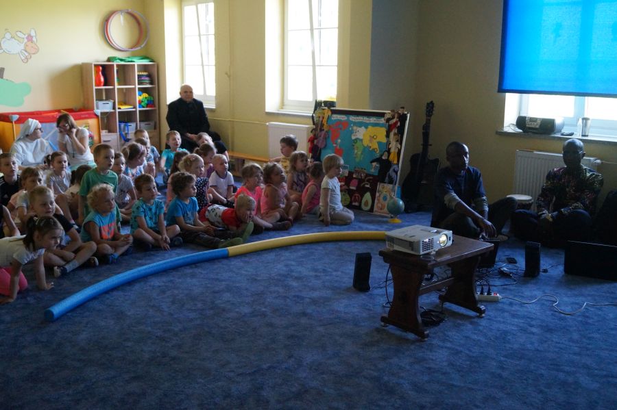 Tegoroczną pracę ogniska misyjnego zakończyliśmy spotkaniem z mieszkańcami Kenii- braćmi zakonnymi ze Zgromadzenia Ducha Świętego- Hilarym i Duncanem. Obejrzeliśmy film o afrykańskiej przyrodzie oraz tradycyjnych potrawach, następnie Hilary zaprezentował nam strój Masajów oraz tradycyjną grę na bębnie a Duncan nauczył nas rożnych tańców. Bracia zostają w Bydgoszczy na czas swojej zakonnej formacji oraz naukę języka polskiego, mamy więc nadzieję, że jeszcze się z nimi spotkamy.
