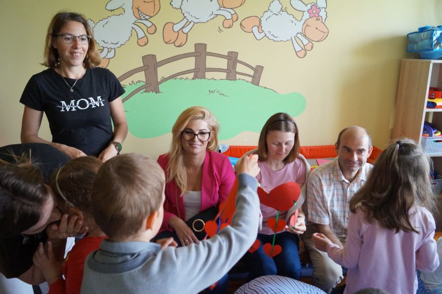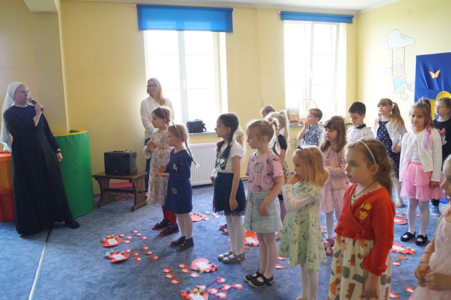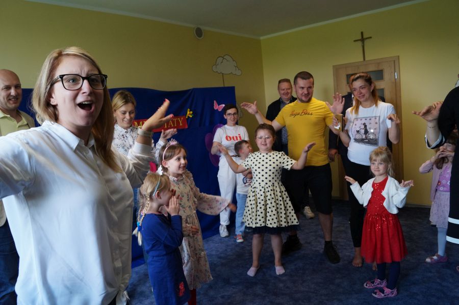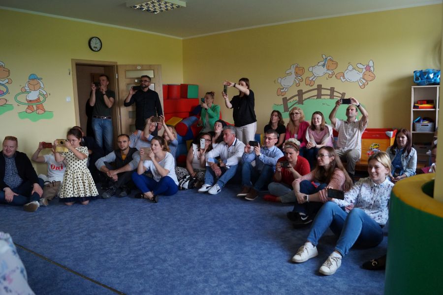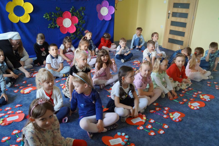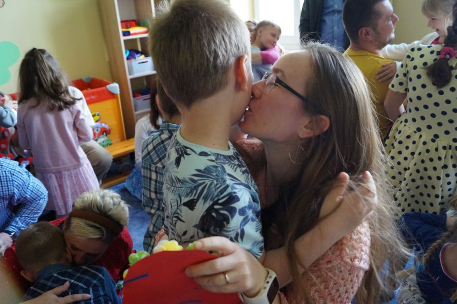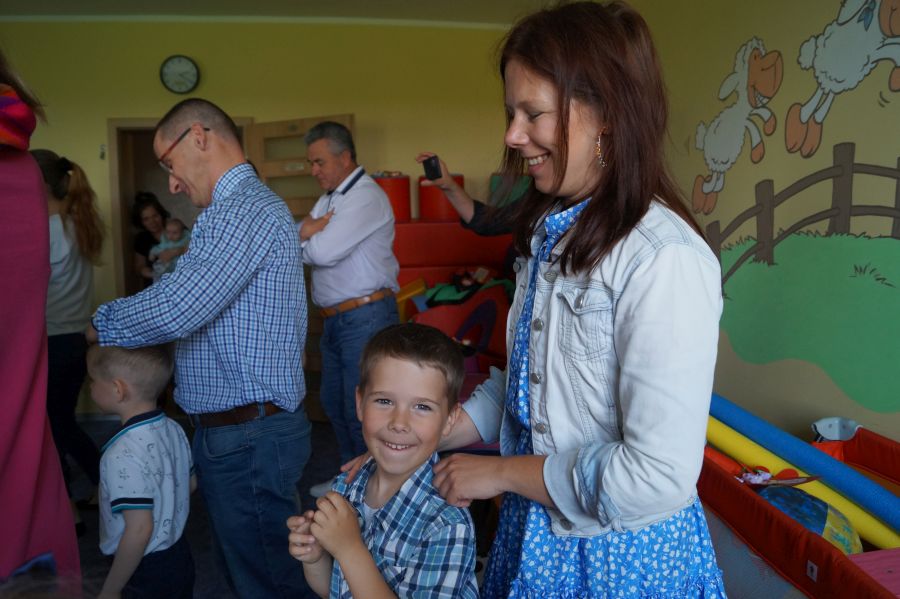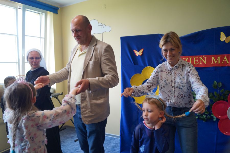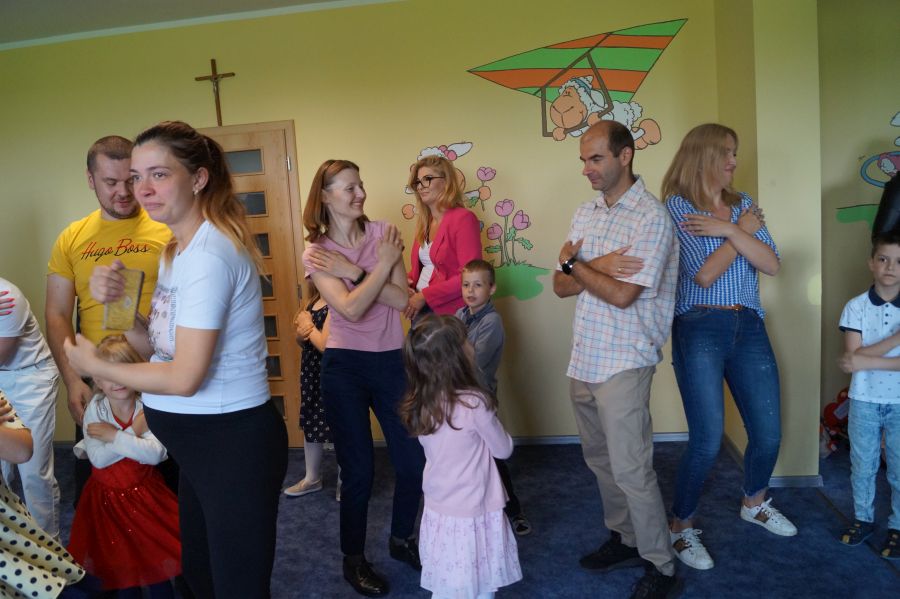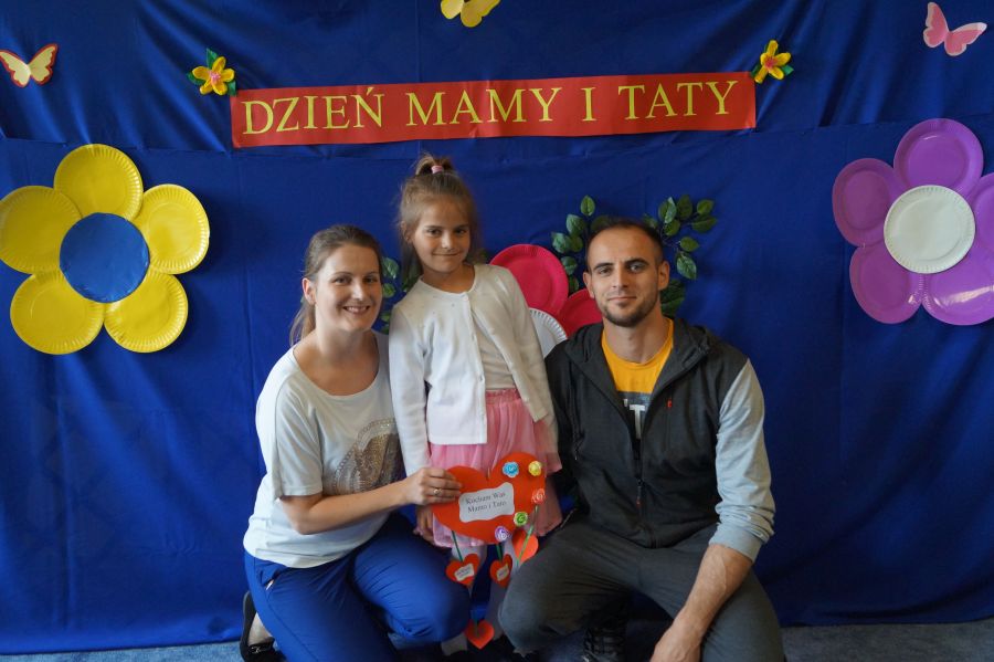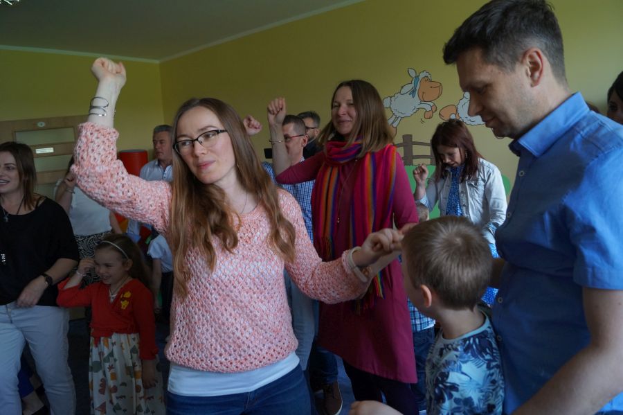 Dzisiaj nasi starszacy zaprosili swoich rodziców na krótkie przedstawienie i zabawy taneczne z okazji zbliżających się świąt Mamy i Taty.
