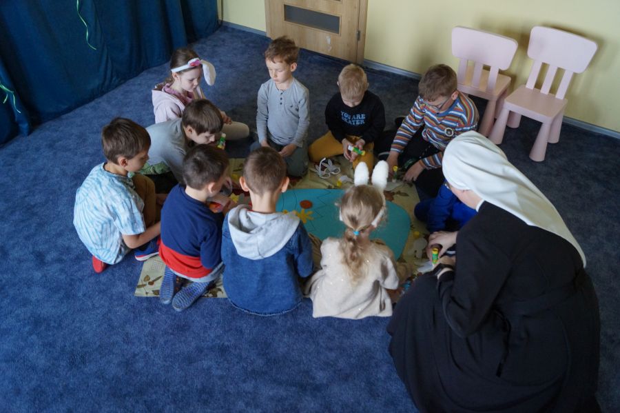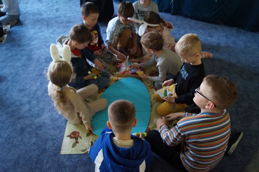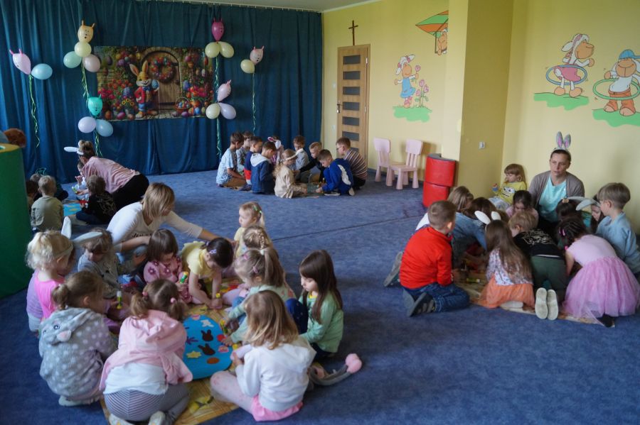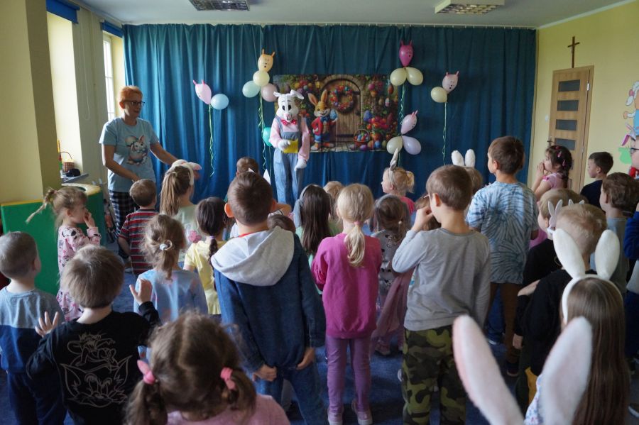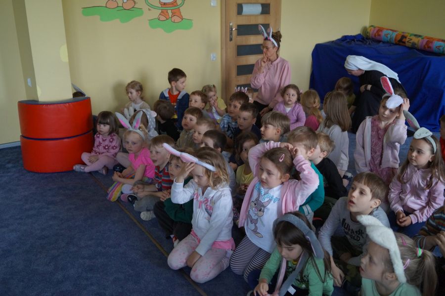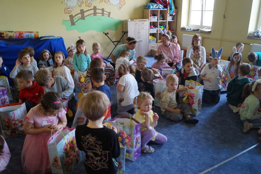 Wszystkie dzieci czekały na dzisiejsze spotkanie z…… oczywiście Zającem wielkanocnym. Po 40 dniowym okresie Wielkiego Postu, tuż przed Triduum Paschalnym dzieci otrzymały upominki i życzenia dobrego przeżycia Świąt Zmartwychwstania Pańskiego.