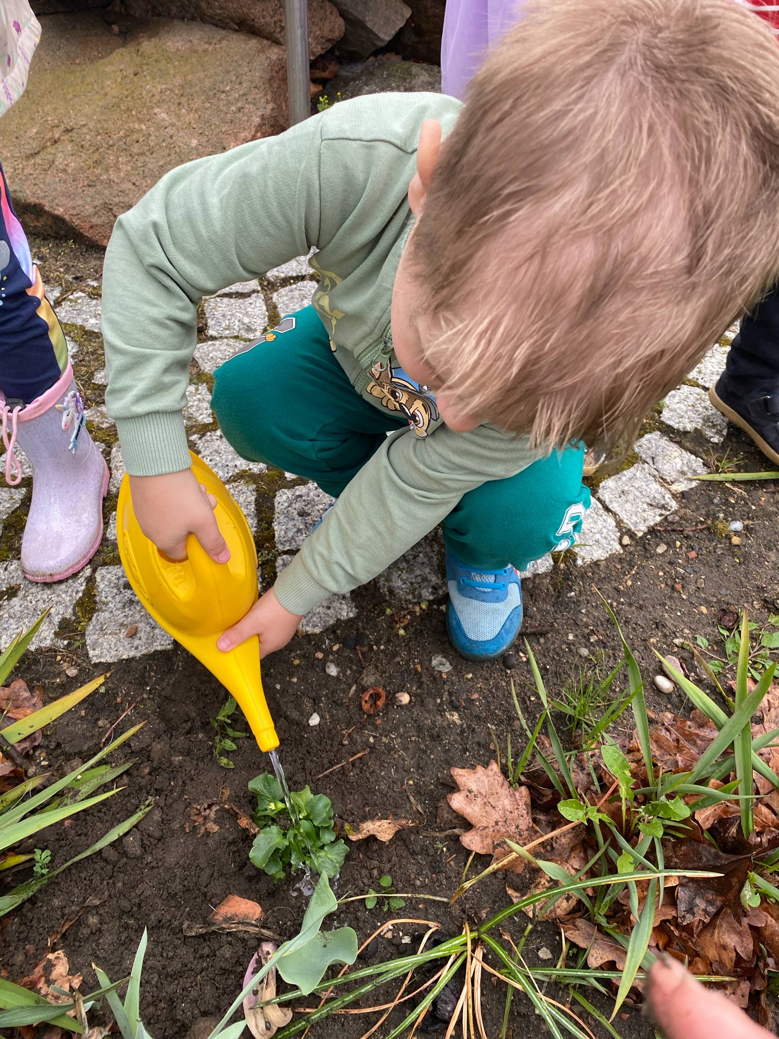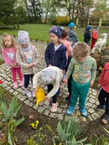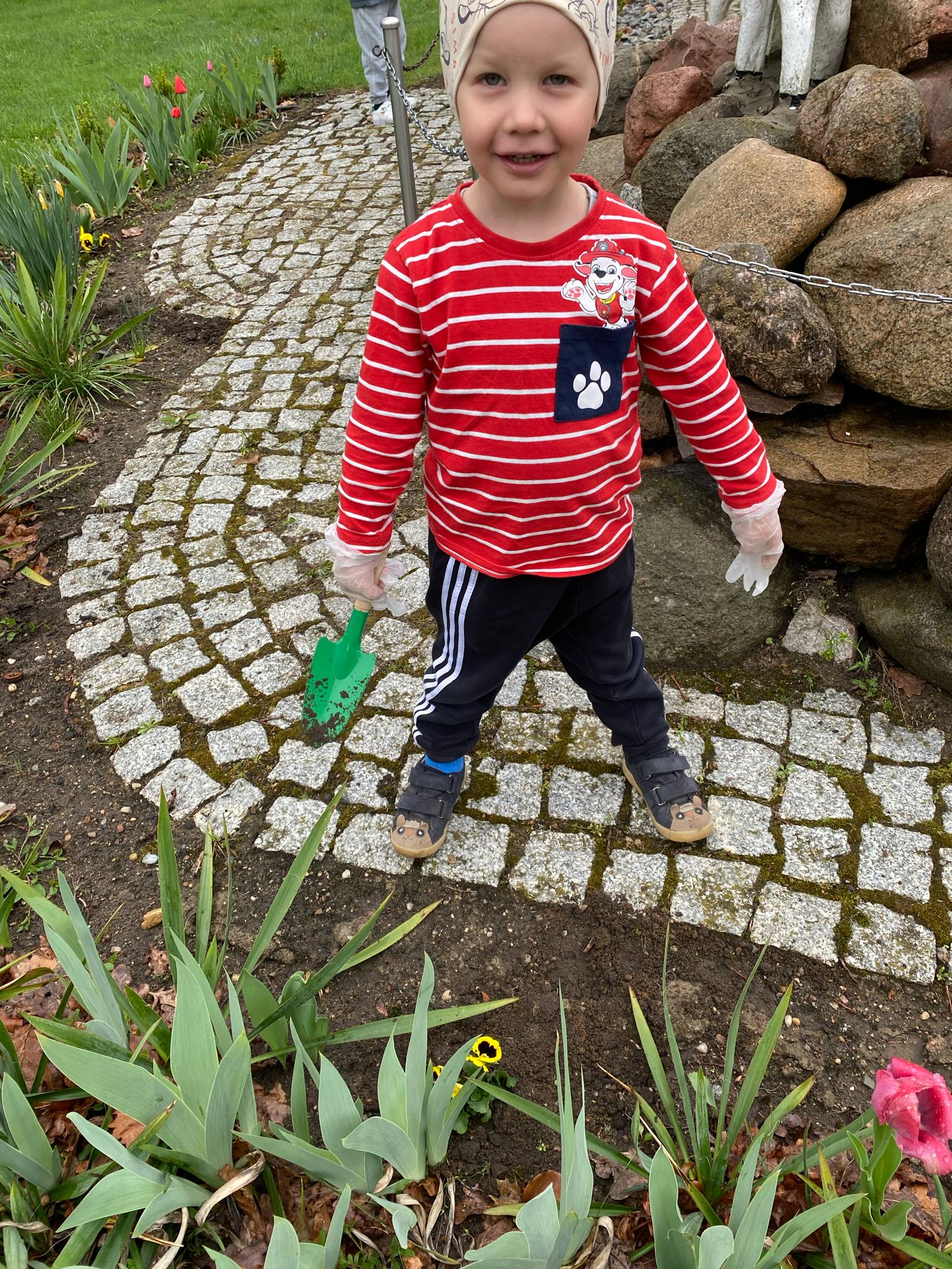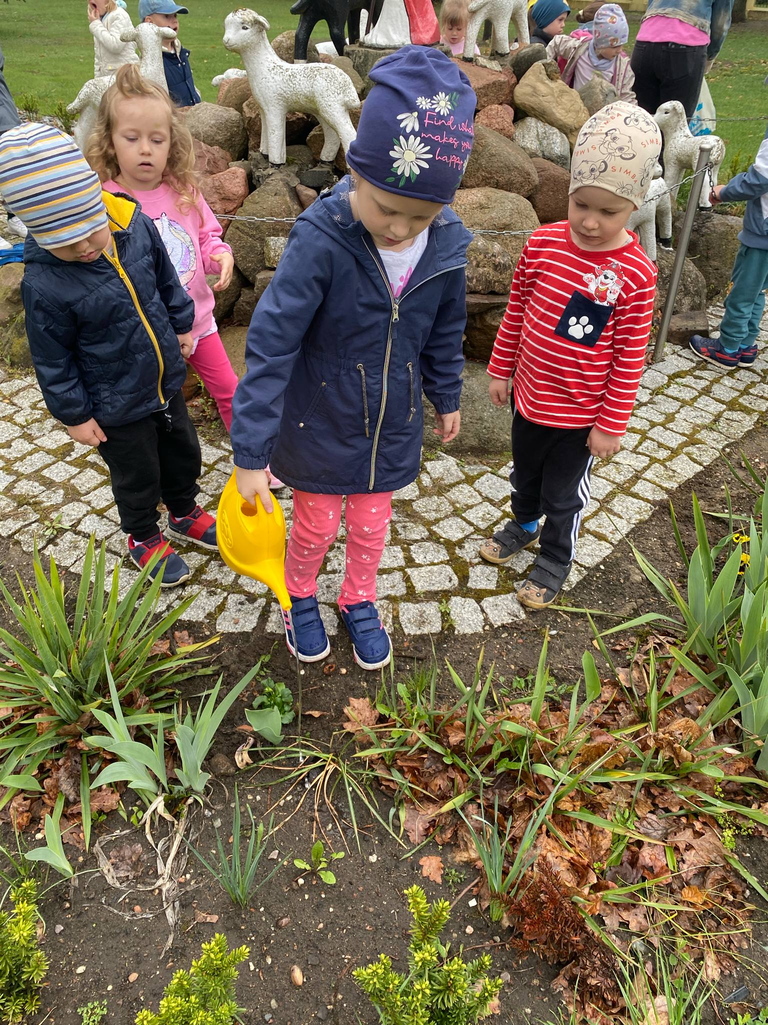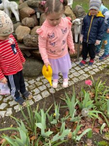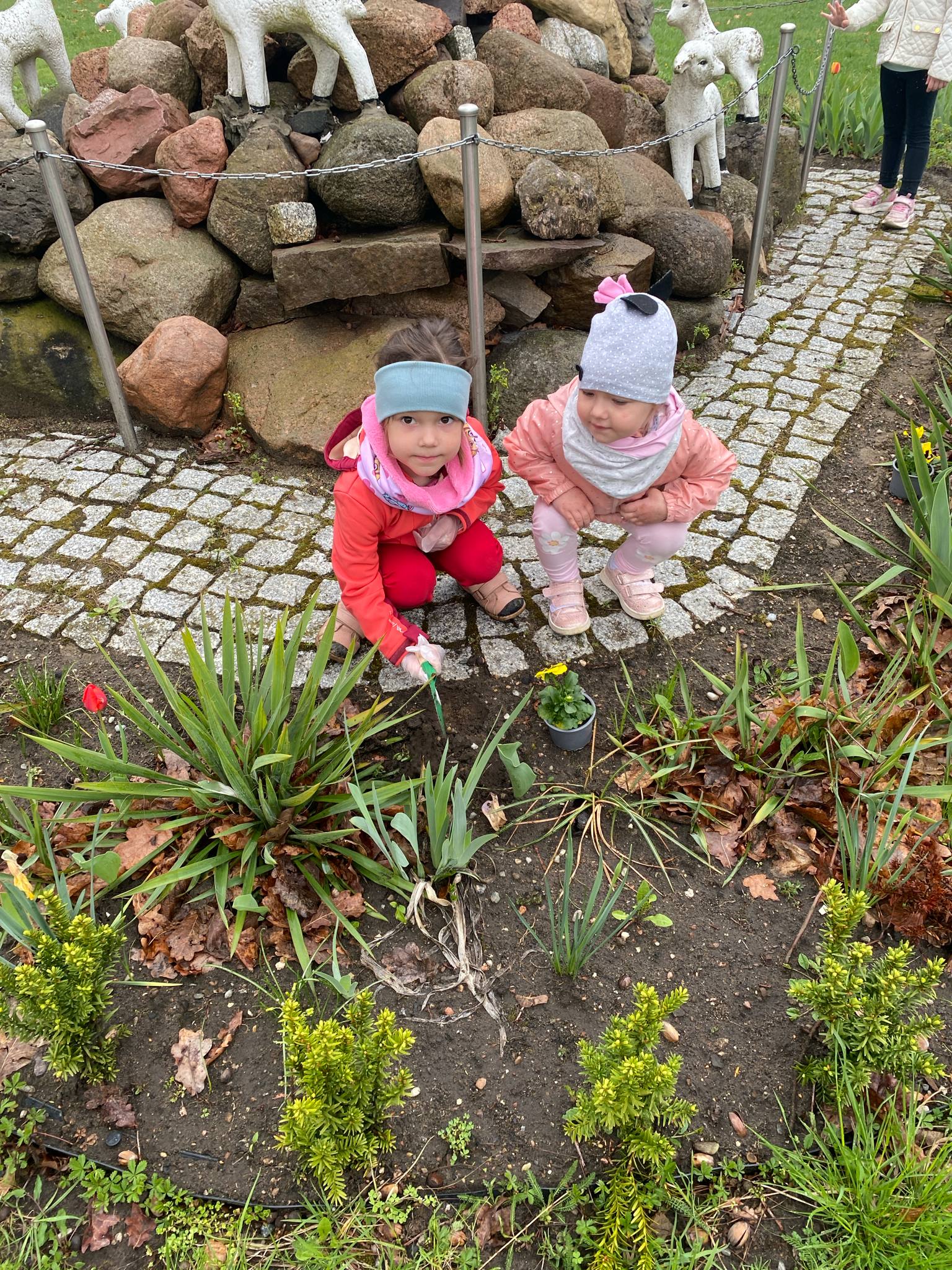 Światowy Dzień Ziemi nasze maluszki obchodziły sadząc bratki wokół figurki Pana Jezusa Dobrego Pasterza.