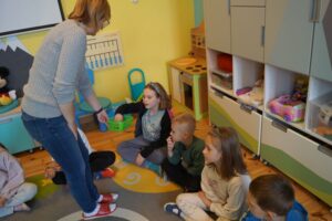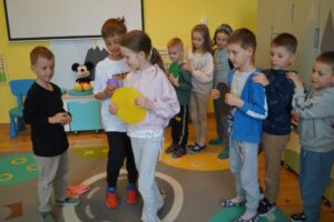W ramach Ogólnopolskiego Dnia Ziemi grupa starsza poznała ważne pojęcia: ekologia, segregacja i recykling. Utrwaliła zachowania pozytywne i negatywne dbania o przyrodę, uczyła się segregacji śmieci, a na koniec zajęć dzieci złożyły przysięgę Dobrego Ziemianina i otrzymały pamiątkowy odblask.