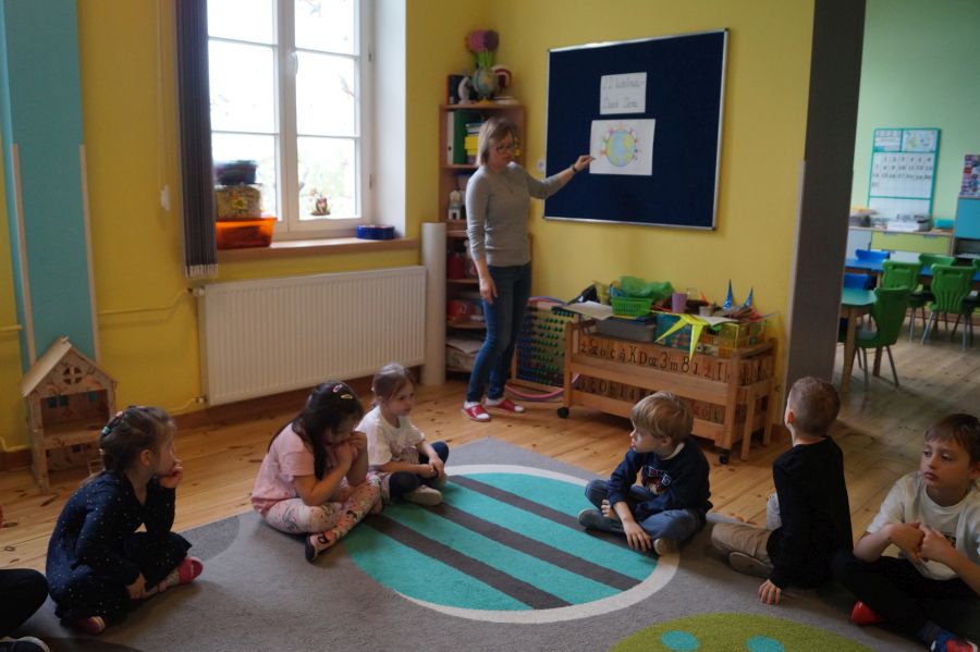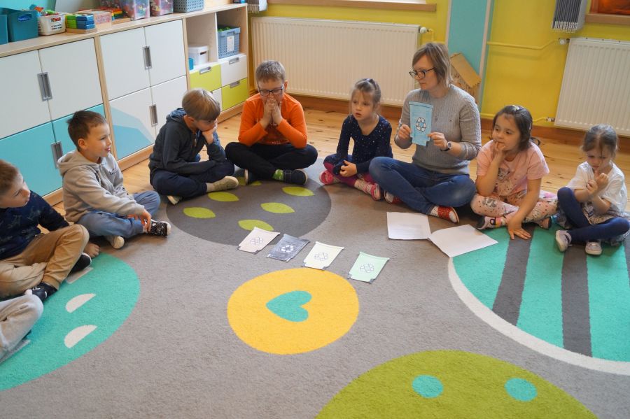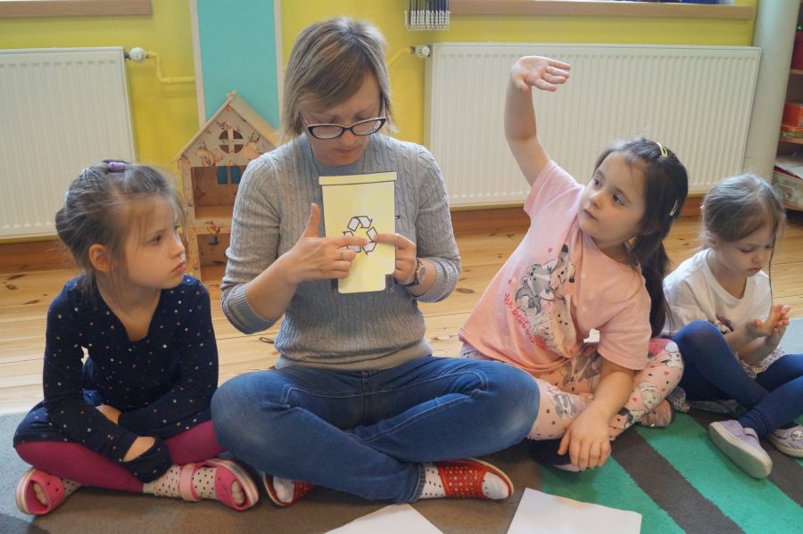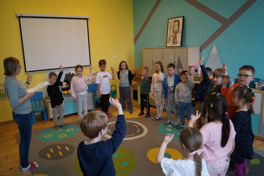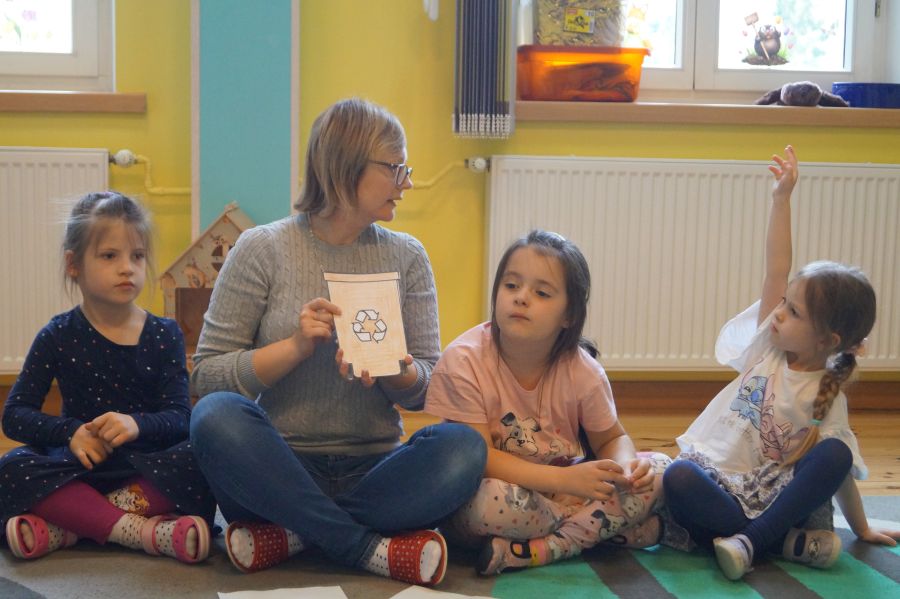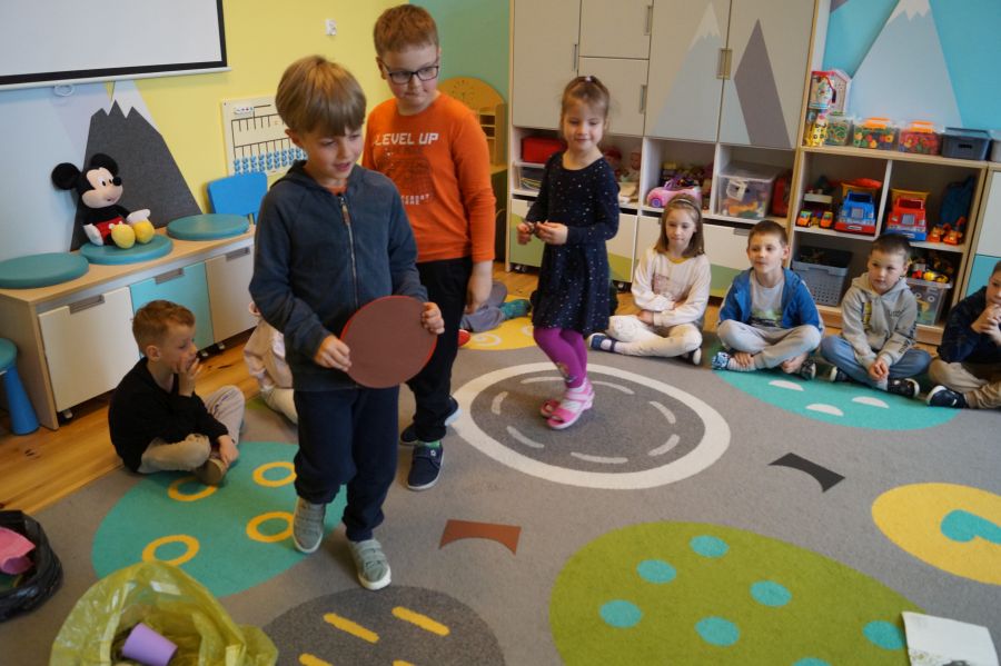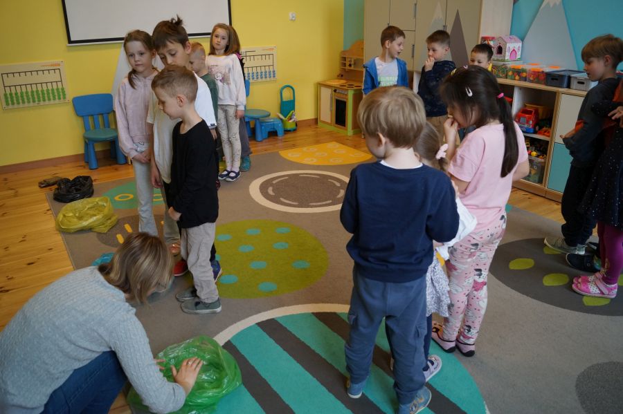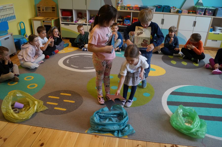 W ramach Ogólnopolskiego Dnia Ziemi grupa starsza poznała ważne pojęcia: ekologia, segregacja i recykling. Utrwaliła zachowania pozytywne i negatywne dbania o przyrodę, uczyła się segregacji śmieci, a na koniec zajęć dzieci złożyły przysięgę Dobrego Ziemianina i otrzymały pamiątkowy odblask.