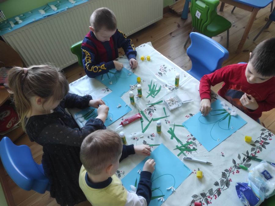 Tak minął tydzień u Bratków Zabawy z wiatrakiem matematycznym, praca plastyczna – przebiśniegi i piątkowa Droga Krzyżowa.