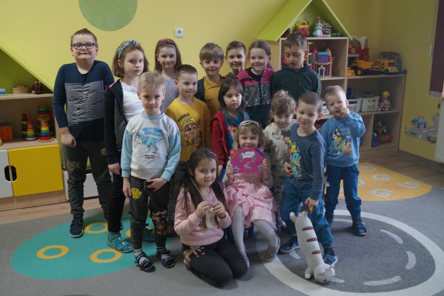 Dzisiaj swoje czwarte urodziny obchodziła Patrycja. Cała społeczność przedszkolna złożyła jej najlepsze życzenia. Dzieci solenizantce życzyły dużo radości, zdrówka oraz pysznego tortu i mnóstwa prezentów.