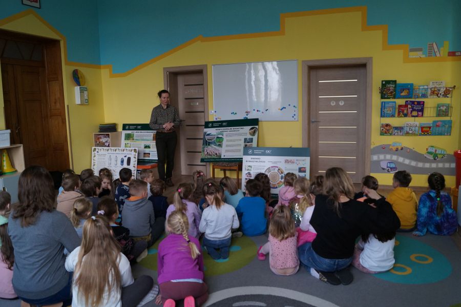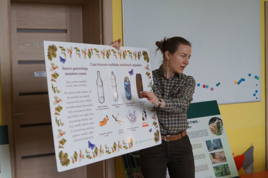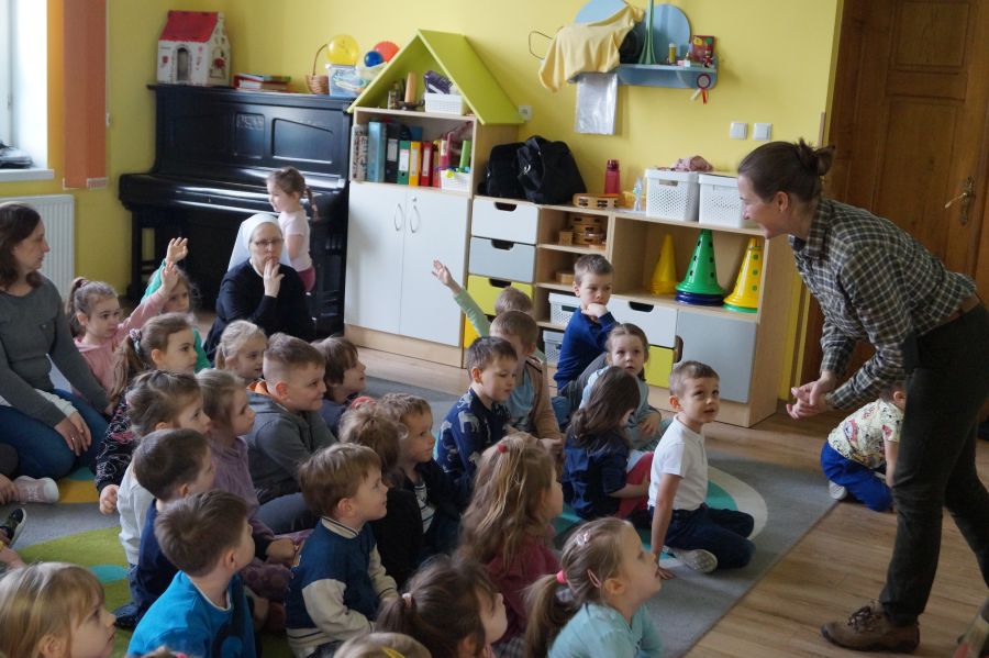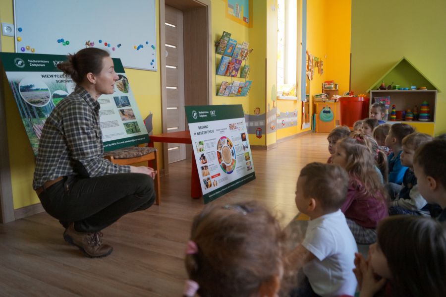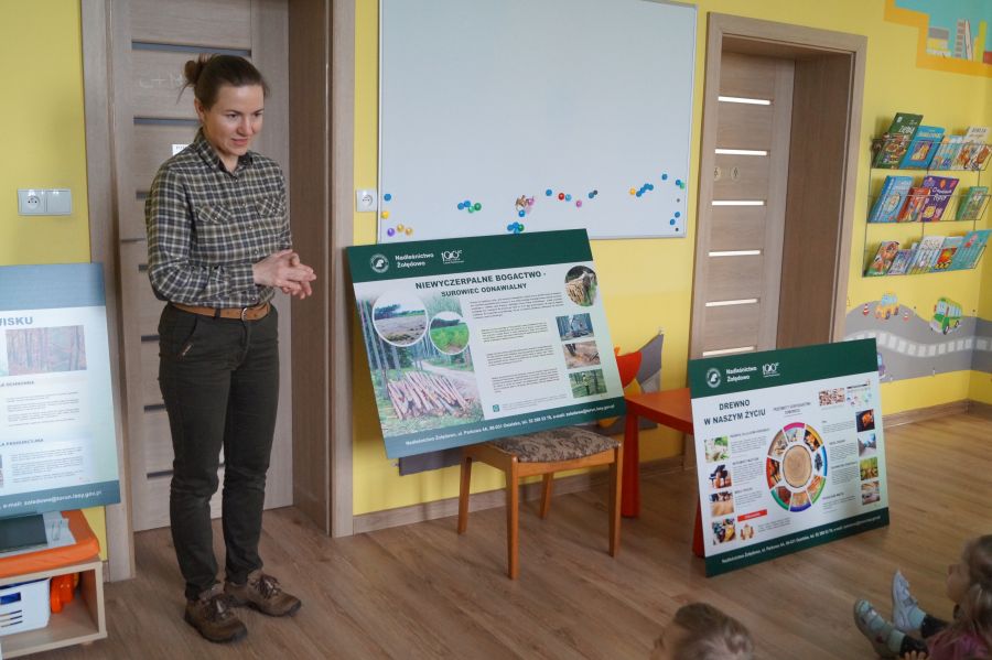 Po raz kolejny gościliśmy w naszym przedszkolu panią Beatę z Nadleśnictwa Żołędowo. Tym razem usłyszeliśmy o skutkach wycinki lasów, mogliśmy utrwalić swoją wiedzę na temat wykorzystania drewna oraz utrzymywania porządku i dbania o naszą planetę. Spotkanie było punktem programu ekologiczno- przyrodniczego realizowanego w naszym przedszkolu „W trosce o wspólny dom”. Otrzymaliśmy także sadzonki, które już niedługo posadzimy i upiększą nasz przedszkolny teren.