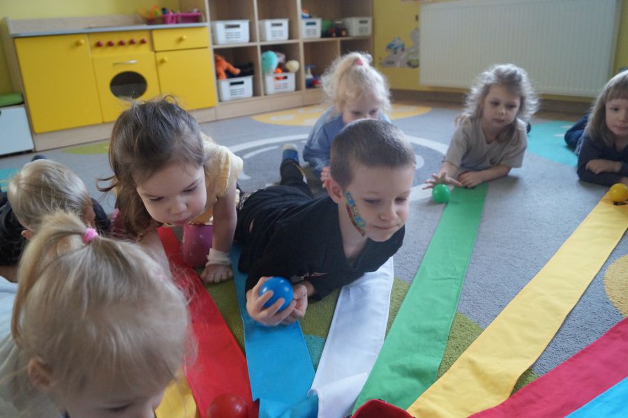 Nasze maluchy świetnie radzą sobie z kodowaniem na dywanie ;). Podczas zajęć z wiatrakiem matematycznym dzieci utrwalały znajomość zjawisk atmosferycznych, ćwiczyły również percepcję słuchową. Było dużo śmiechu i zabawy, a przy tym nauki 😉