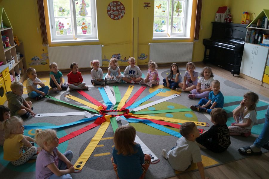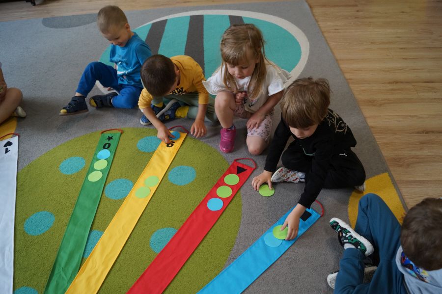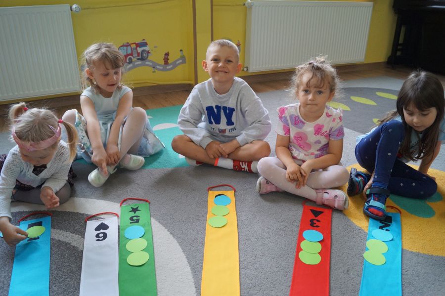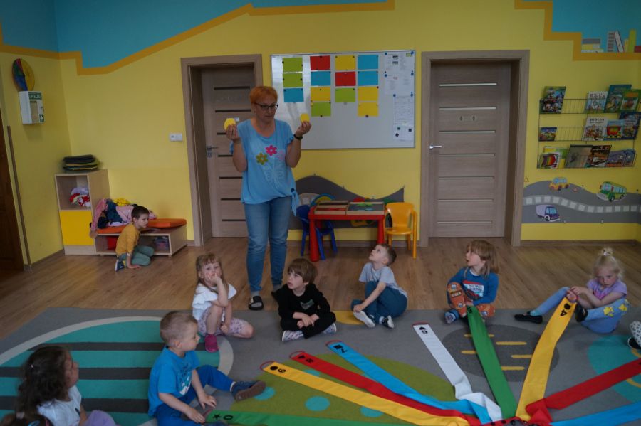 Dzisiaj na zajęciach był „Wiatrak matematyczny”. Dzieci liczyły, utrwalały kolory, była również zabawa na skojarzenia oraz na końcu zadanie- każde z dzieci miało ułożyć na ramieniu wiatraka tyle kolorowych kółek ile ma lat . Zajęcia się udały i dzieciom bardzo podobały.