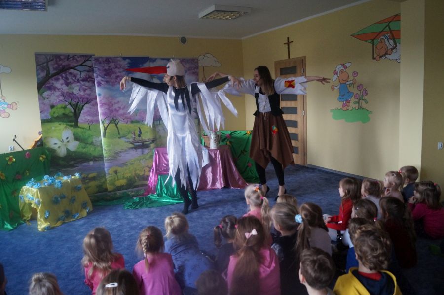 Wizyta Teatru Bajecznego. Przedstawienie „Bocianie serce”.
