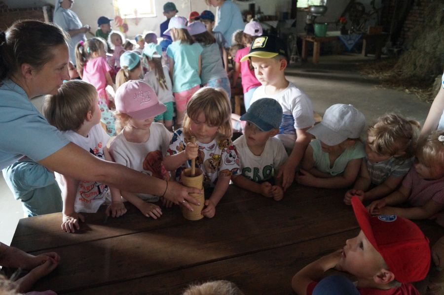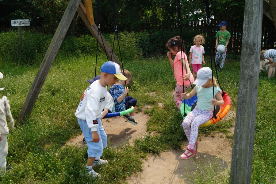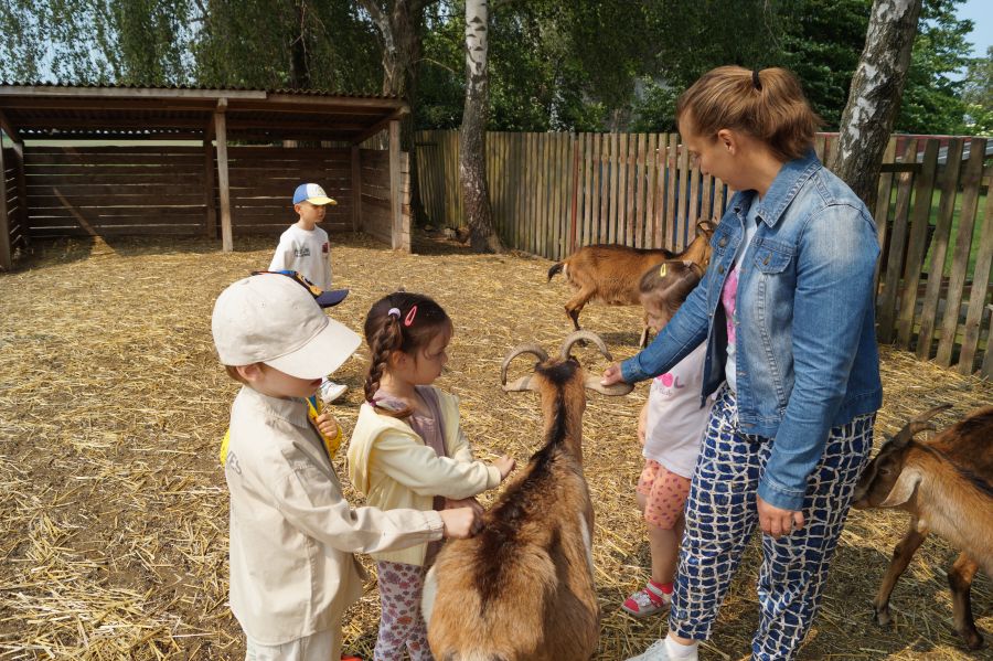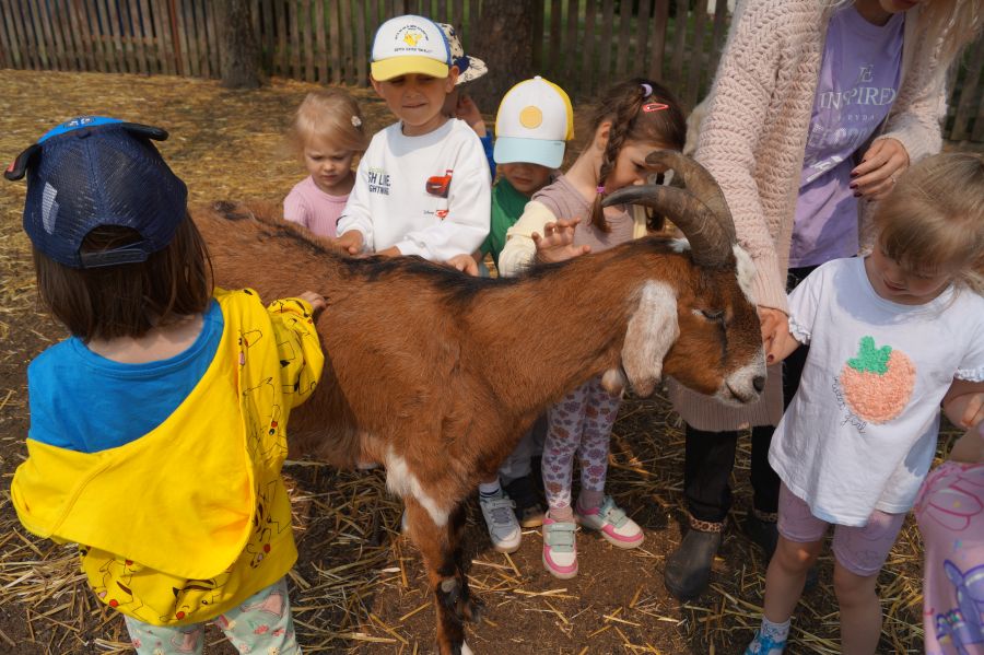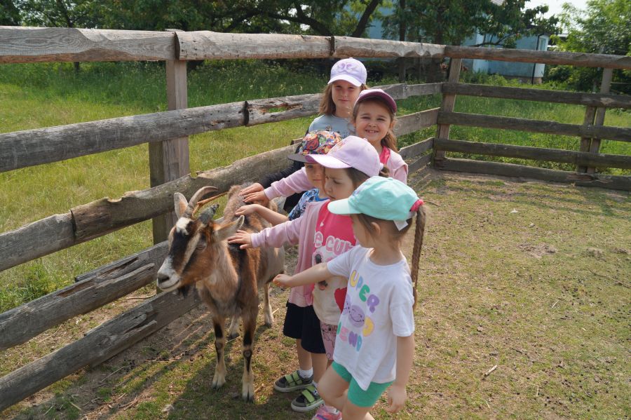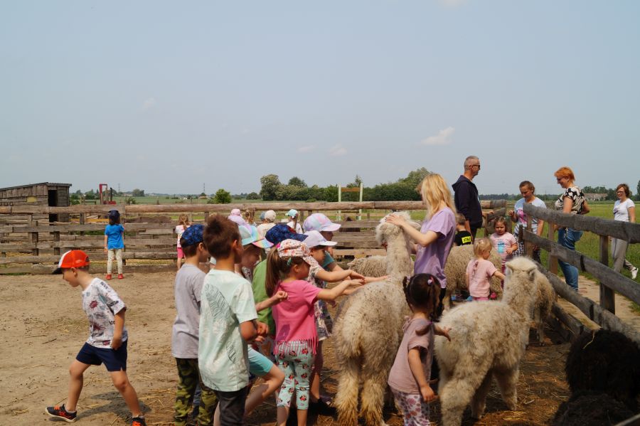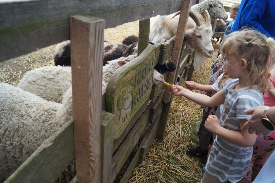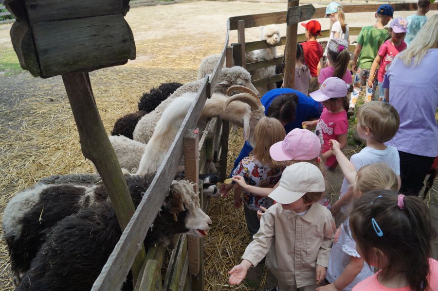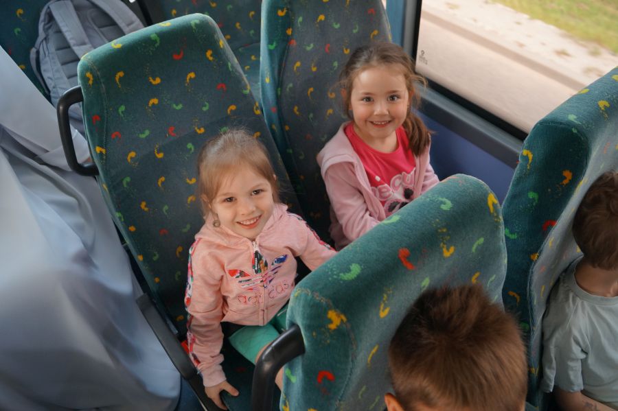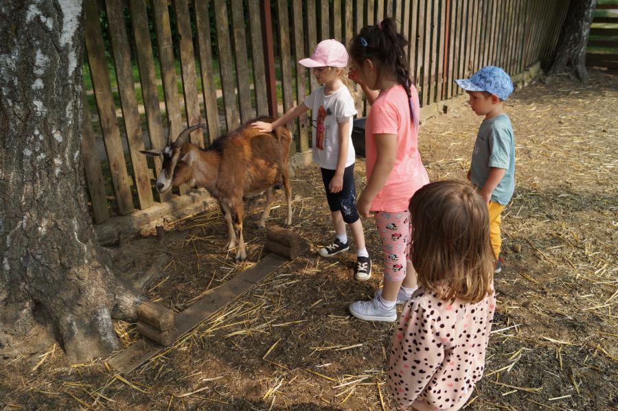 Dzieci mogły karmić zwierzęta, samodzielnie wydoić kozę, ubić masło w drewnianej maselnicy, które później zjedliśmy ;). Dodatkową atrakcją był oczywiście przejazd autokarem. Niektóre dzieci jechały nim po raz pierwszy w życiu.