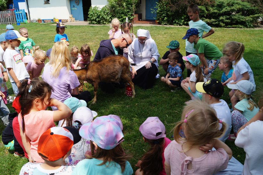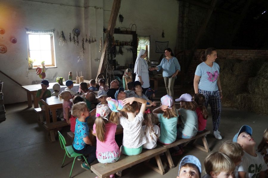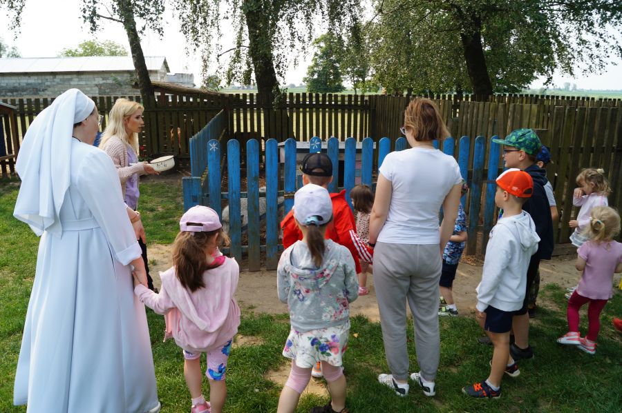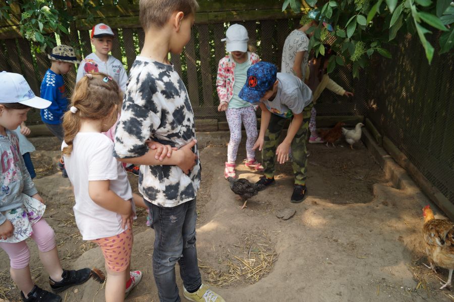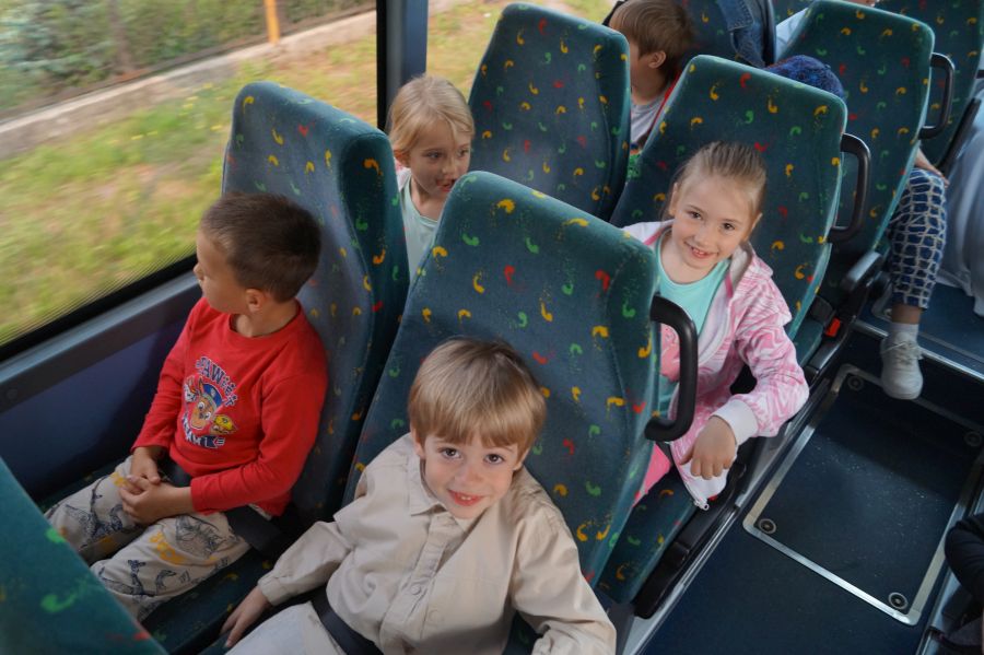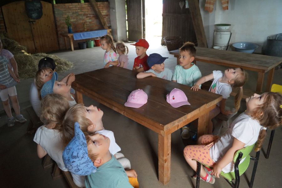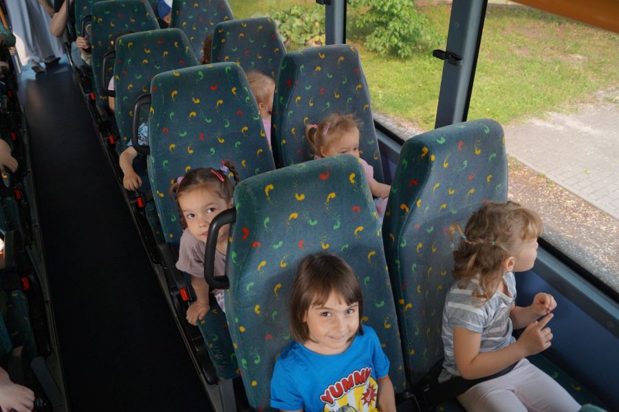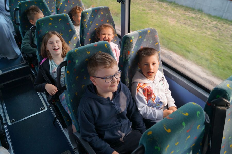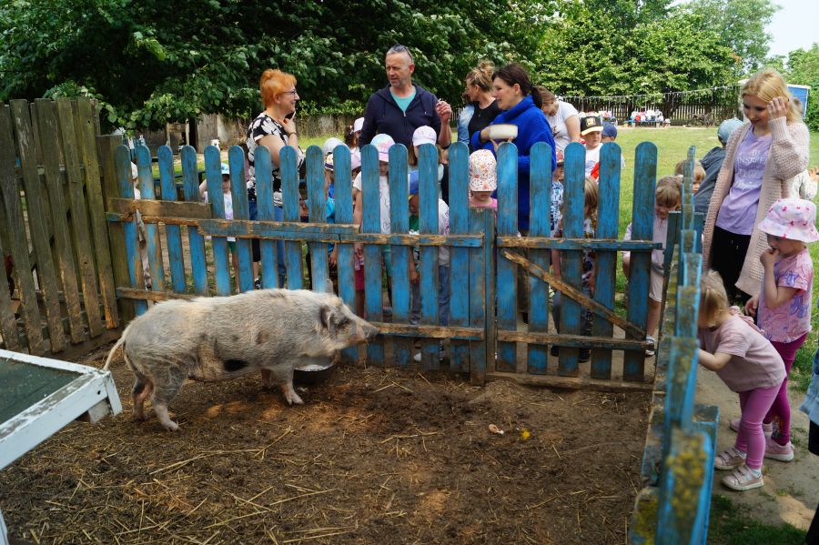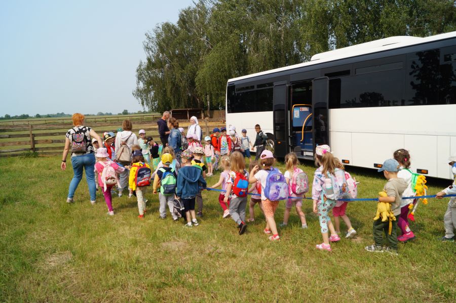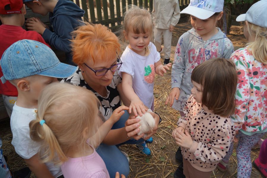Dzieci mogły karmić zwierzęta, samodzielnie wydoić kozę, ubić masło w drewnianej maselnicy, które później zjedliśmy ;). Dodatkową atrakcją był oczywiście przejazd autokarem. Niektóre dzieci jechały nim po raz pierwszy w życiu.