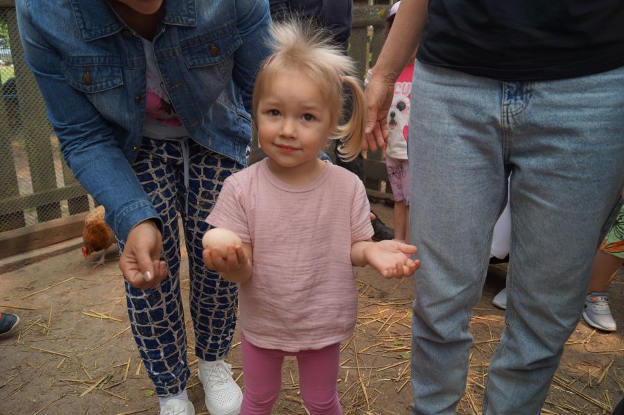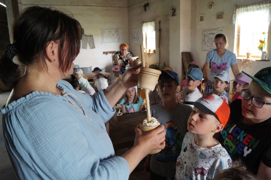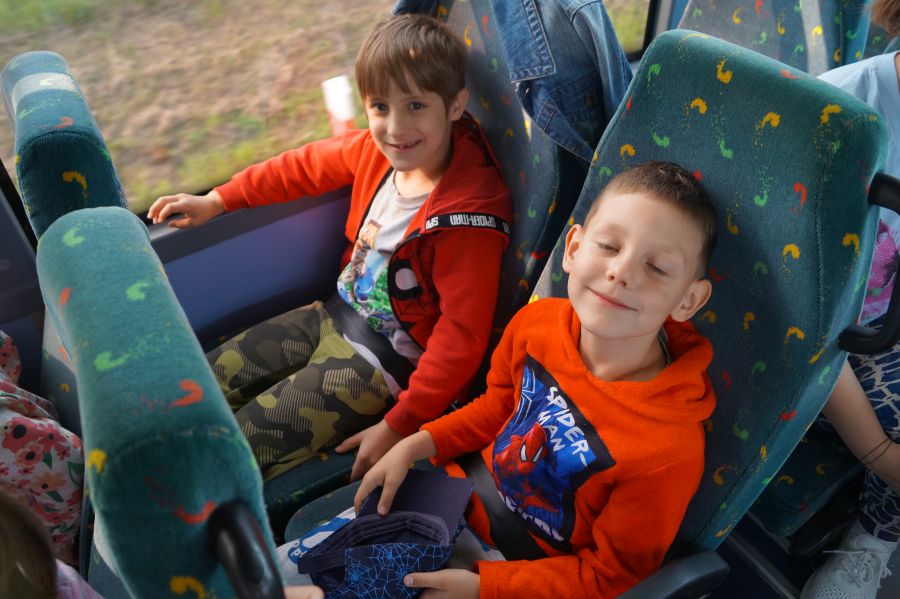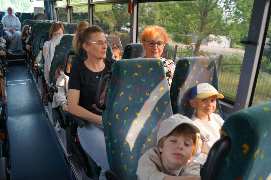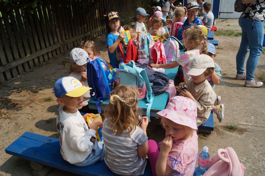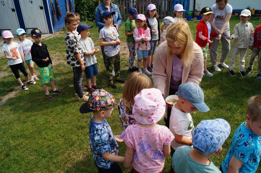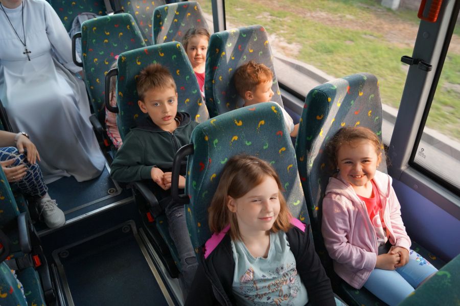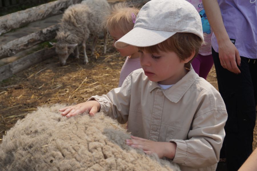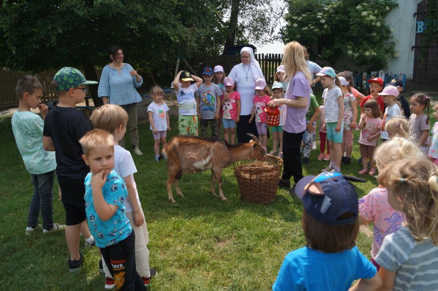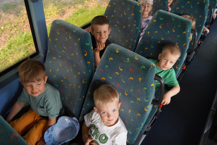 Dzieci mogły karmić zwierzęta, samodzielnie wydoić kozę, ubić masło w drewnianej maselnicy, które później zjedliśmy ;). Dodatkową atrakcją był oczywiście przejazd autokarem. Niektóre dzieci jechały nim po raz pierwszy w życiu.