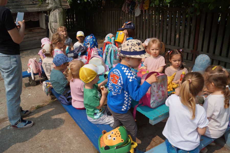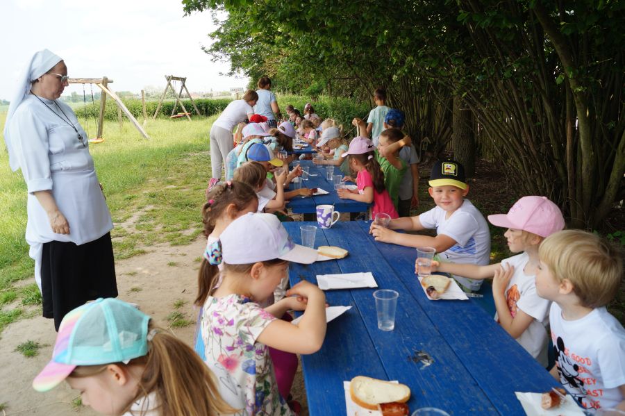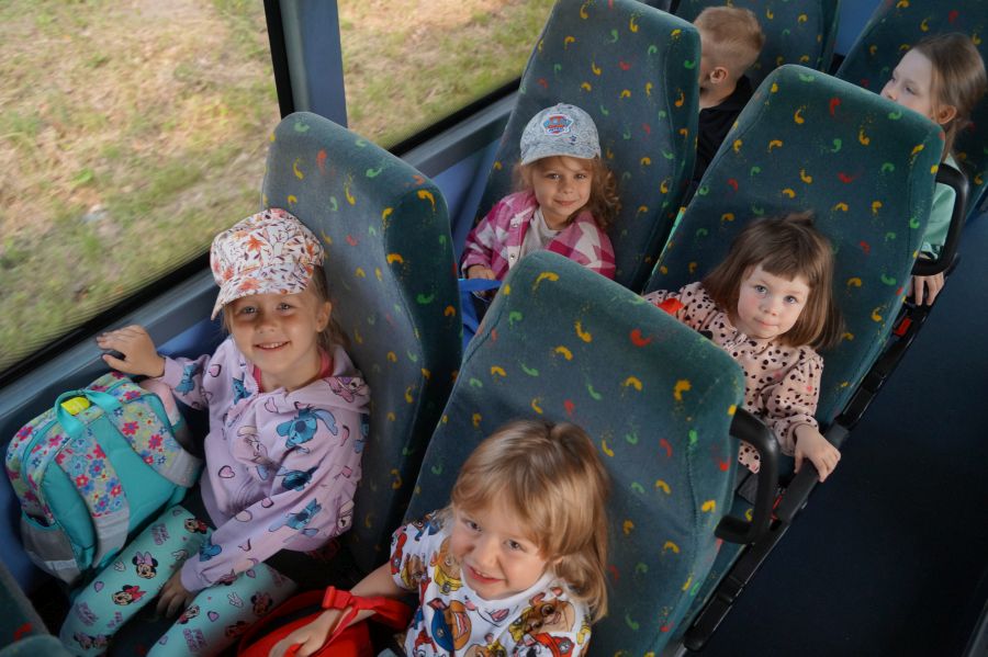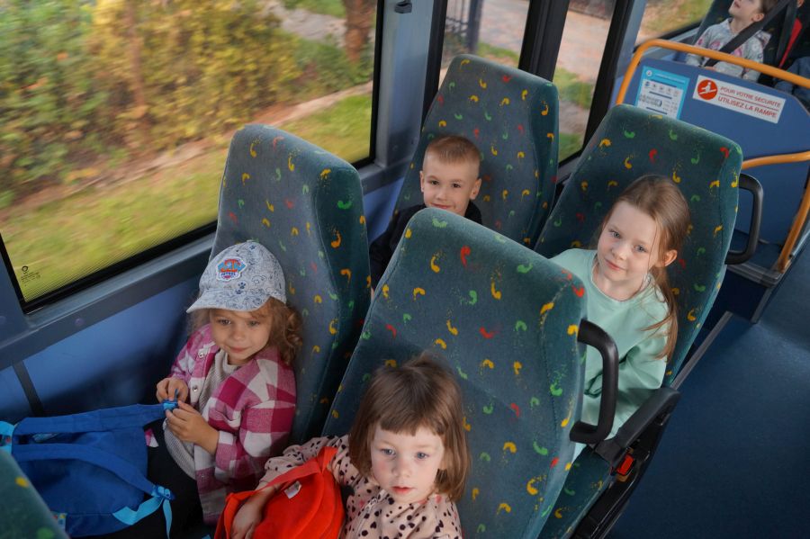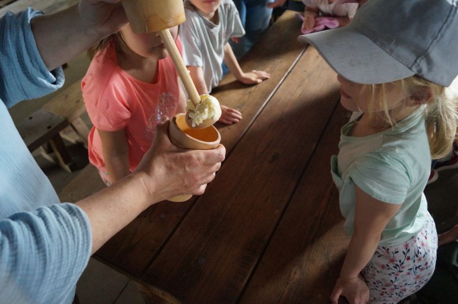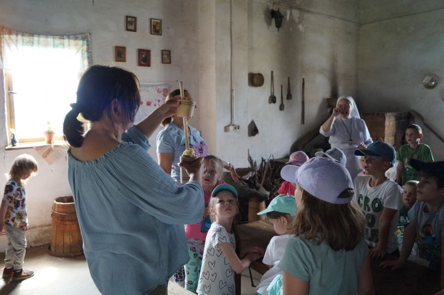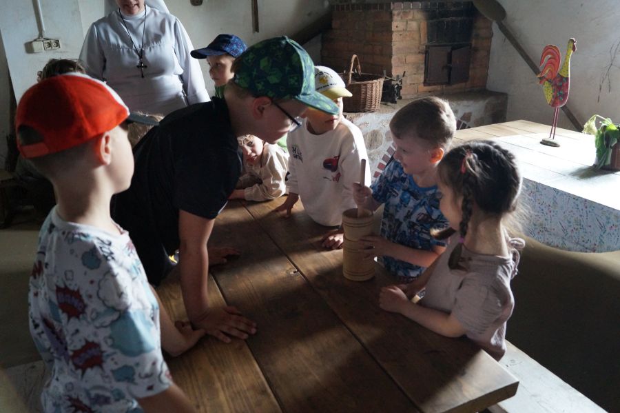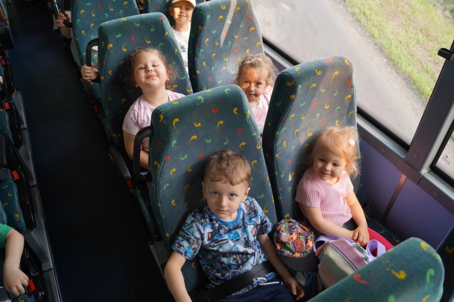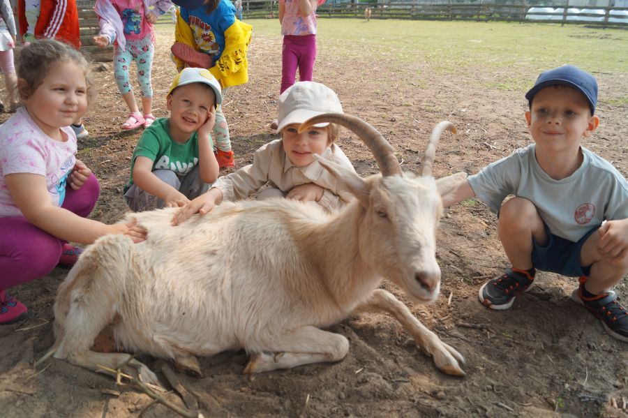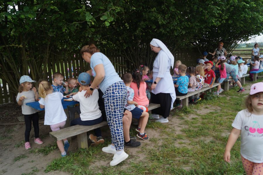 Dzieci mogły karmić zwierzęta, samodzielnie wydoić kozę, ubić masło w drewnianej maselnicy, które później zjedliśmy ;). Dodatkową atrakcją był oczywiście przejazd autokarem. Niektóre dzieci jechały nim po raz pierwszy w życiu.