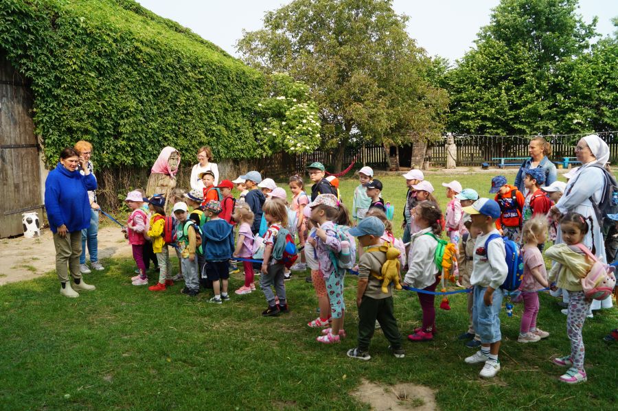 Długo wyczekiwana wycieczka już za nami. Udaliśmy się do Gospodarstwa wiejskiego „BabaLuda” o charakterze edukacyjnym położonym w miejscowości Parowa Falęcka w gminie Chełmża. Właściciele gospodarstwa zajmują się chowem dawnych ras zwierząt oraz uprawą starych odmian jabłoni. W gospodarstwie można zobaczyć prawdziwe wiejskie obejście z zagrodą dla owiec pomorskich, kaczki krajowe, najstarszą polską rasę kur -czubatki polskie oraz kozy rasy barwnej uszlachetnionej. Zagroda BabaLuda prowadzi „Zajęcia z pasją” dla zorganizowanych grup. Zajęcia prowadzone są według autorskich scenariuszy opracowanych przez właścicieli we współpracy z nauczycielami wychowania przedszkolnego i nauczania początkowego. My skorzystaliśmy z propozycji „Tradycja w mleku zamknięta”