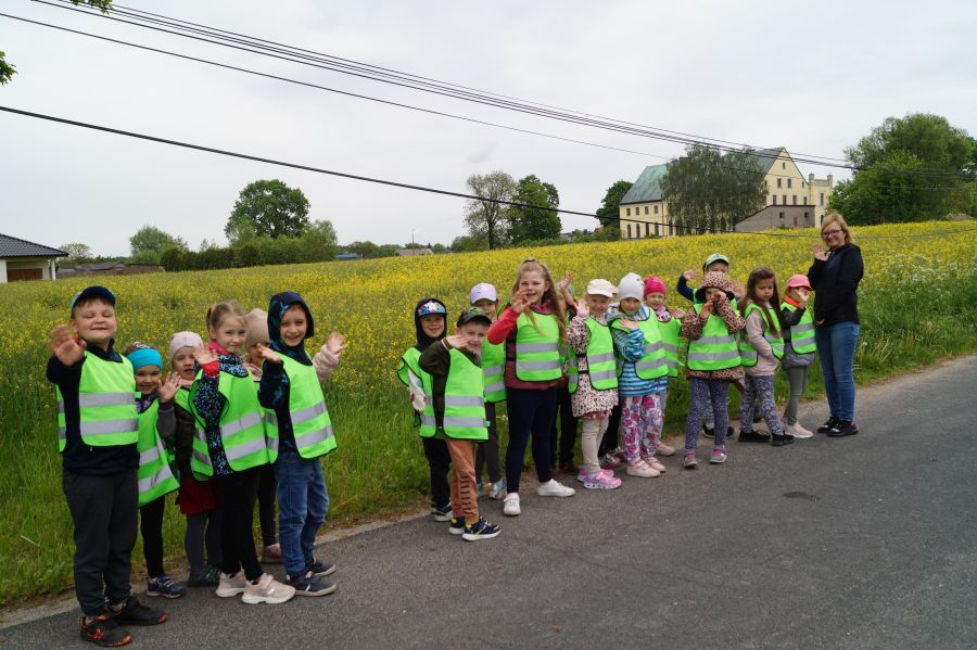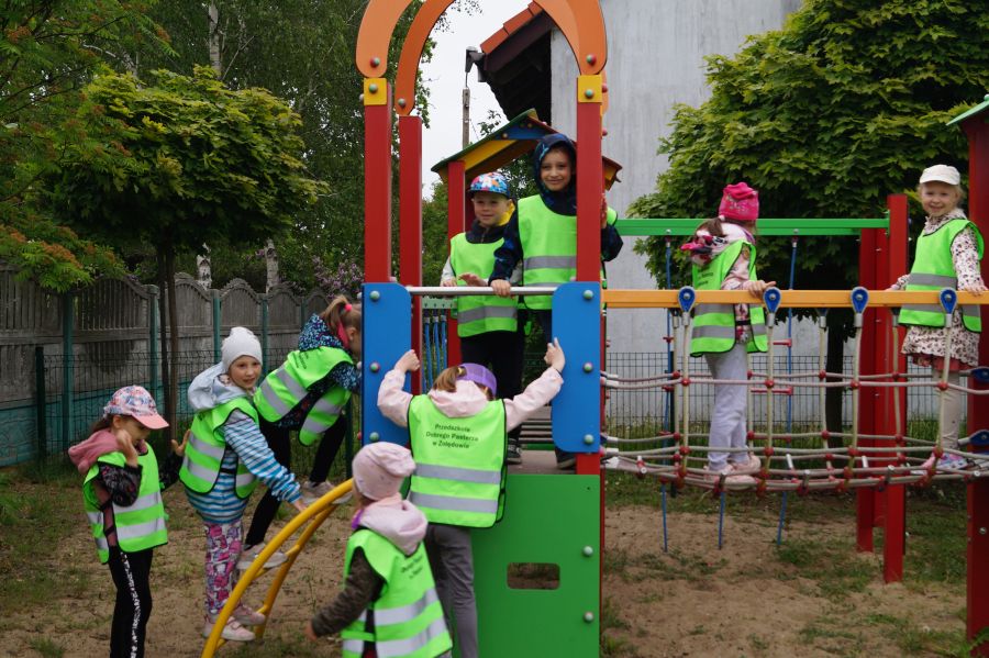 Grupa starsza wybrała się dzisiaj na spacer po swojej miejscowości, w ramach tematu kompleksowego MOJA MIEJSCOWOŚĆ , MÓJ REGION. Na zakończenie wycieczka dzieci pobawiły się na pobliskim placu zabaw.