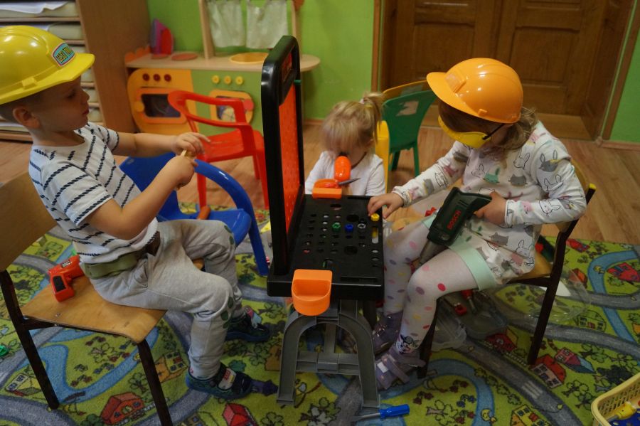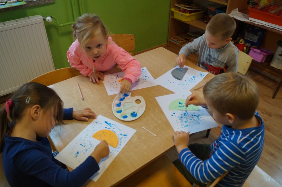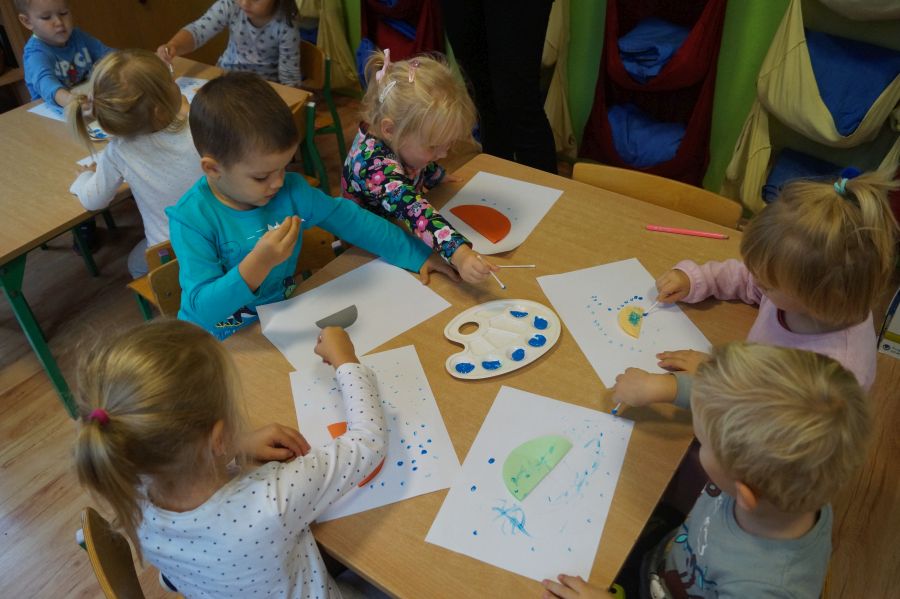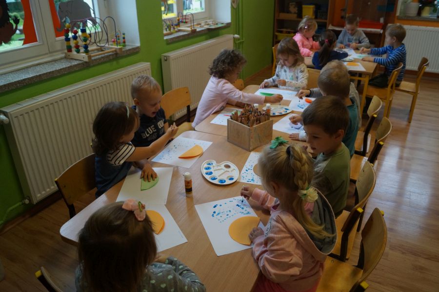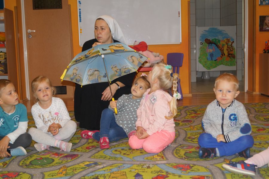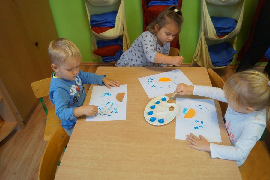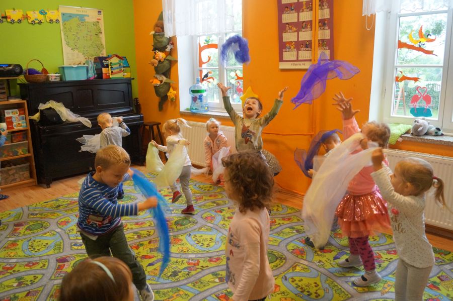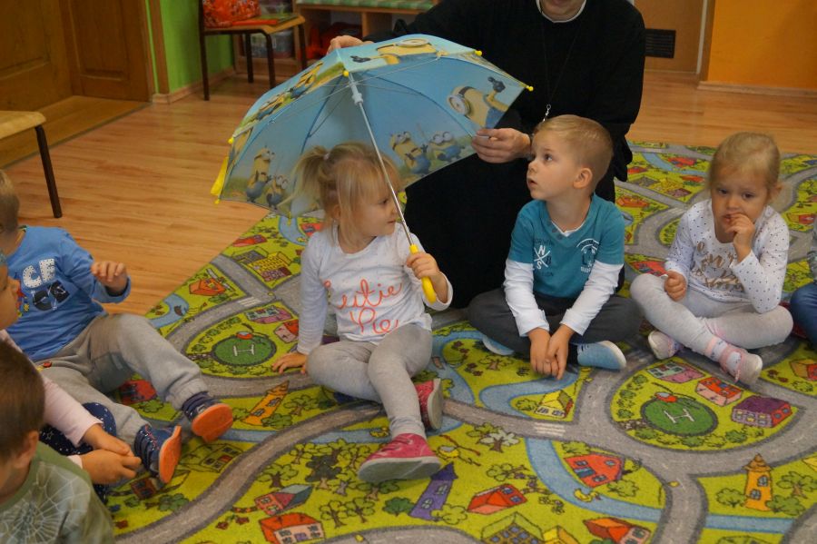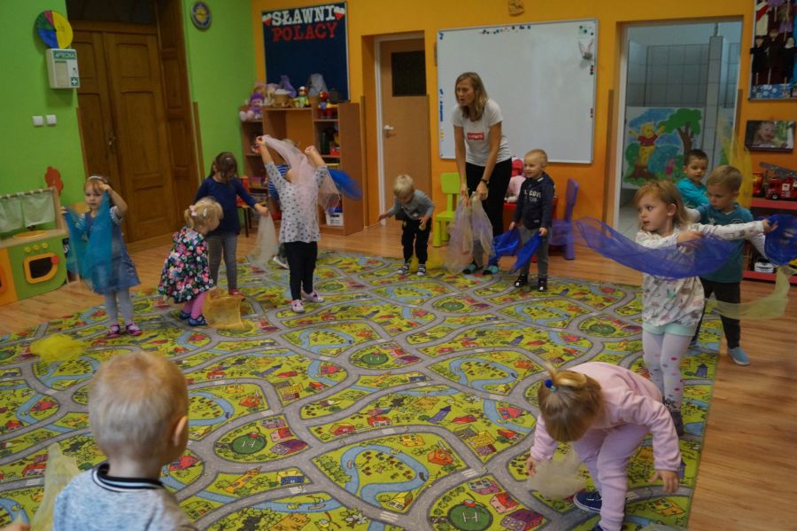 Grupa młodsza zakończyła miesiąc wrzesień jesienno- deszczowymi zabawami w sali. Zabawy na deszczową porę…