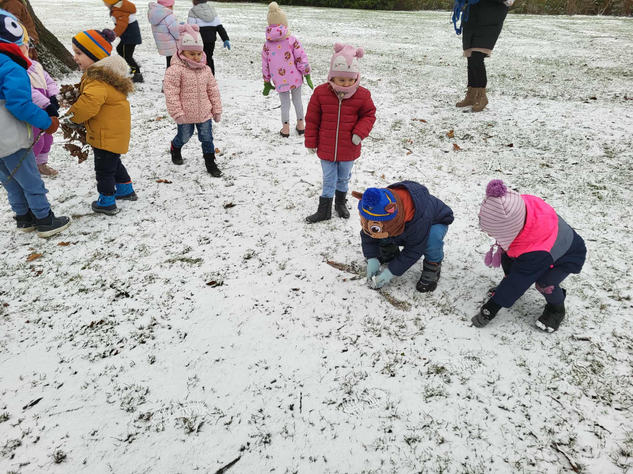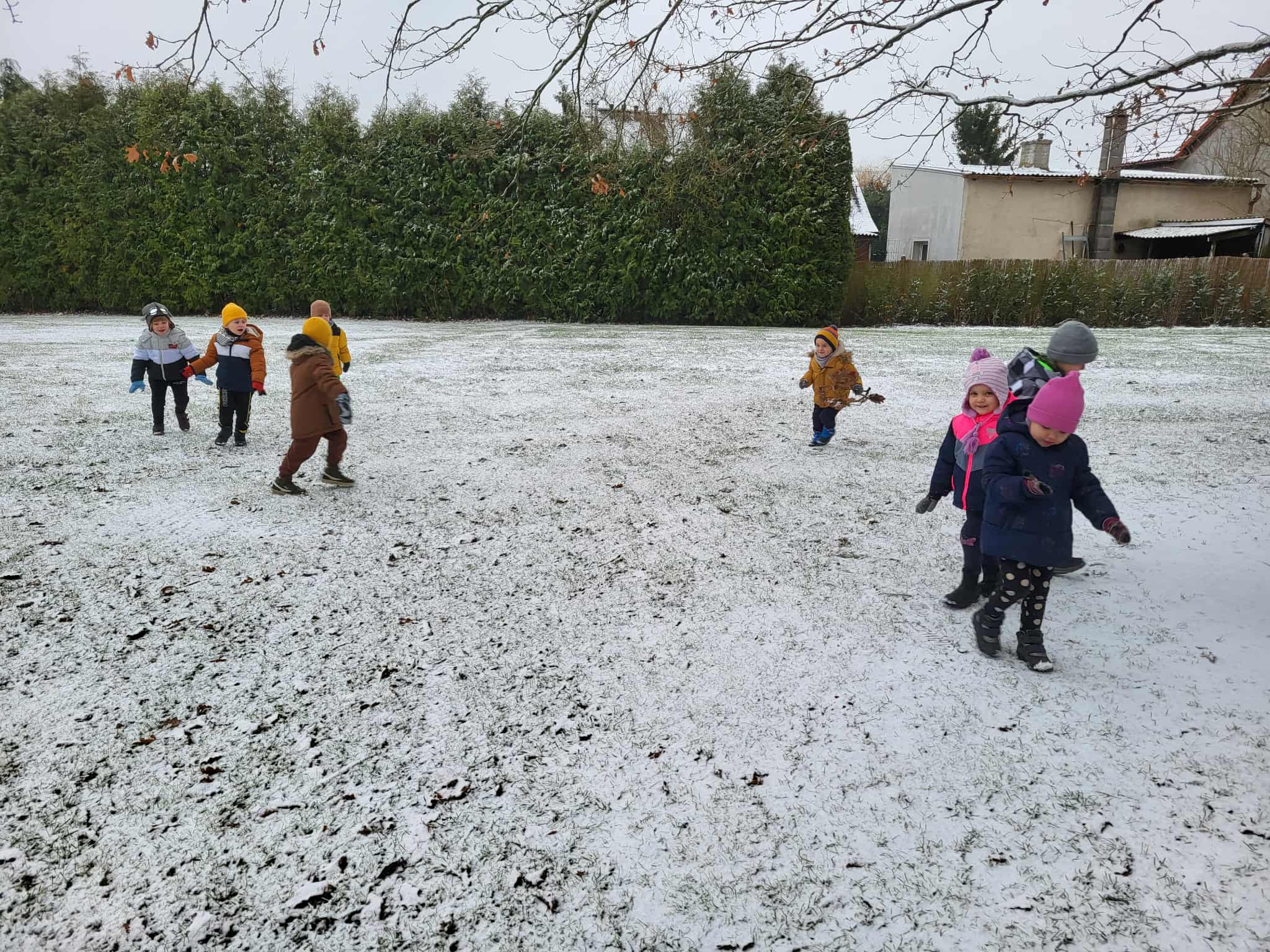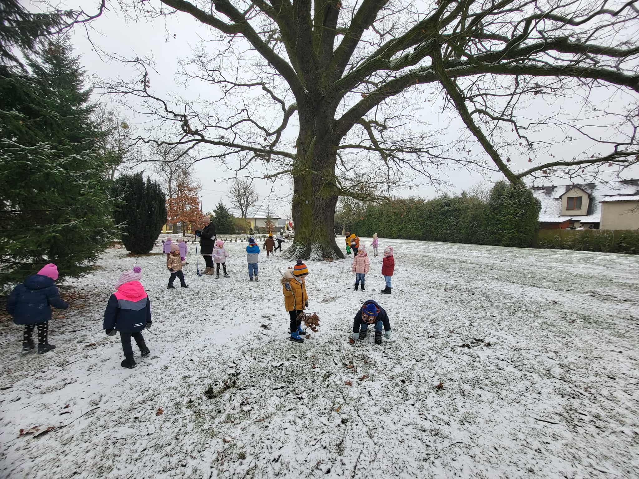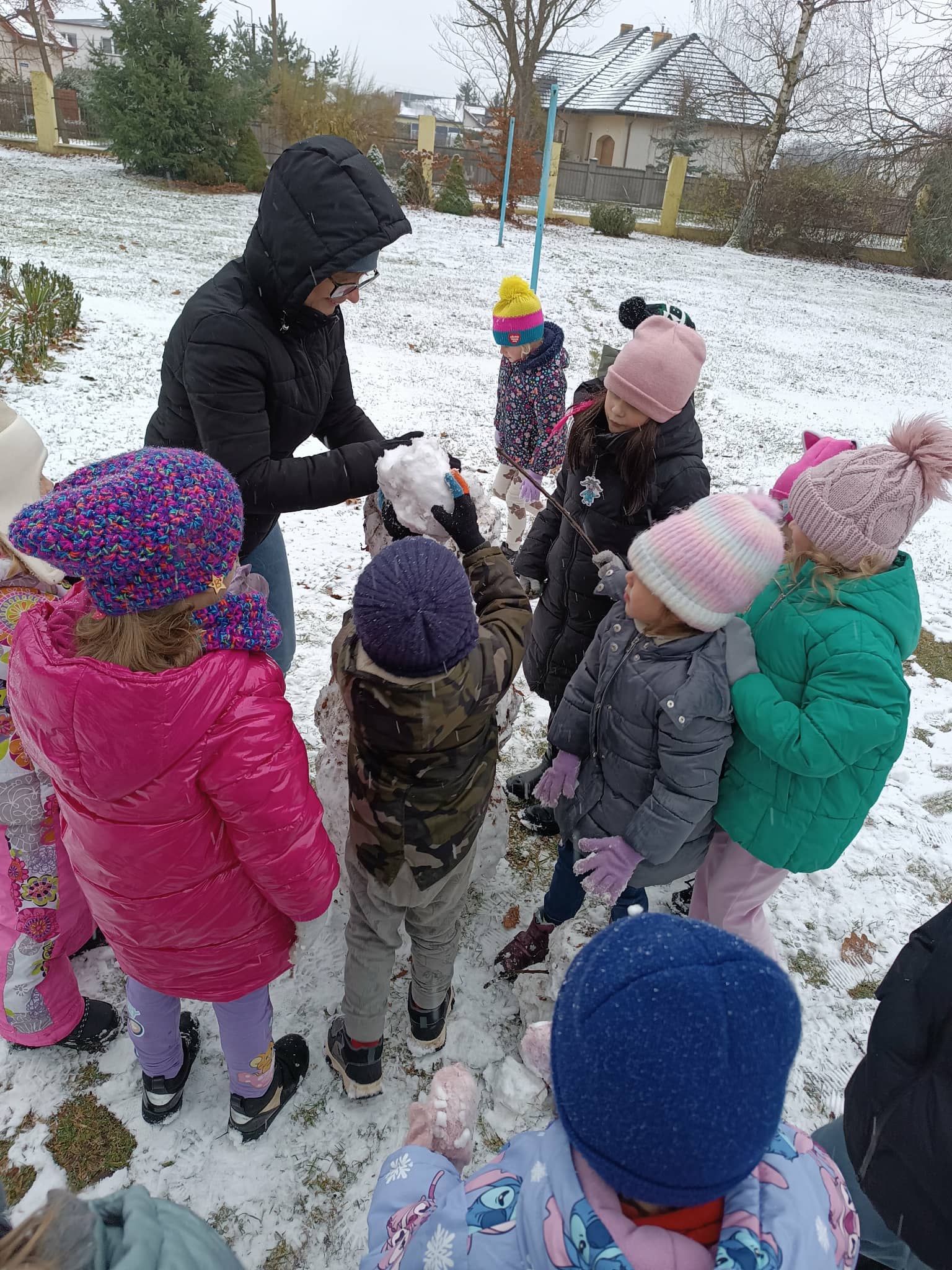 Grupa starsza korzystając z tego, że spadł pierwszy śnieg postanowiła pobawić się w ogrodzie i ulepić wspólnie bałwana. Nie ukrywamy, że sprawiło to dzieciom wiele radości. Dzieci młodsze również chętnie, z ogromnym entuzjazmem bawiły się w ogrodzie przedszkolnym.