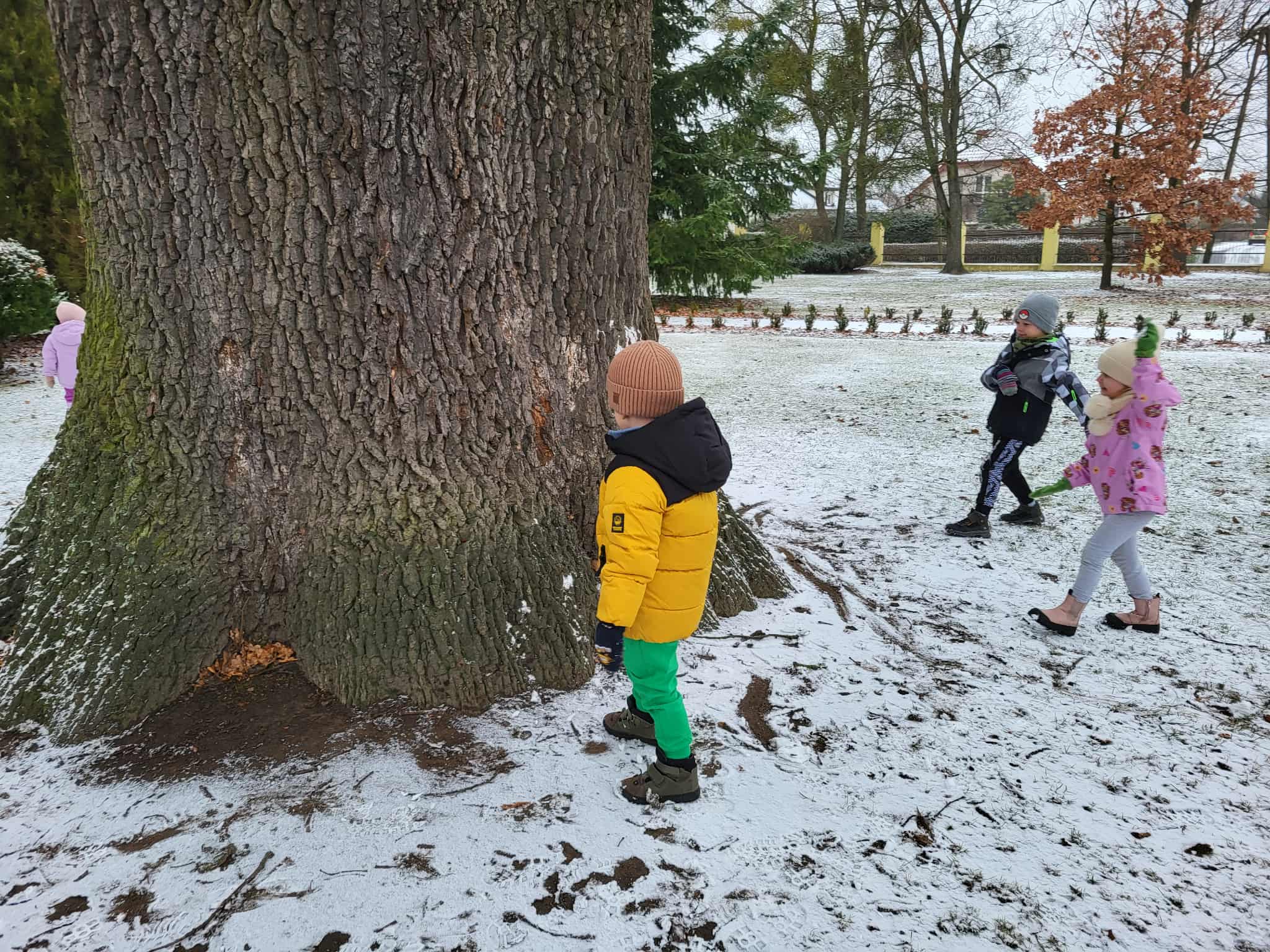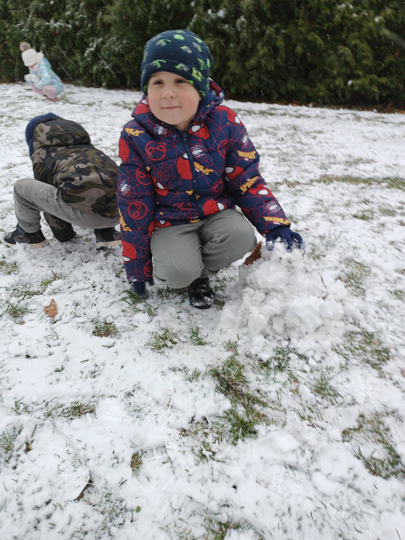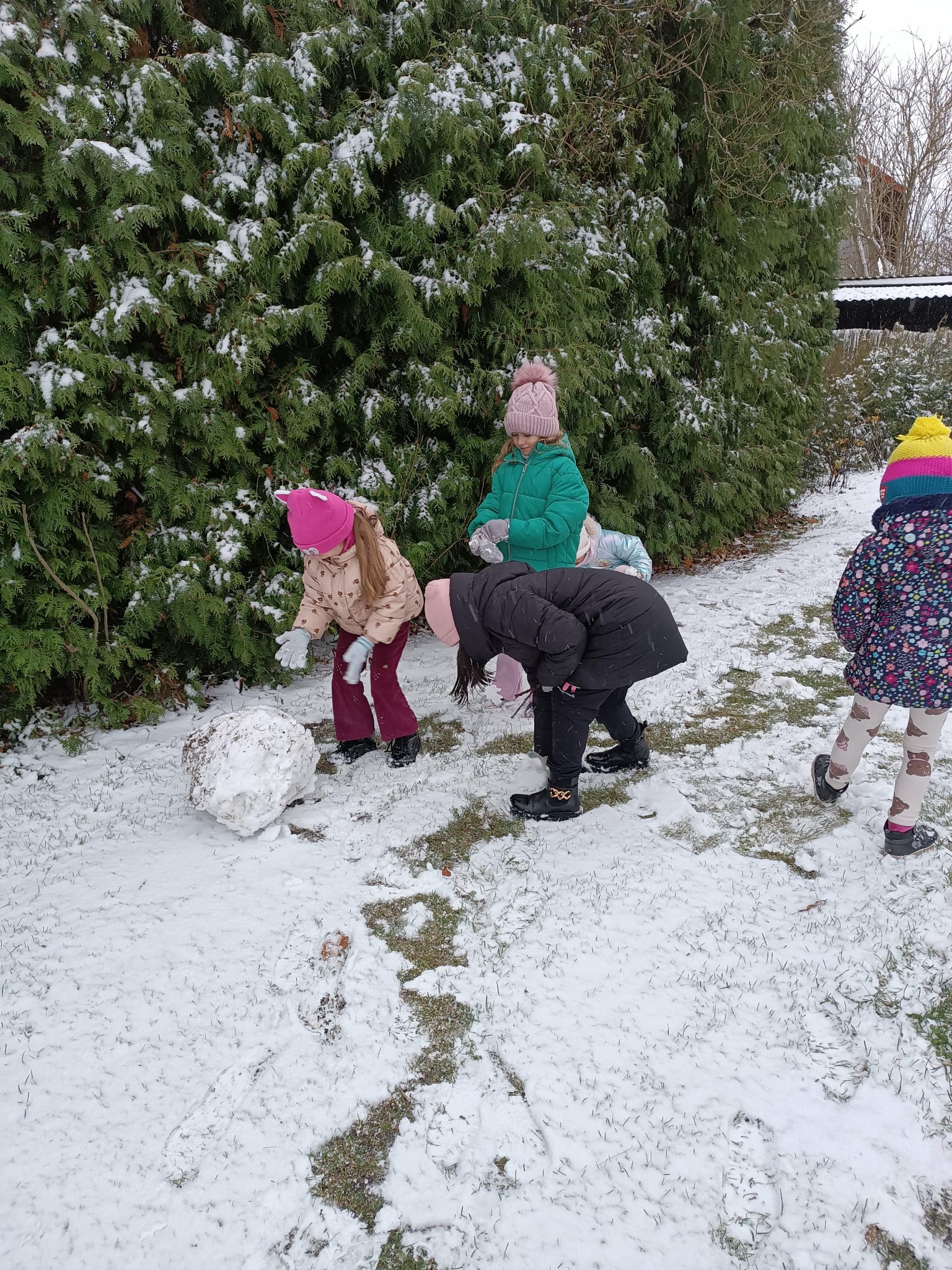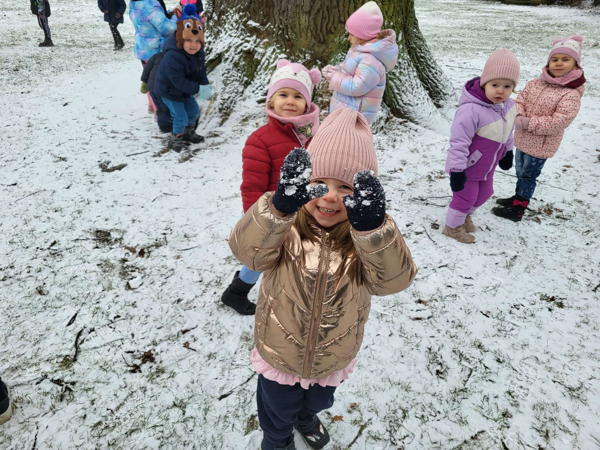 Grupa starsza korzystając z tego, że spadł pierwszy śnieg postanowiła pobawić się w ogrodzie i ulepić wspólnie bałwana. Nie ukrywamy, że sprawiło to dzieciom wiele radości. Dzieci młodsze również chętnie, z ogromnym entuzjazmem bawiły się w ogrodzie przedszkolnym.
