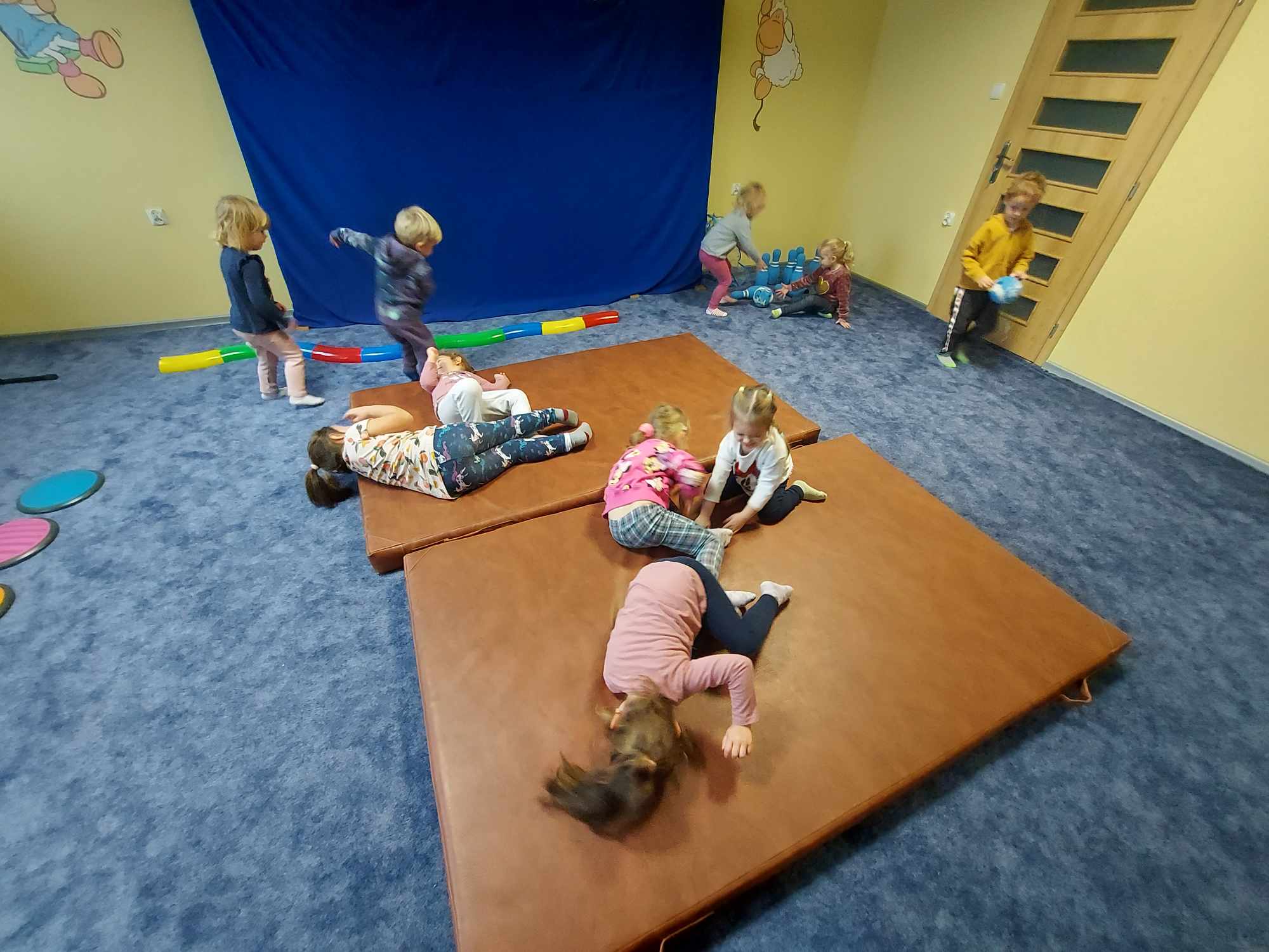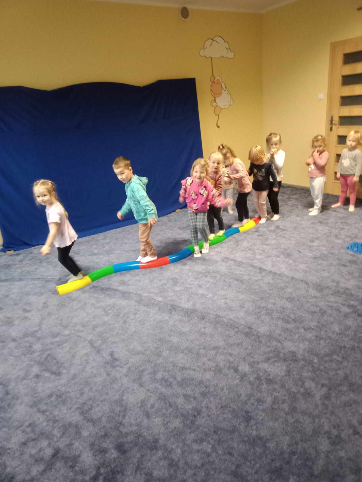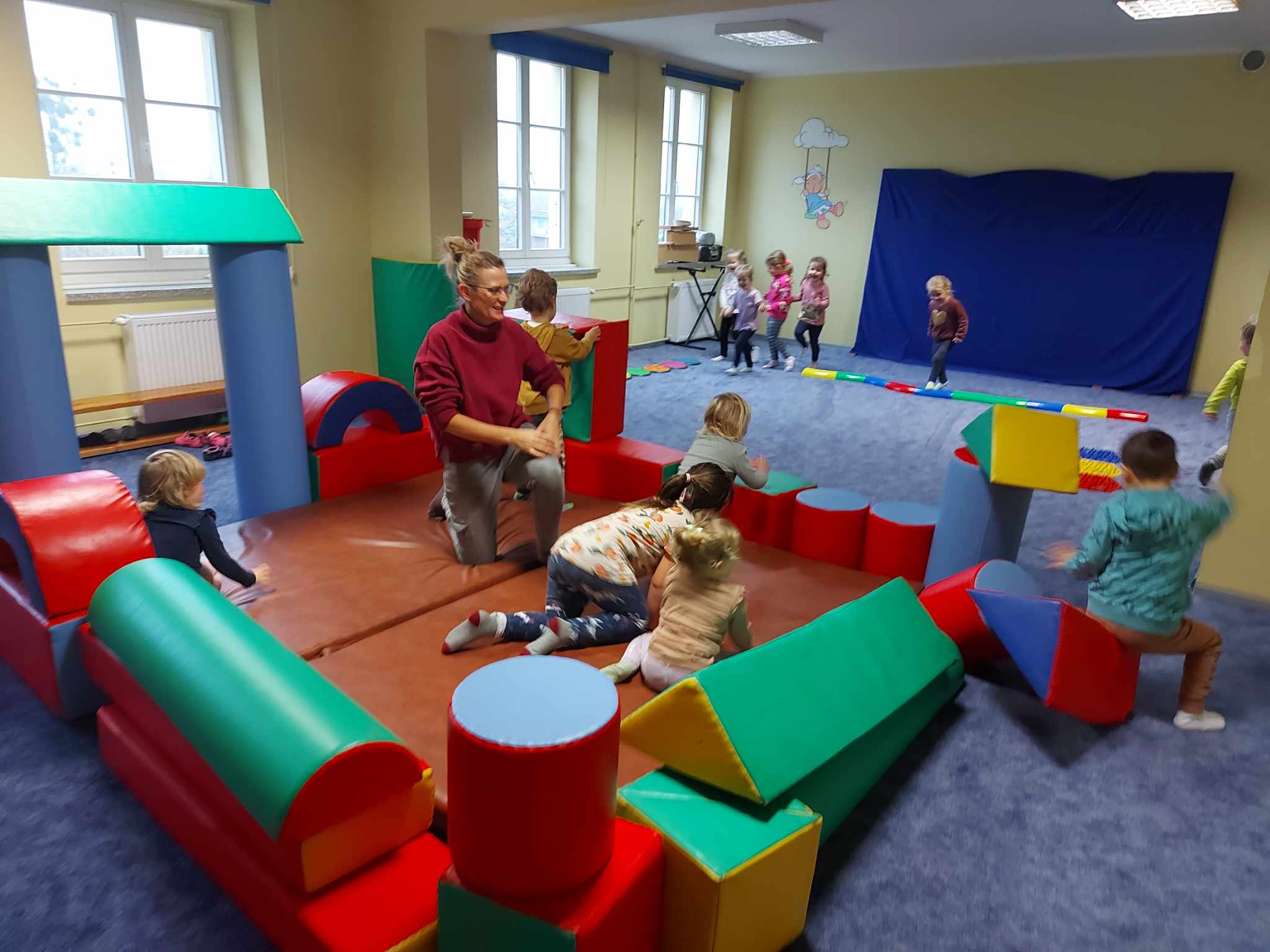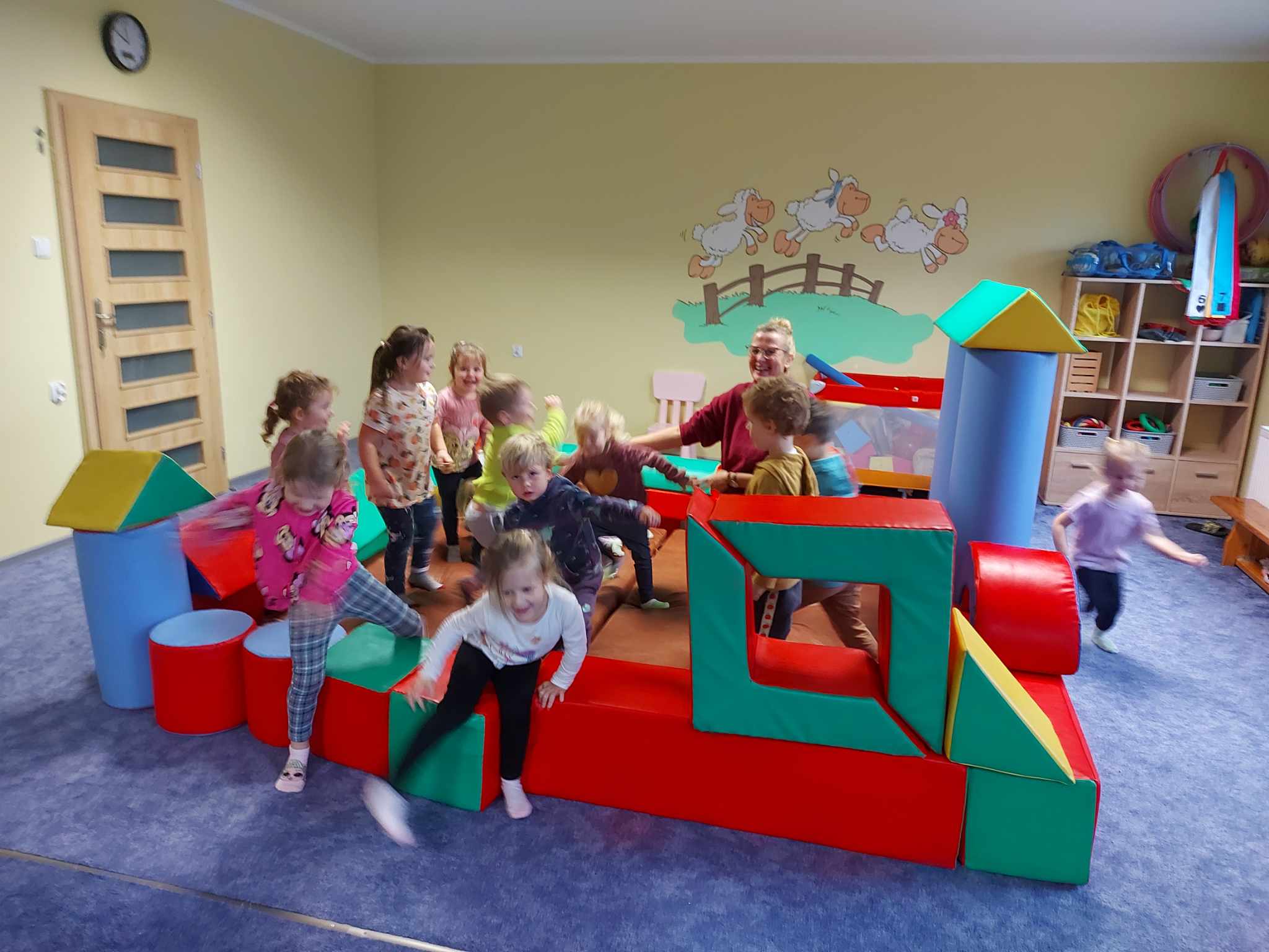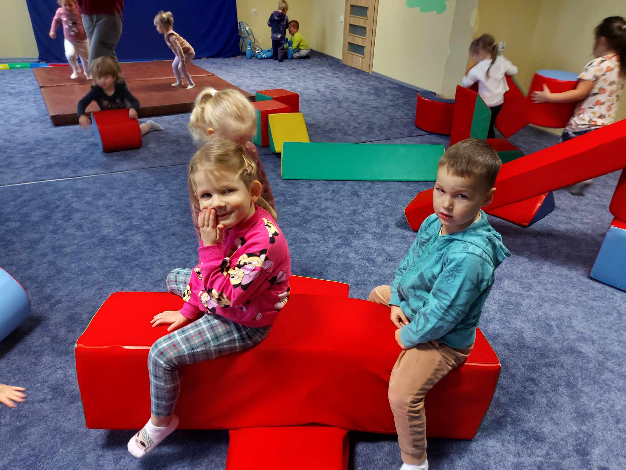 Niezbyt przyjazna pogoda pozwoliła nam więcej czasu spędzić na sali rekreacyjnej. Dzieci kochają duże klocki, radość nie miała końca.