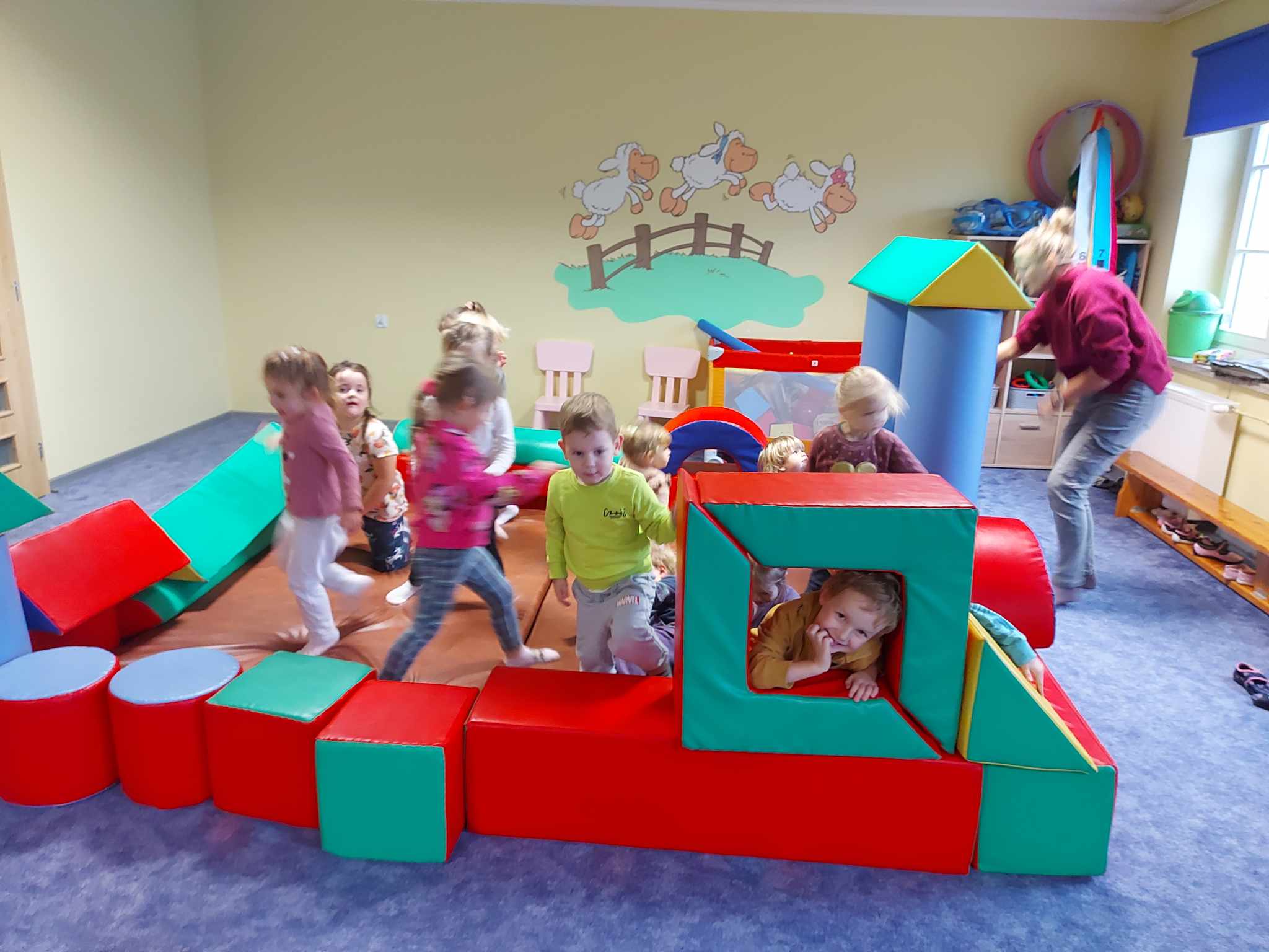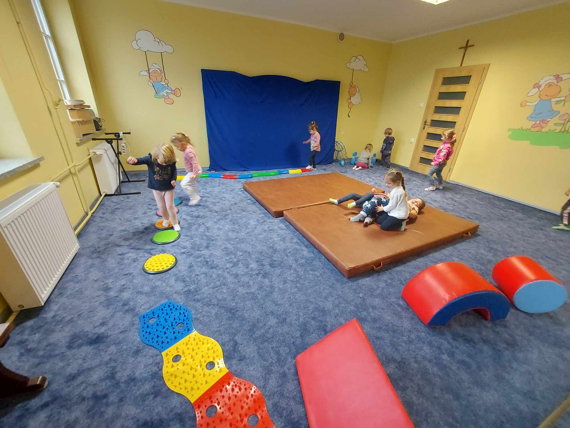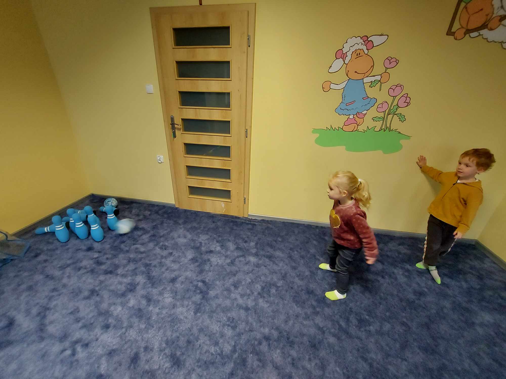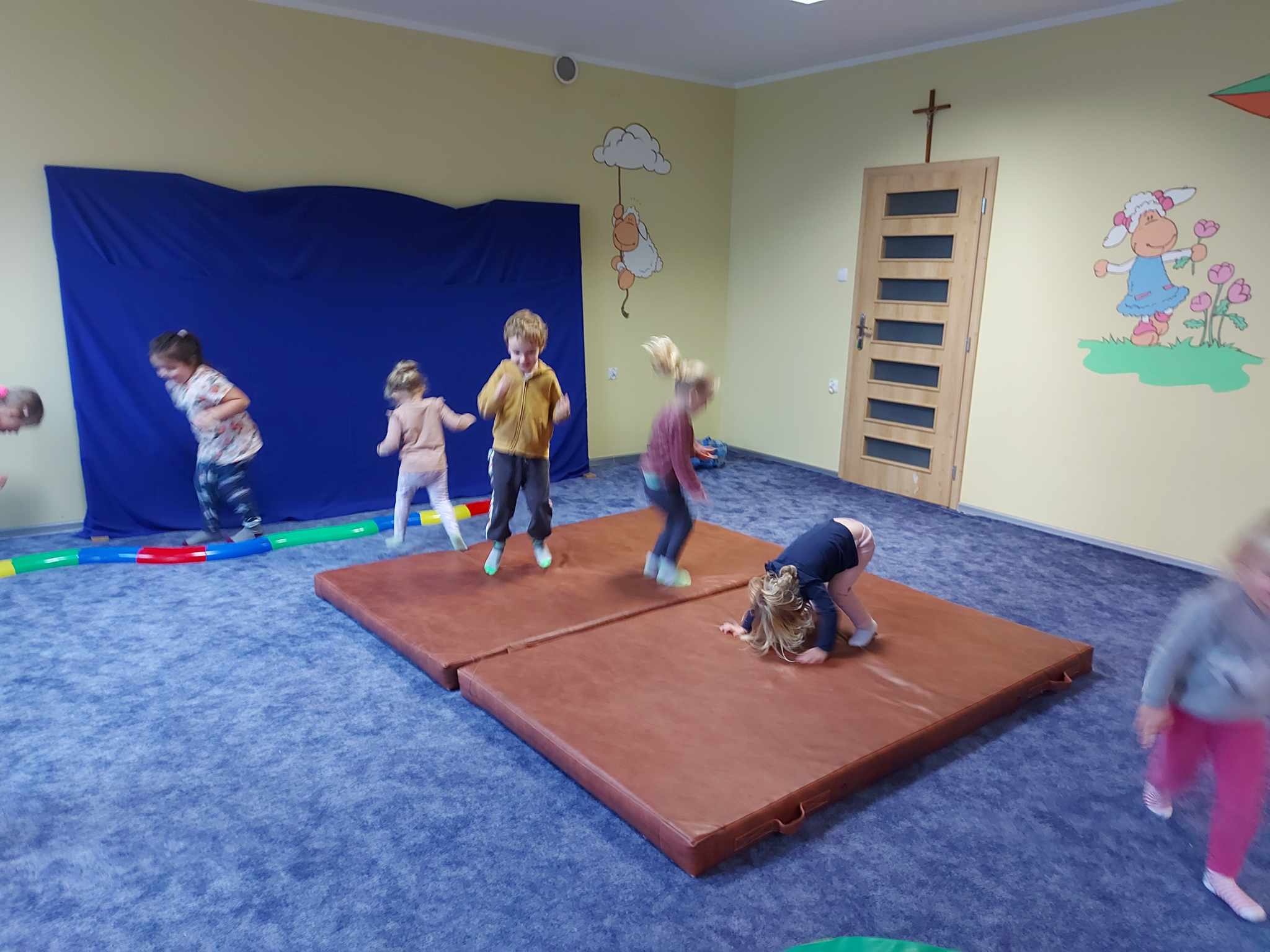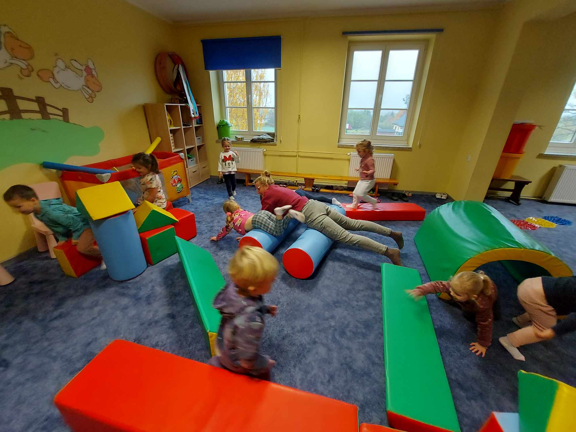 Niezbyt przyjazna pogoda pozwoliła nam więcej czasu spędzić na sali rekreacyjnej. Dzieci kochają duże klocki, radość nie miała końca.