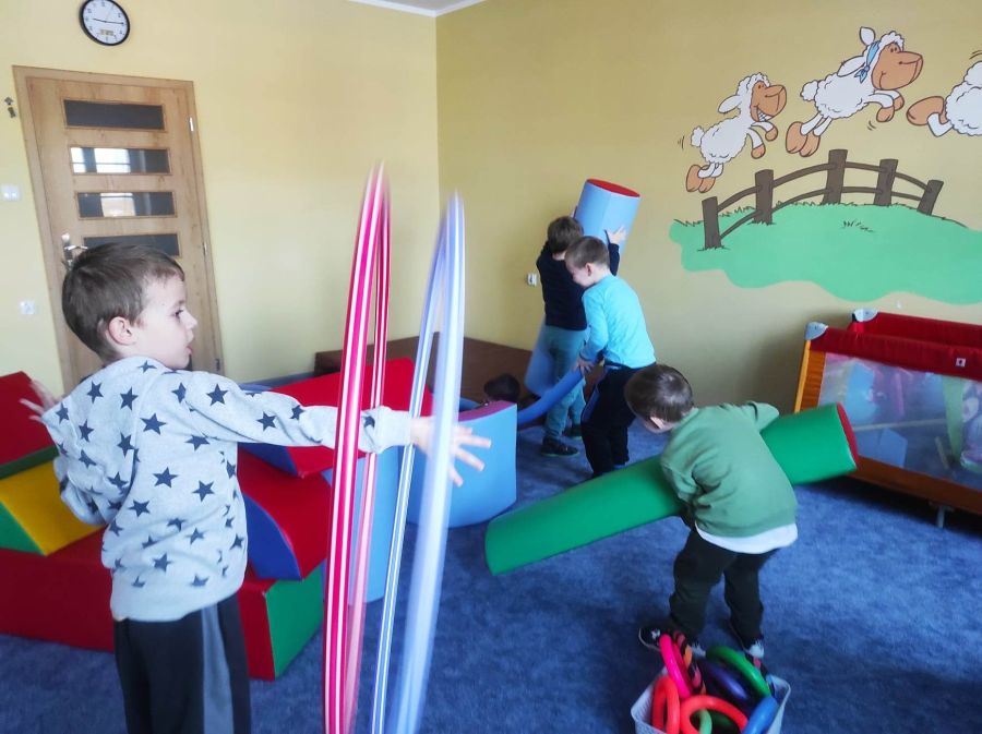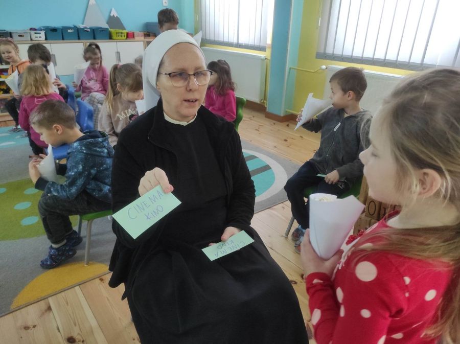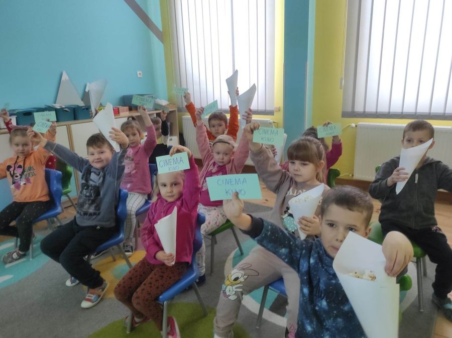 Nasi starszacy również wybrali się na seans do przedszkolnego kina, a także korzystali z zabaw w sali rekreacyjnej.