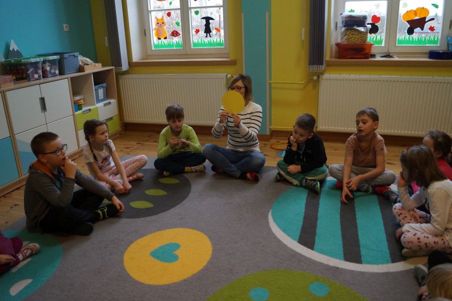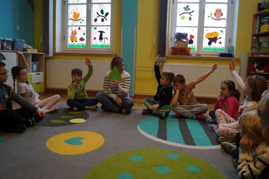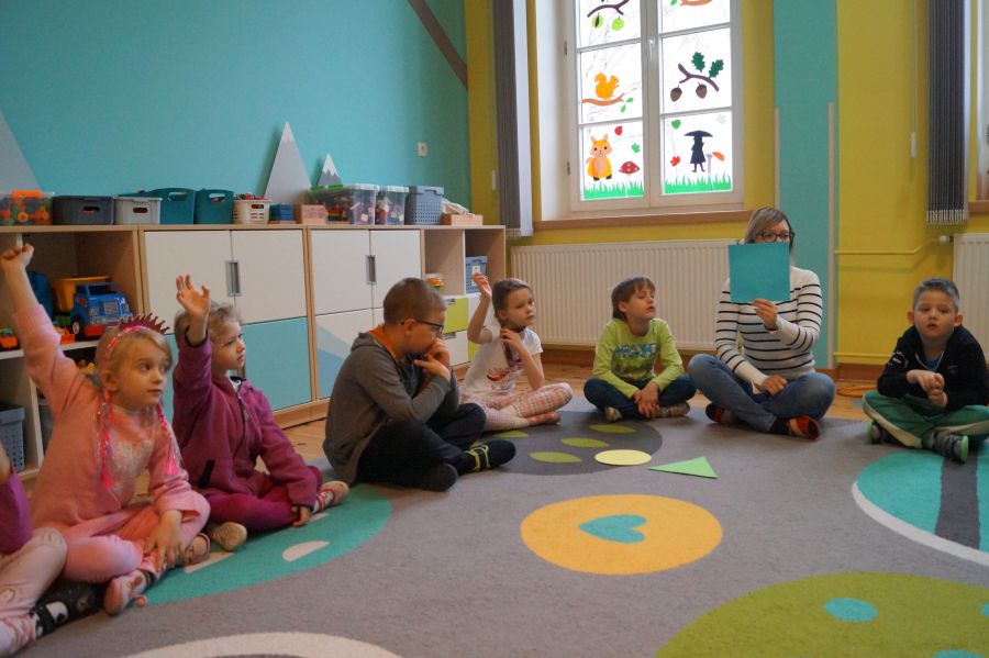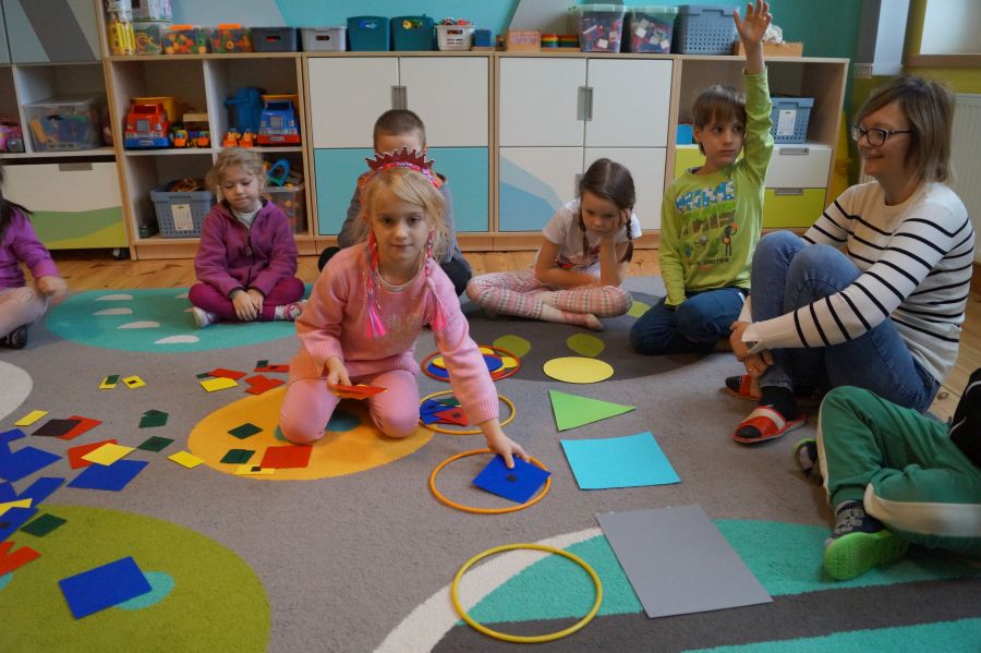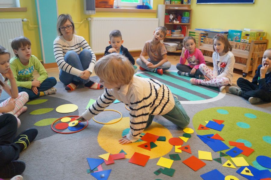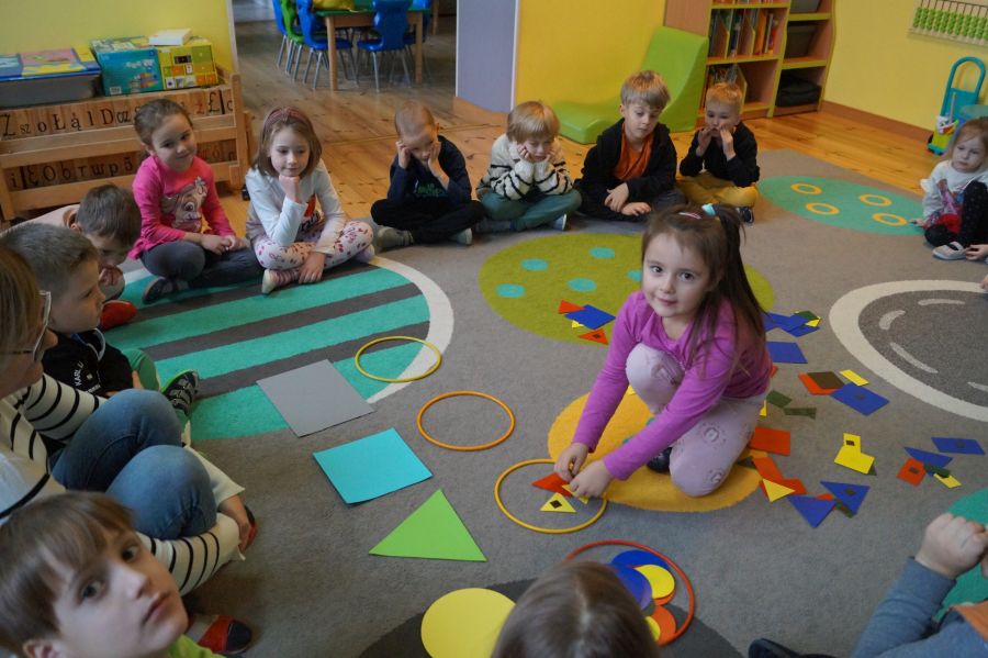 Zabawy z figurami geometrycznymi w grupie starszej.