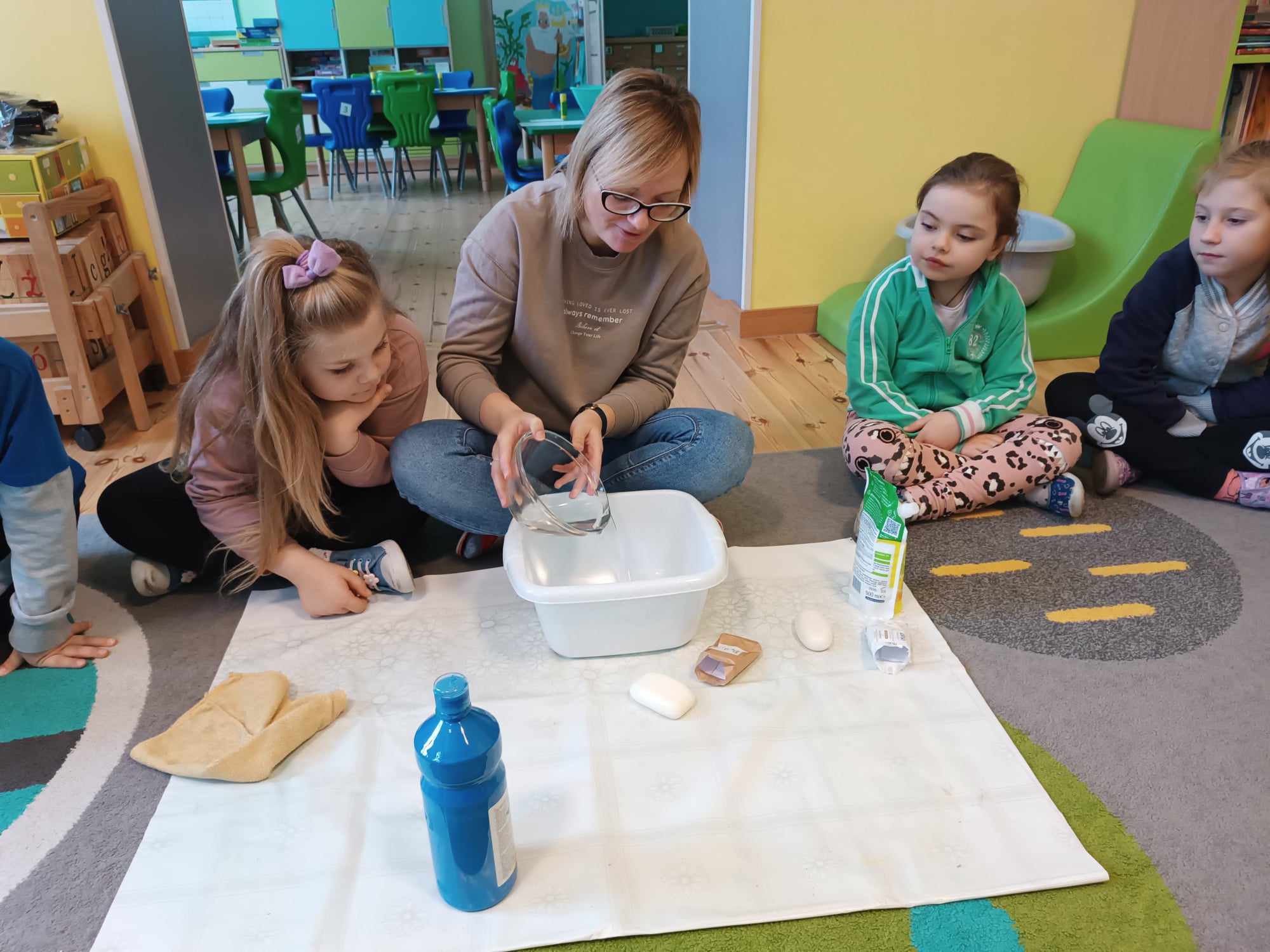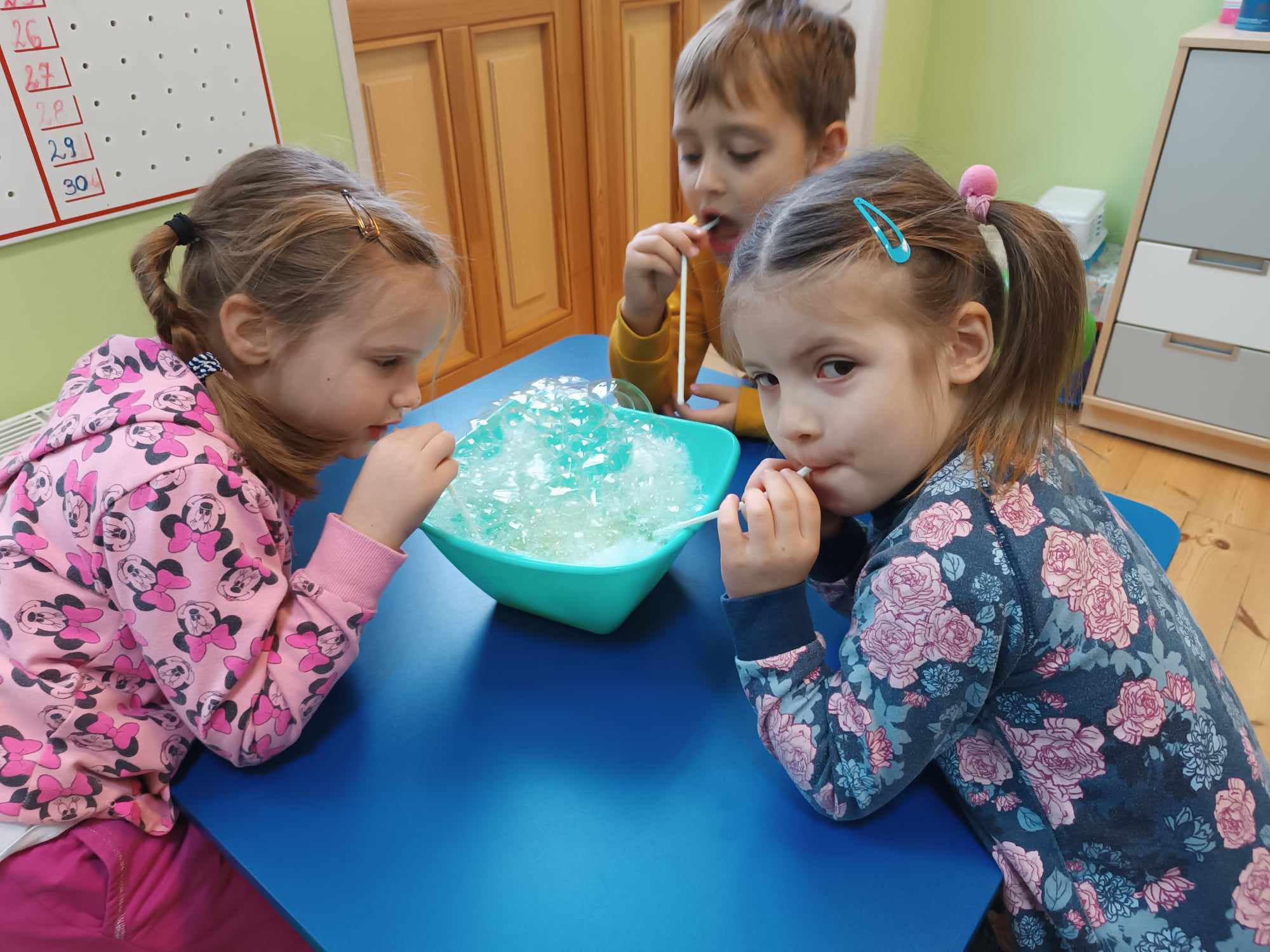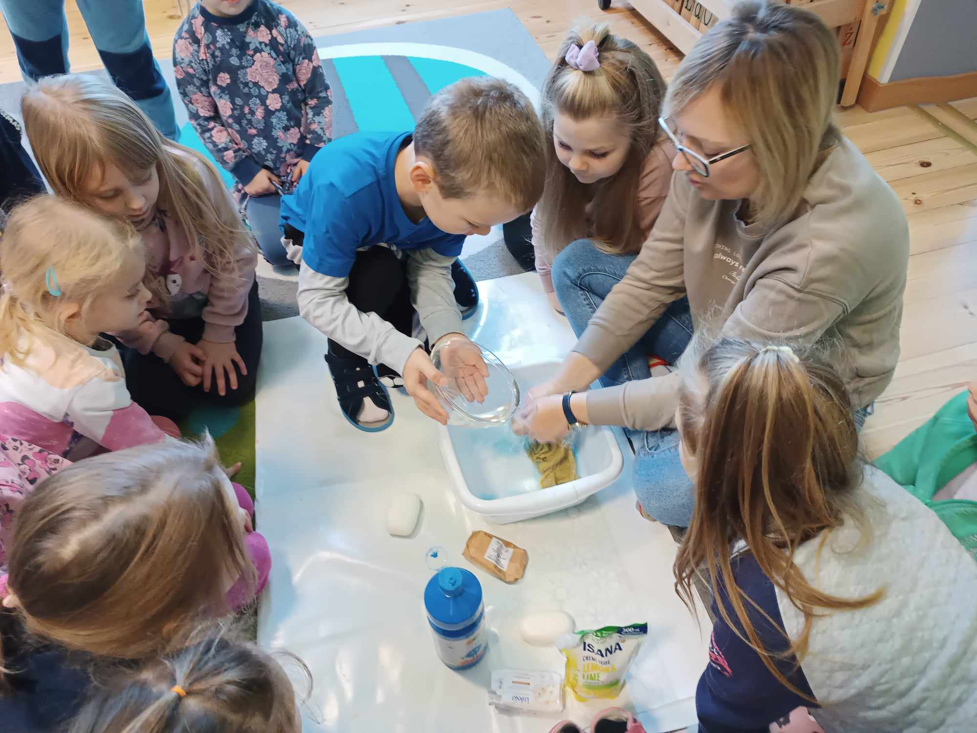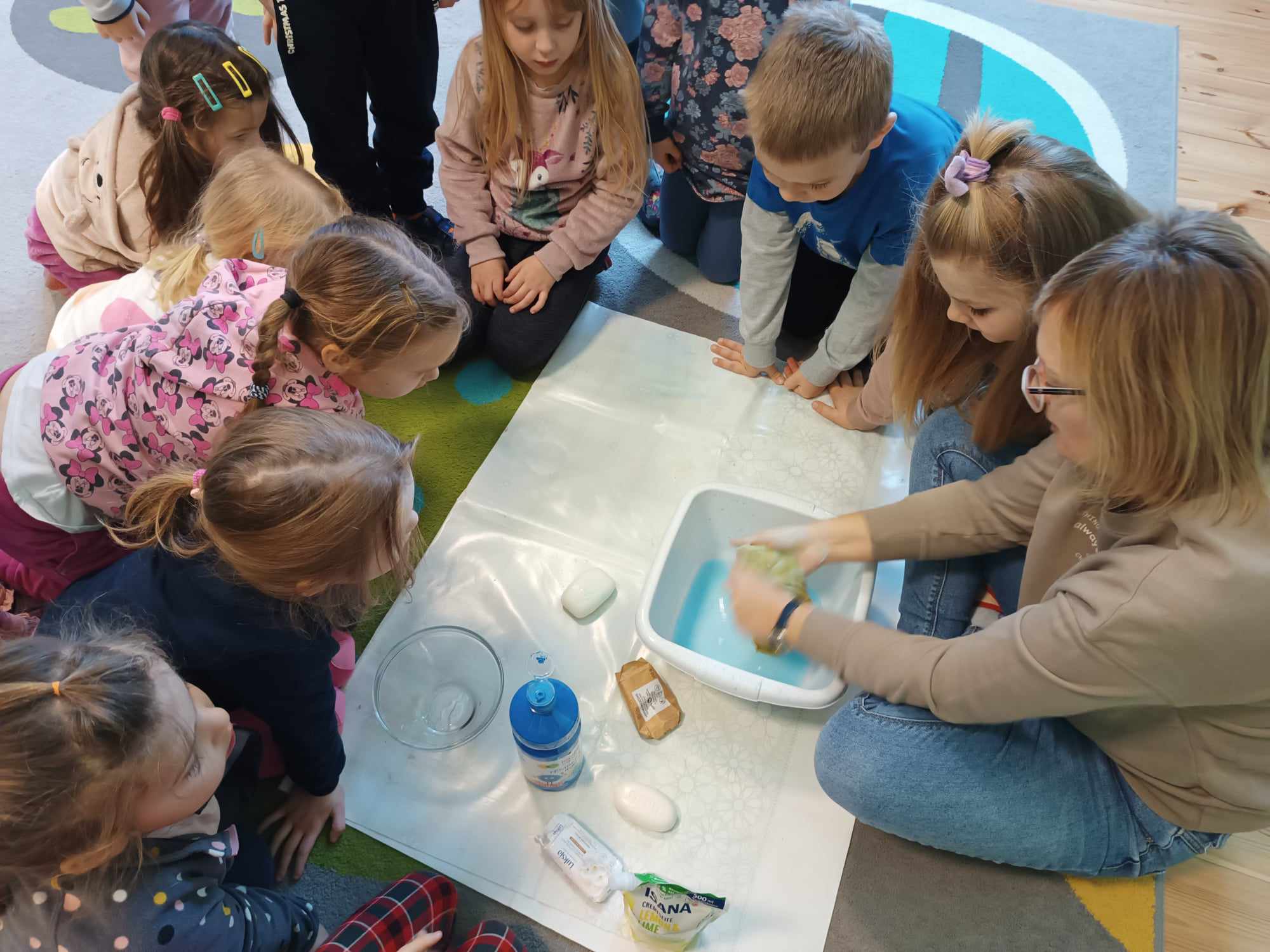 Bratki kontynuując temat kompleksowy dotyczący zdrowia rozmawiały nt. dbałości o czystość. Poznały zastosowanie mydła a także robiły kolorowe bańki mydlane.