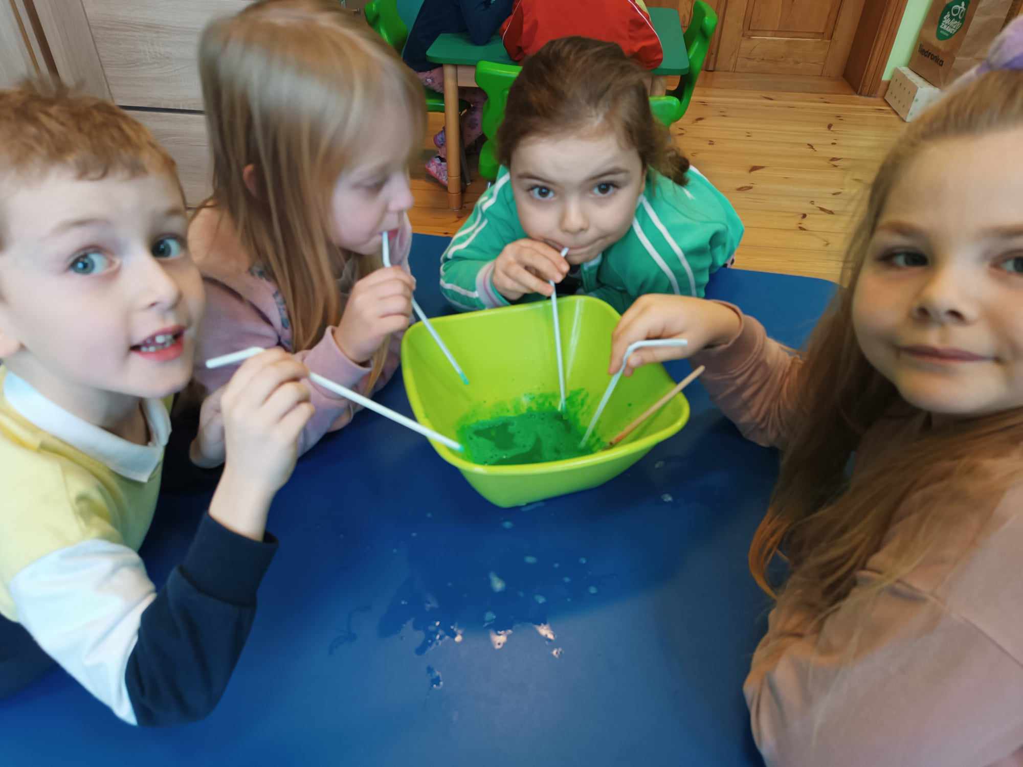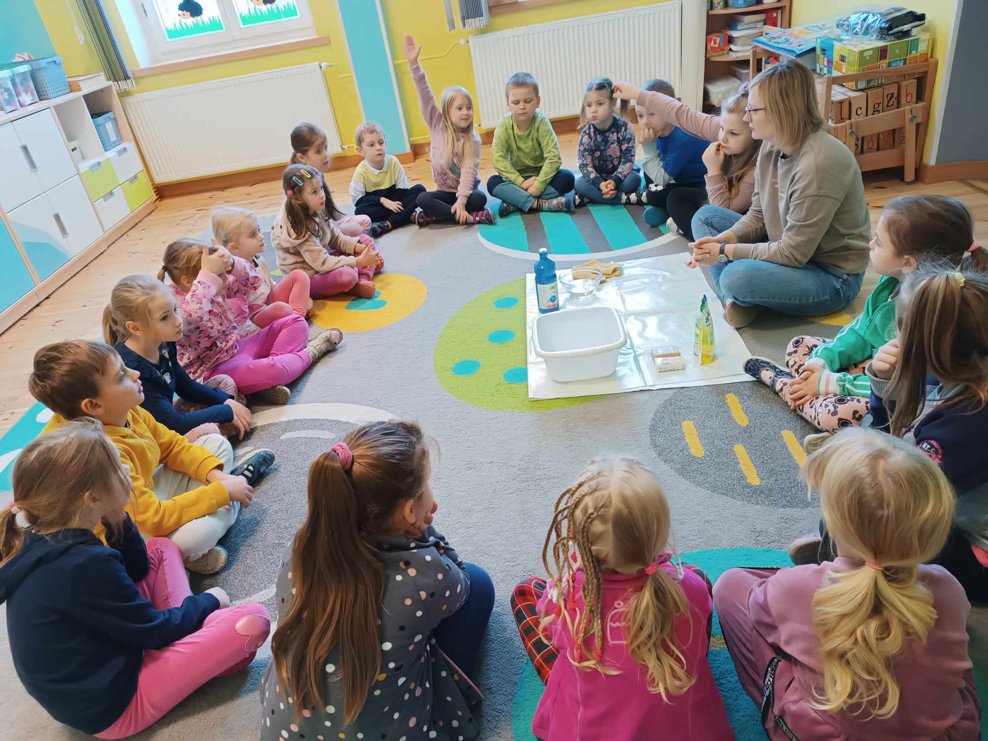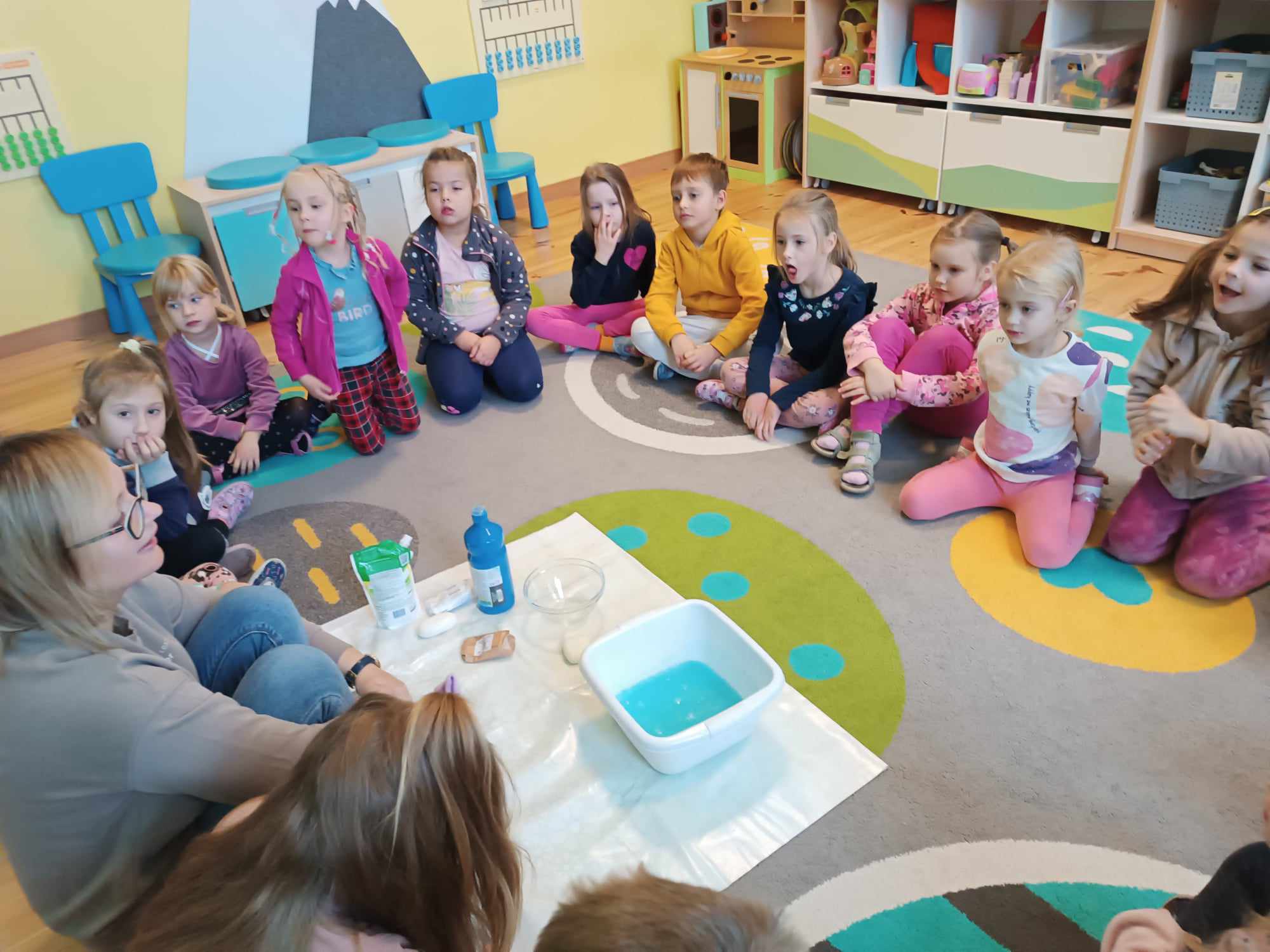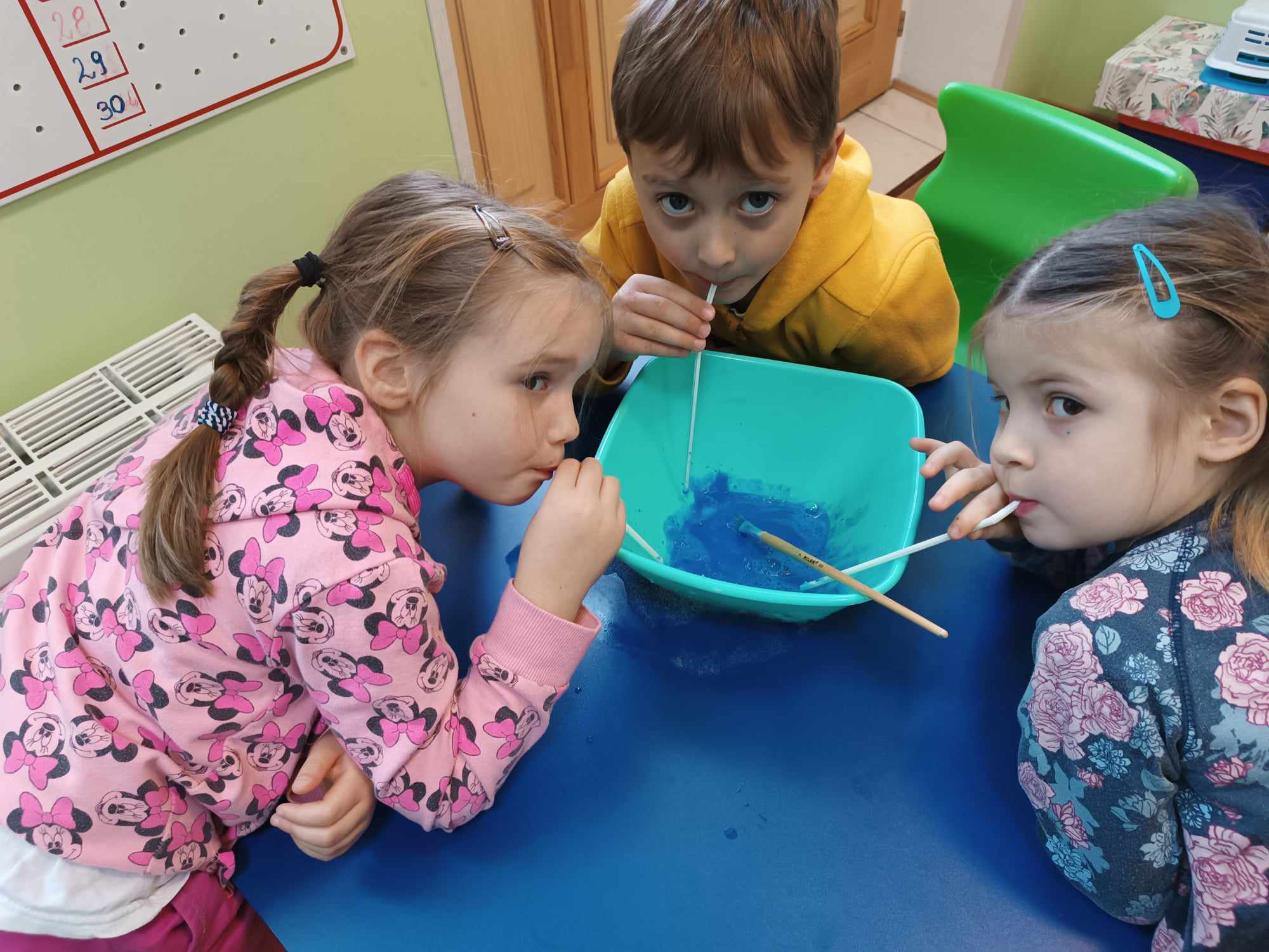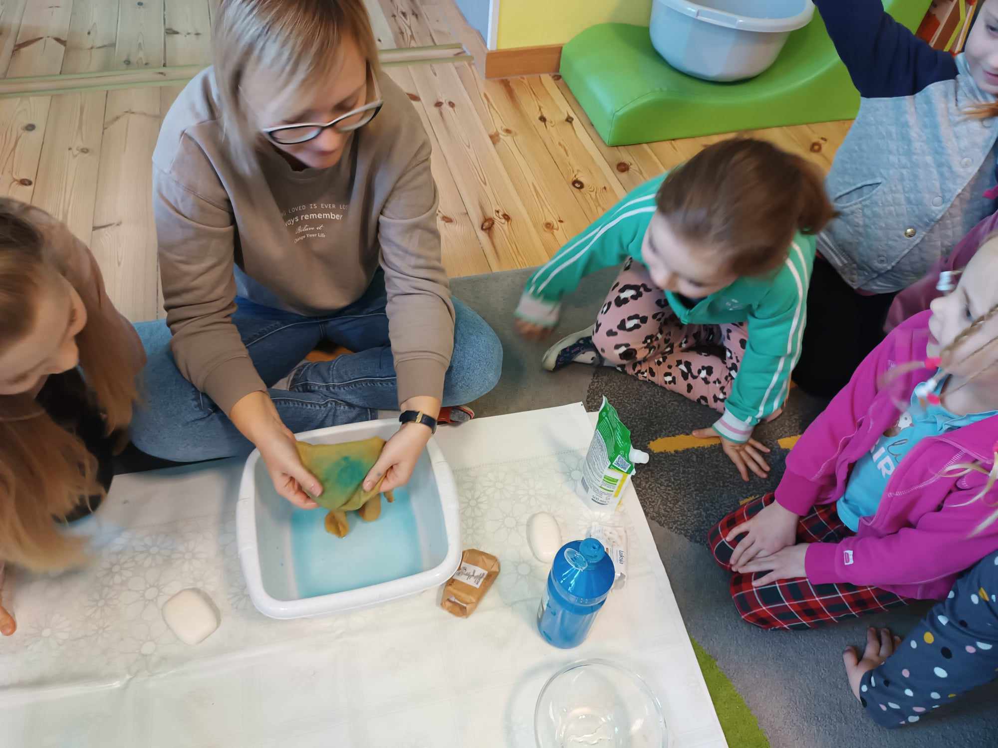 Bratki kontynuując temat kompleksowy dotyczący zdrowia rozmawiały nt. dbałości o czystość. Poznały zastosowanie mydła a także robiły kolorowe bańki mydlane.