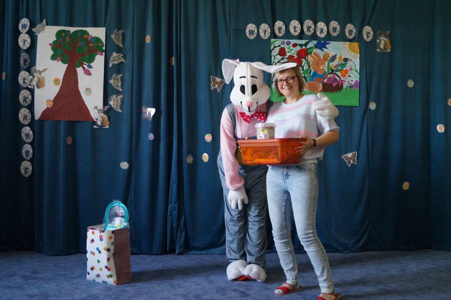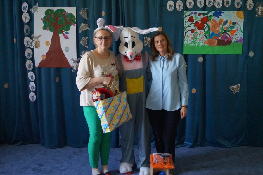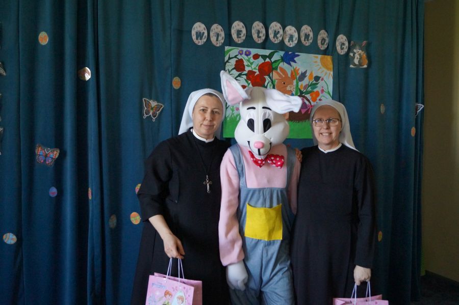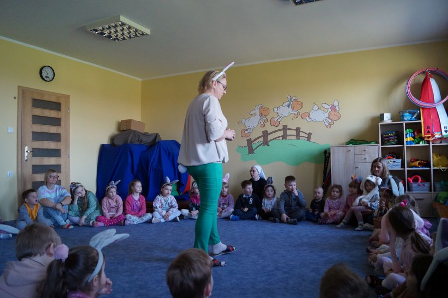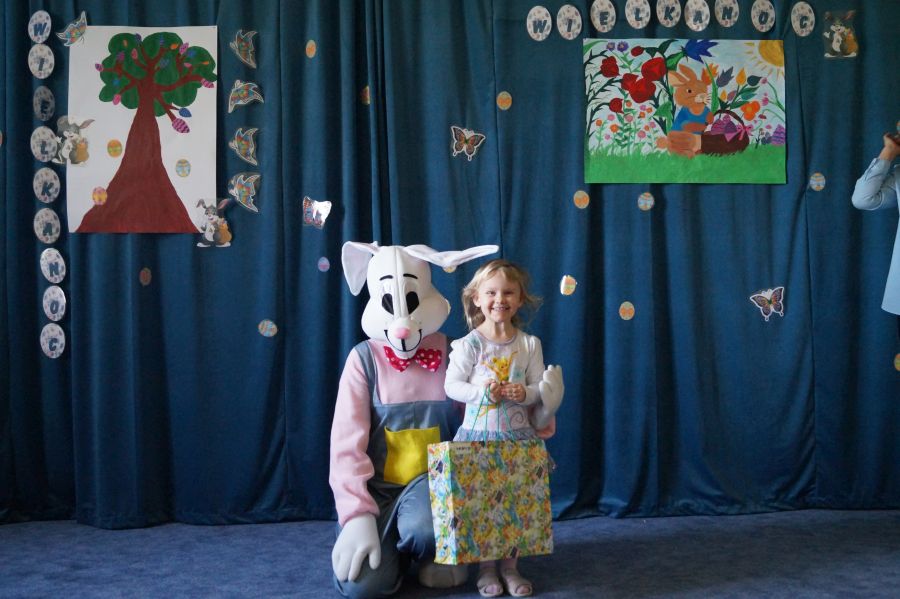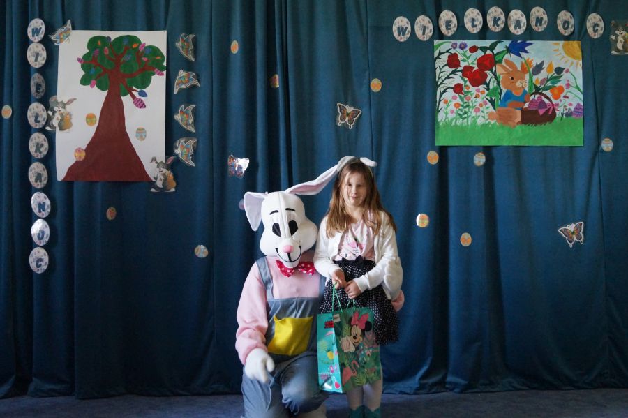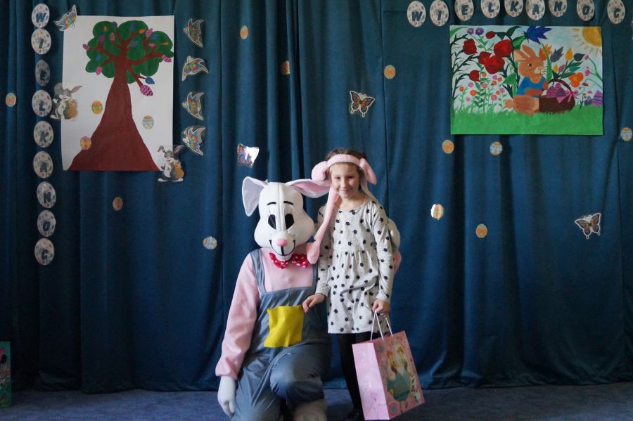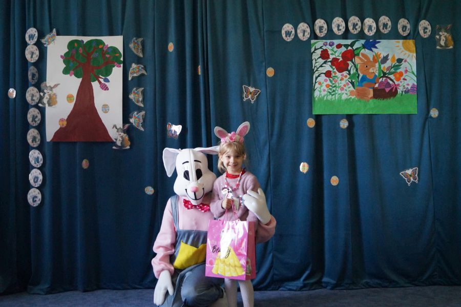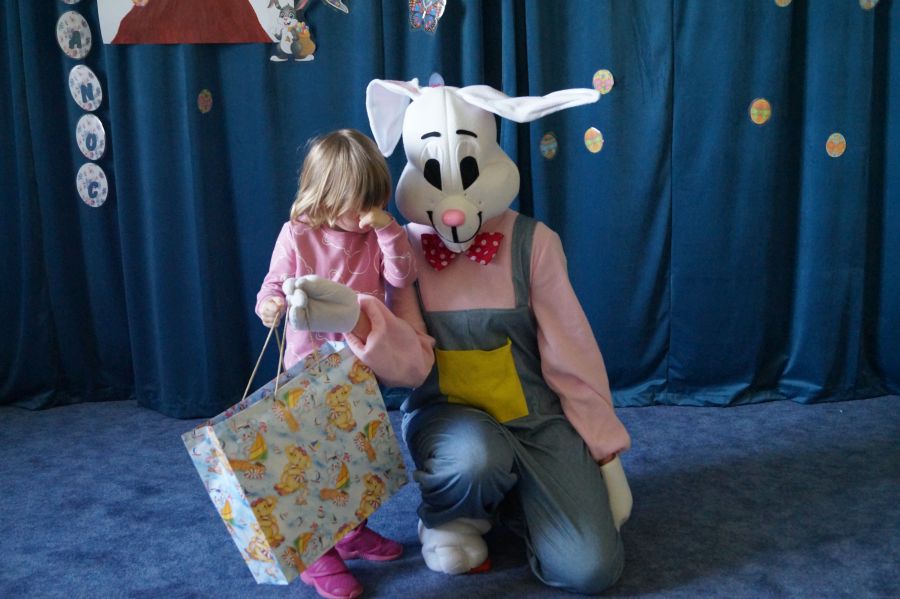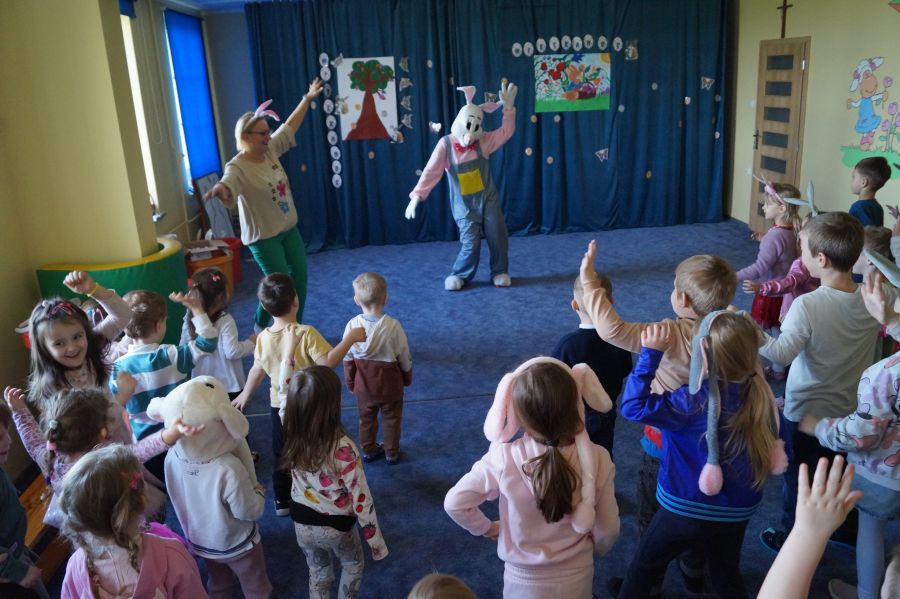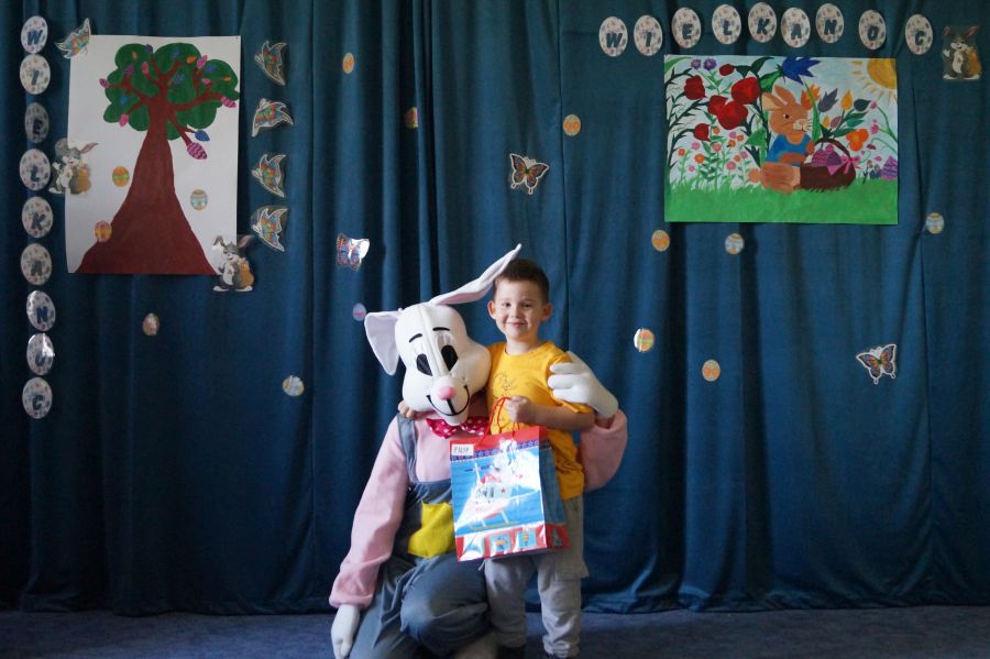 Dla dzieci w przeżywaniu Świat Zmartwychwstania Pańskiego bardzo ważne są upominki. Staramy się im wpoić, że bez Pana Jezusa nie byłoby Świąt i całe stworzenie cieszy się właśnie z Jego powodu. Dlatego też i do naszego przedszkola co roku przychodzi tzw. „Zając wielkanocny”, aby pobawić się z dziećmi i podarować im prezenty.