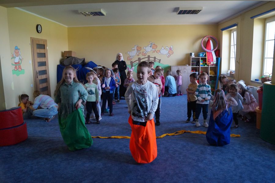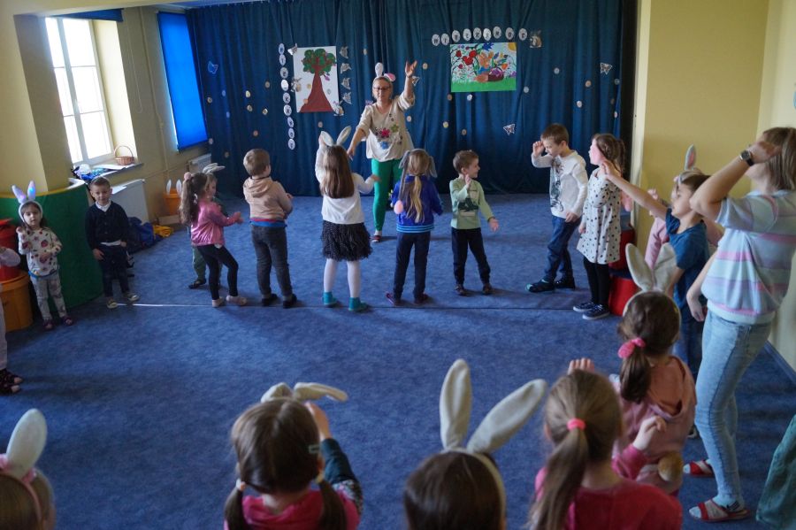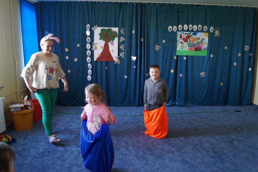 Zabawy z „Zającem Wielkanocnym”.