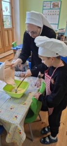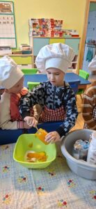 Na dzisiejszych zajęciach z „Kuchcikowa” grupa starsza przygotowała smaczne babeczki dyniowe. Zajęcia kulinarne w grupie starszej.
