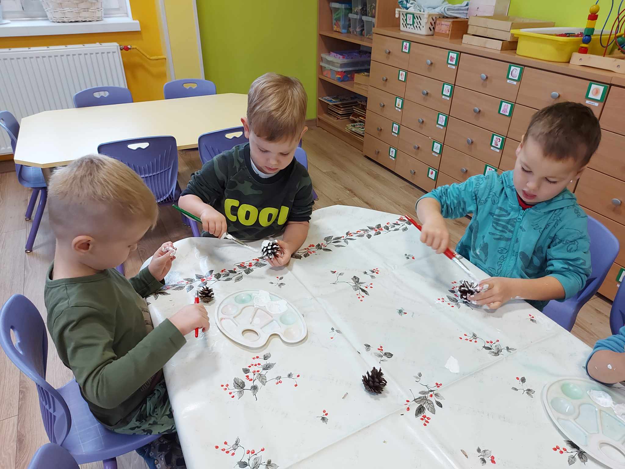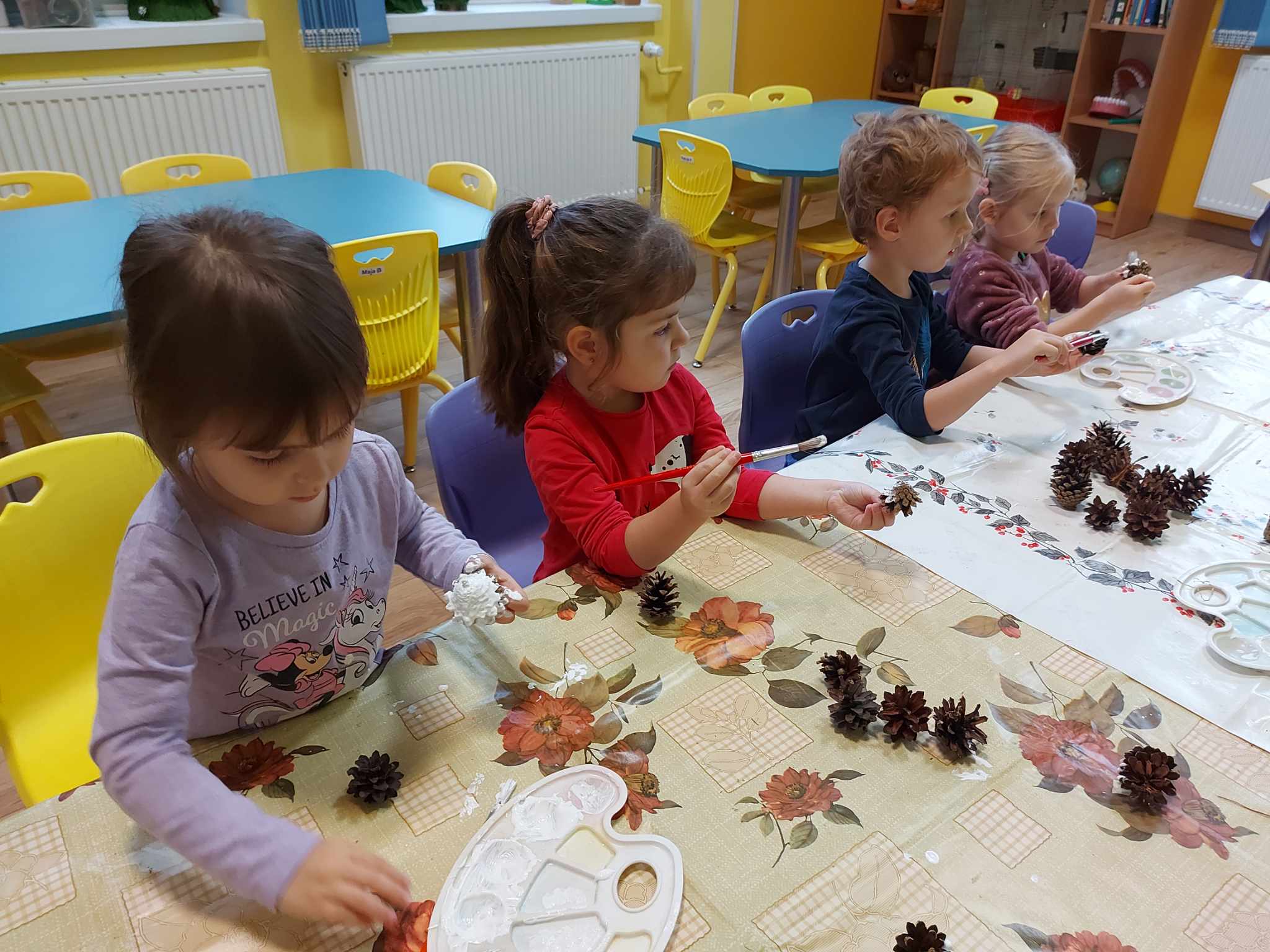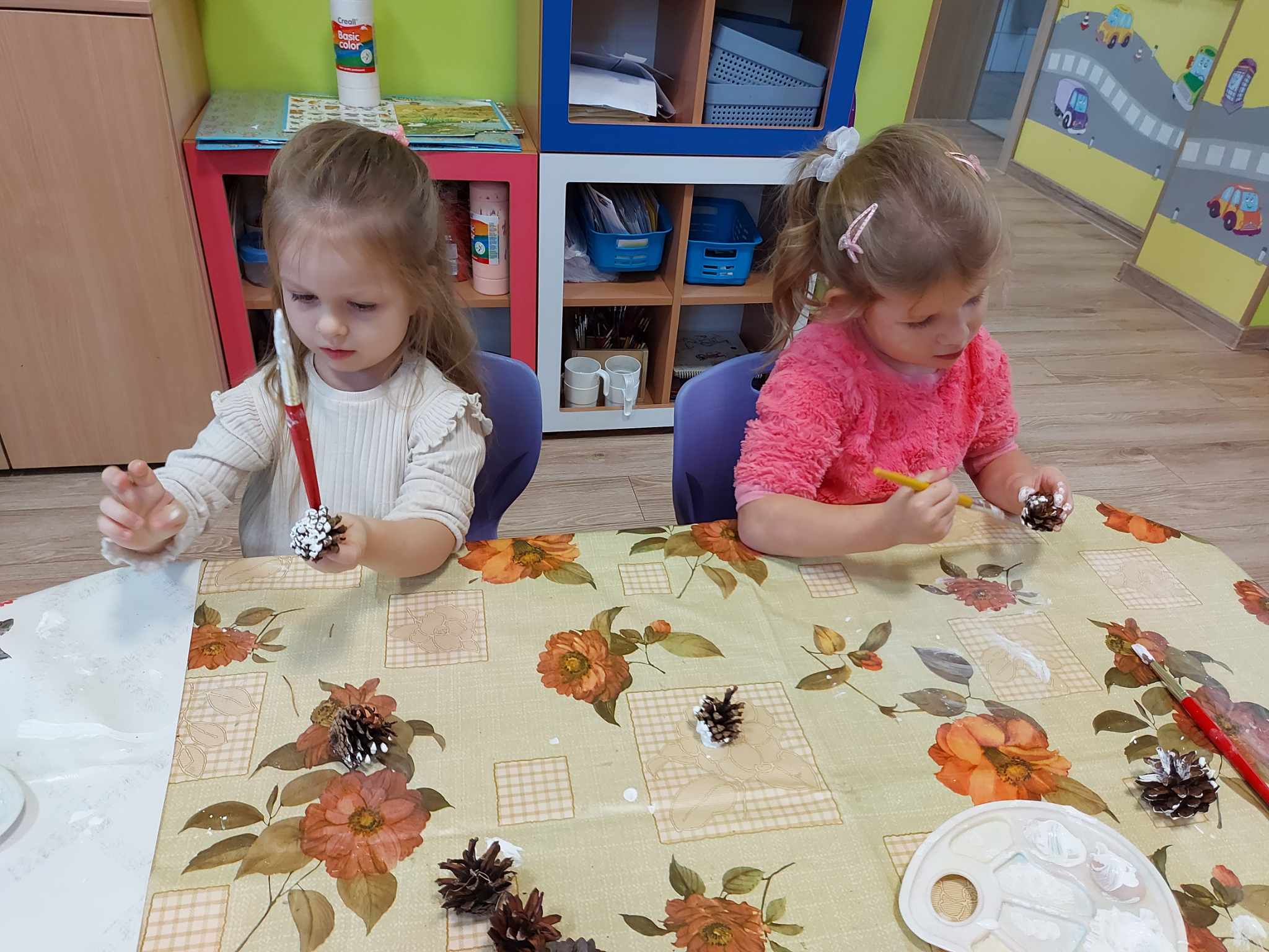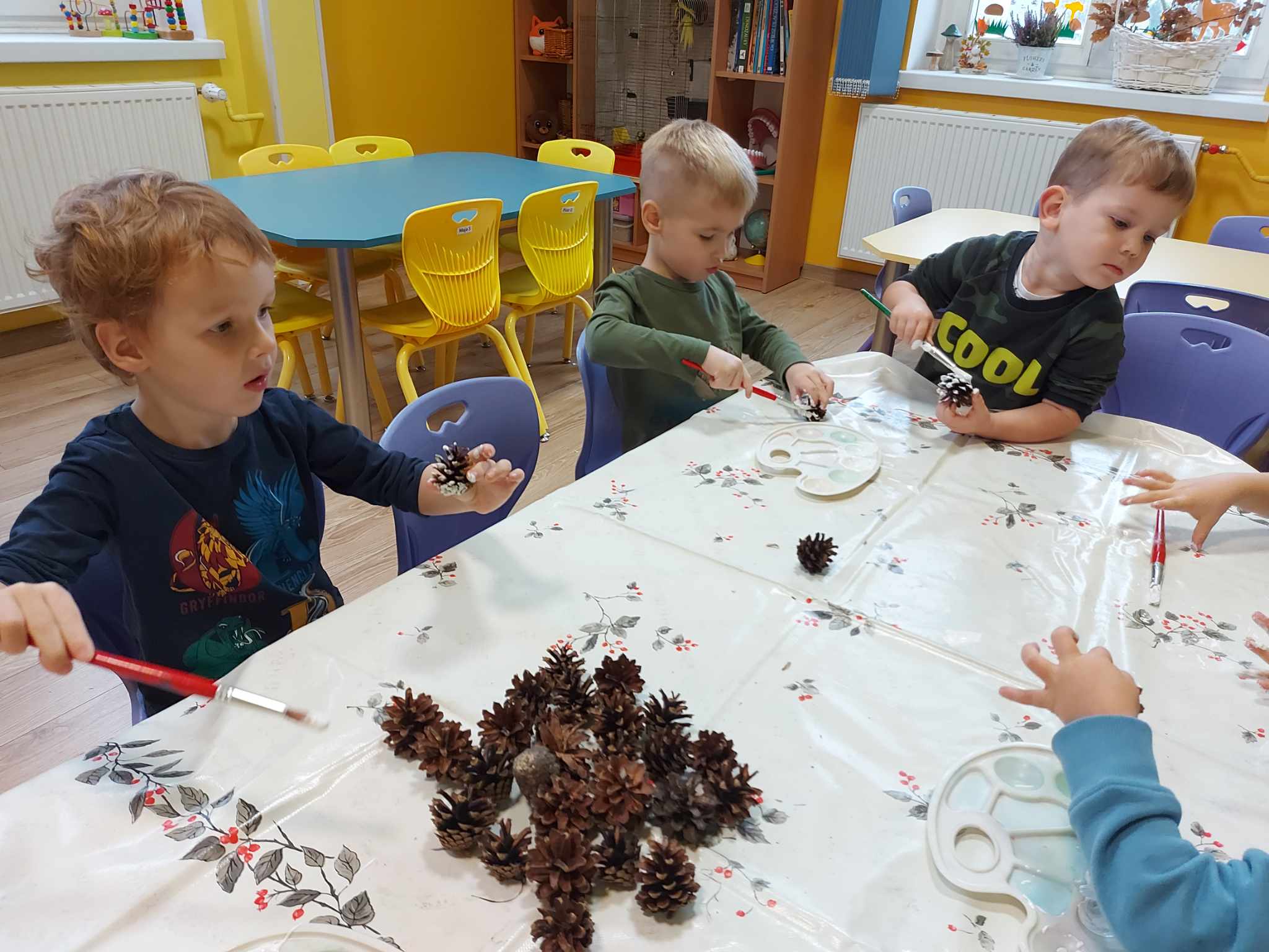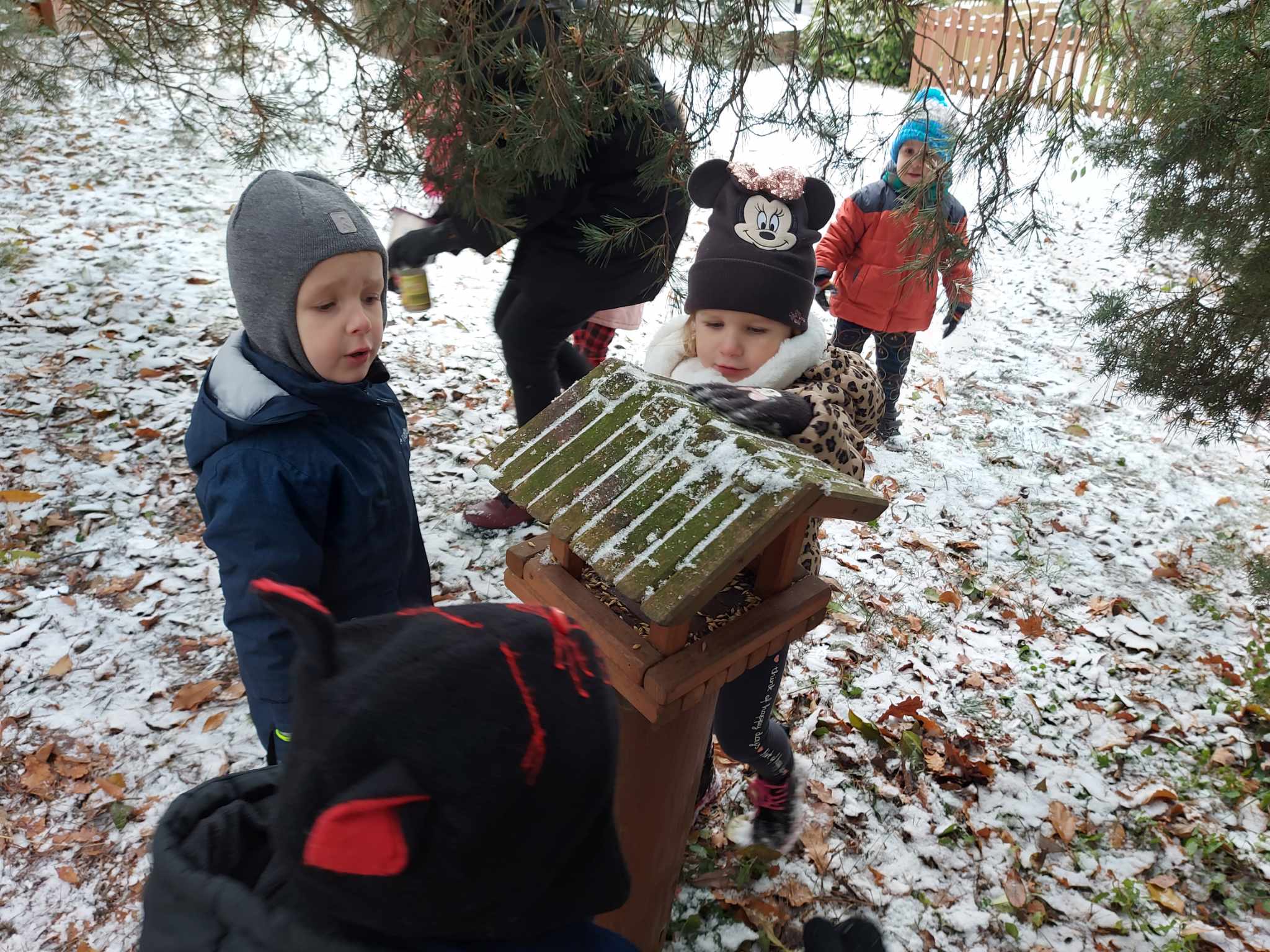 Nasze najmłodsze pociechy przygotowują powoli ozdoby na kiermasz świąteczny oraz korzystając z pięknej pogody, dokarmiają ptaki w karmniku.