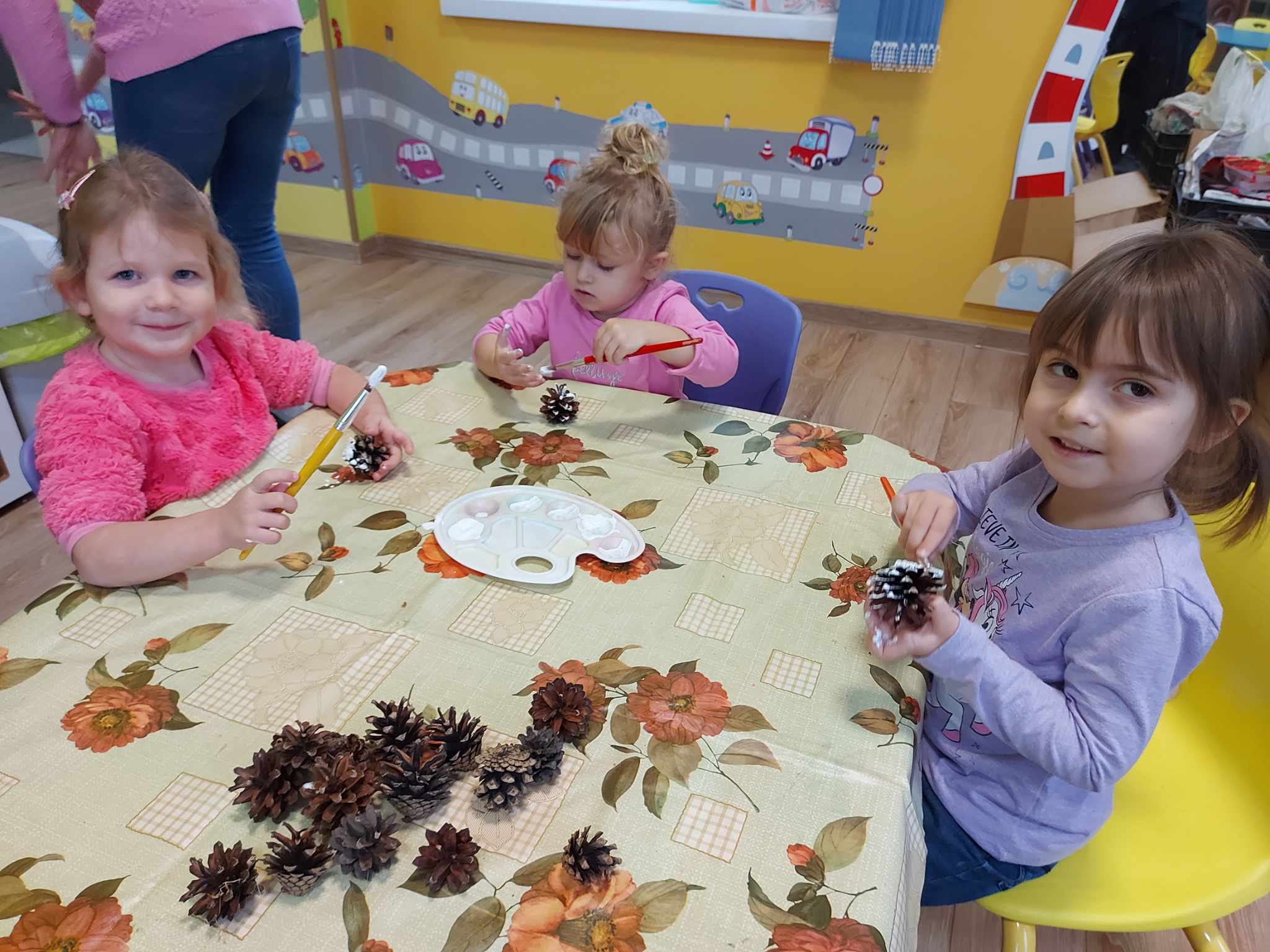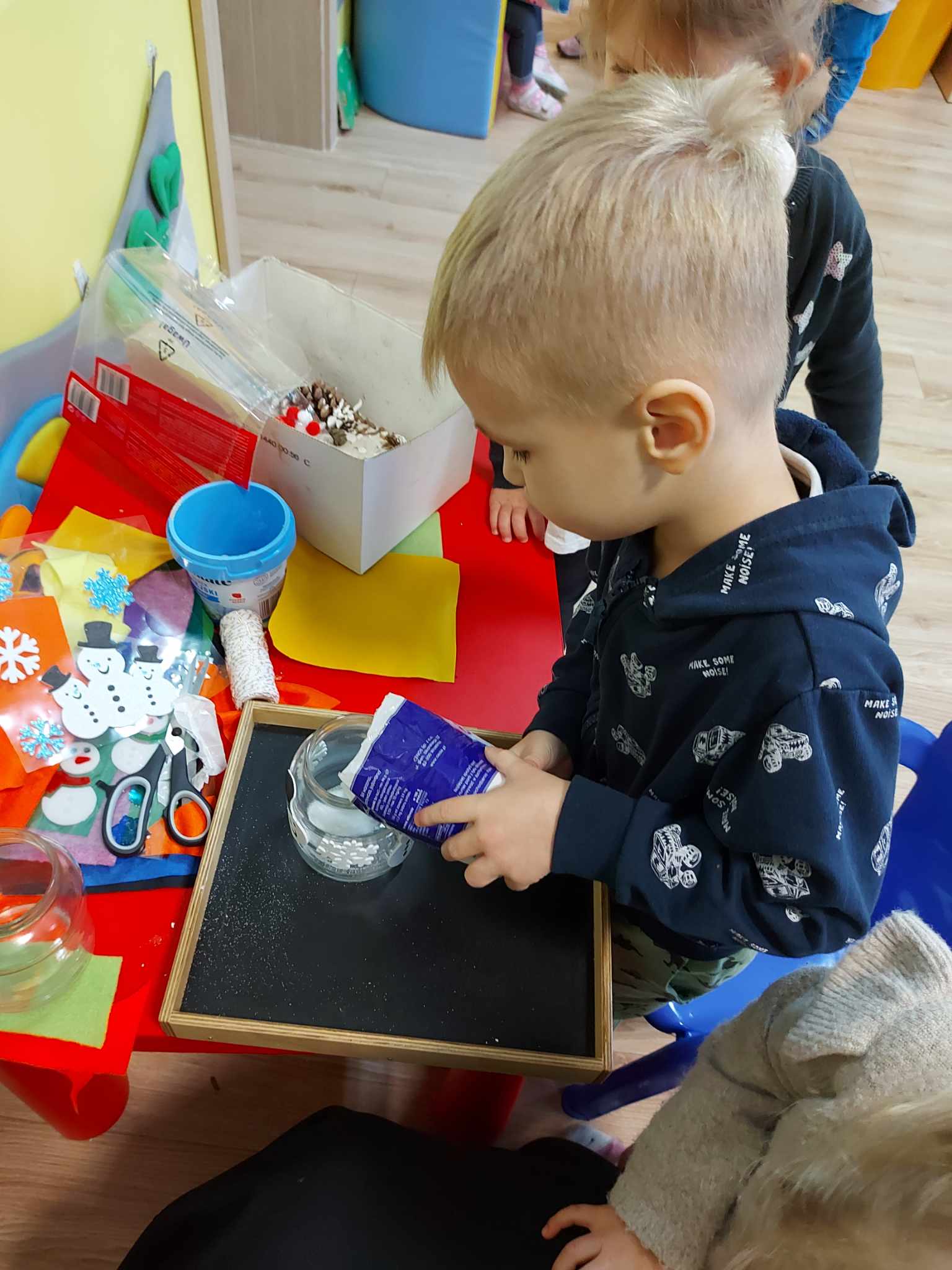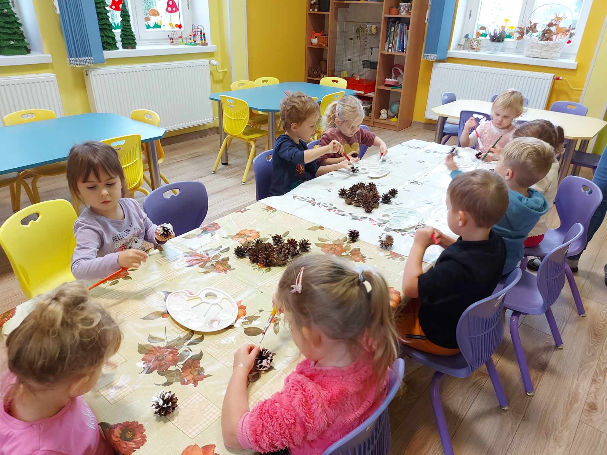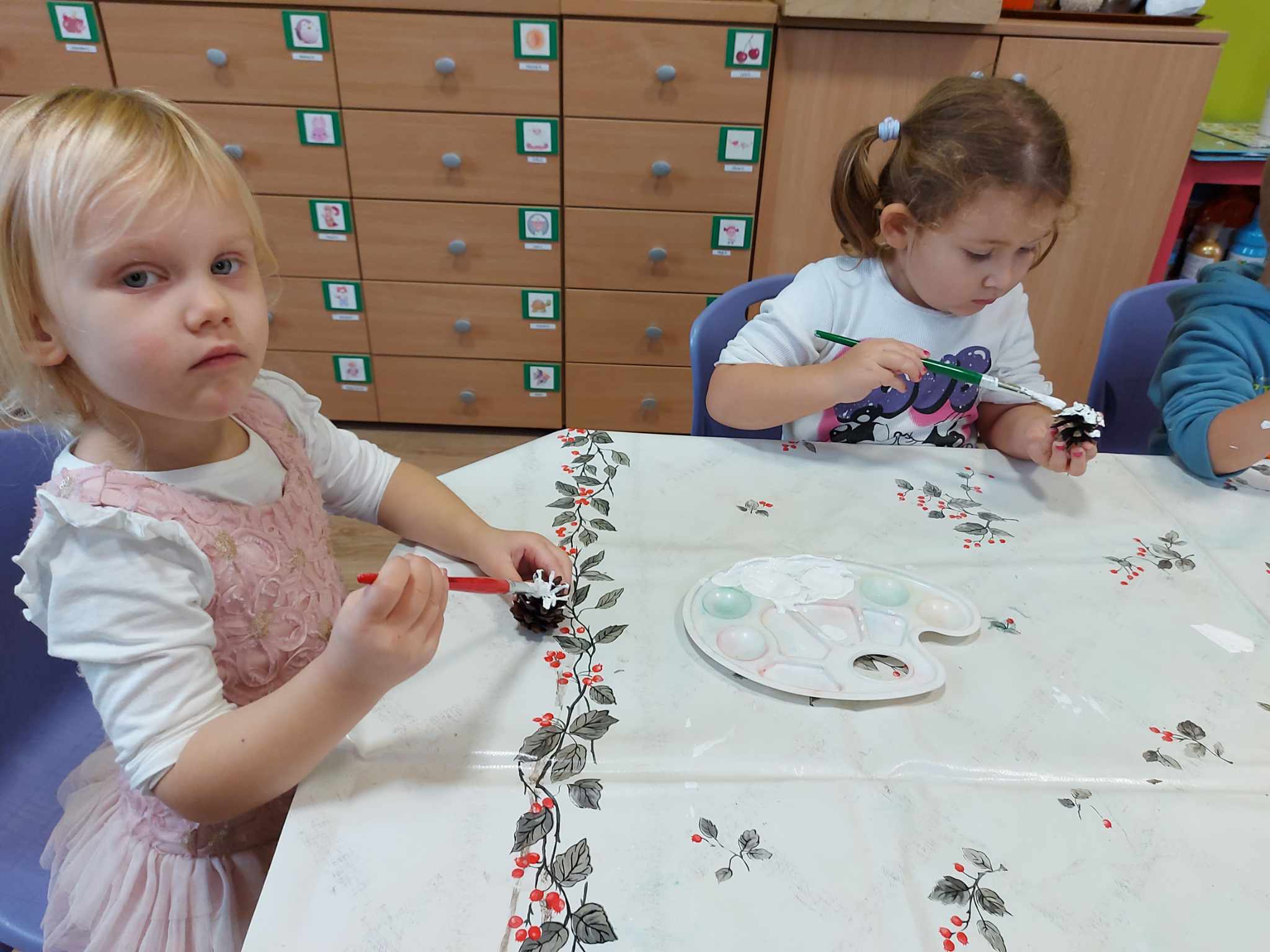Nasze najmłodsze pociechy przygotowują powoli ozdoby na kiermasz świąteczny oraz korzystając z pięknej pogody, dokarmiają ptaki w karmniku.