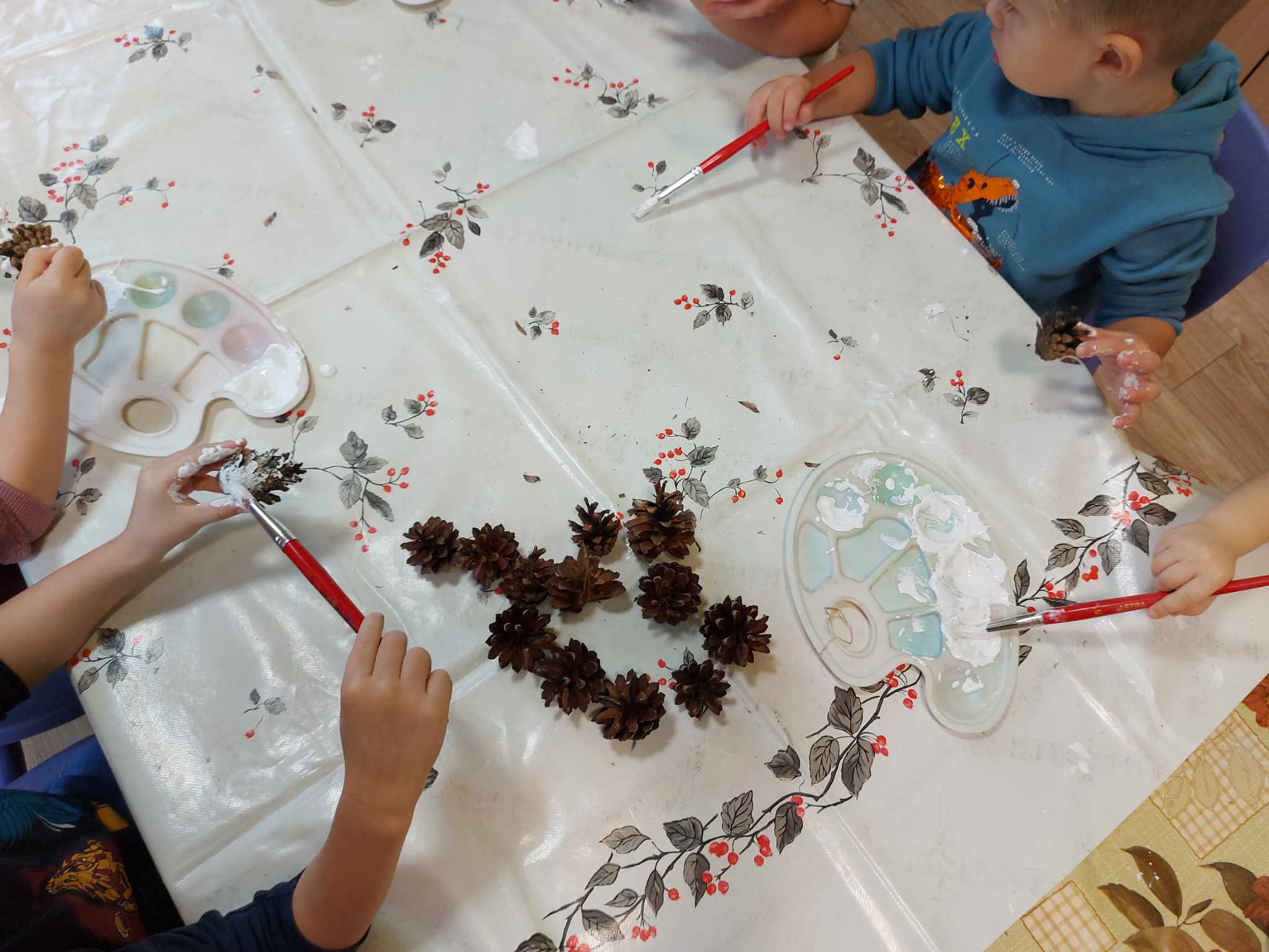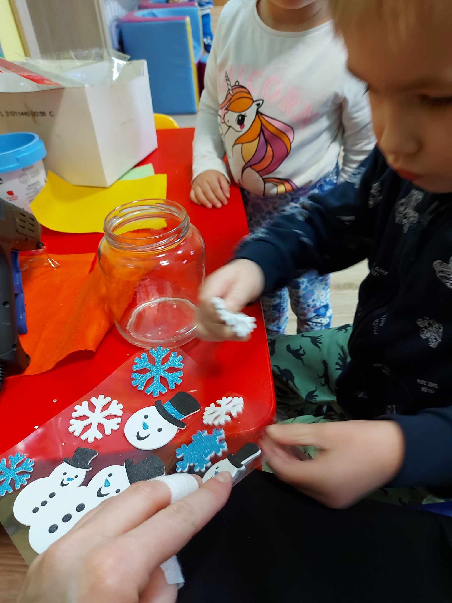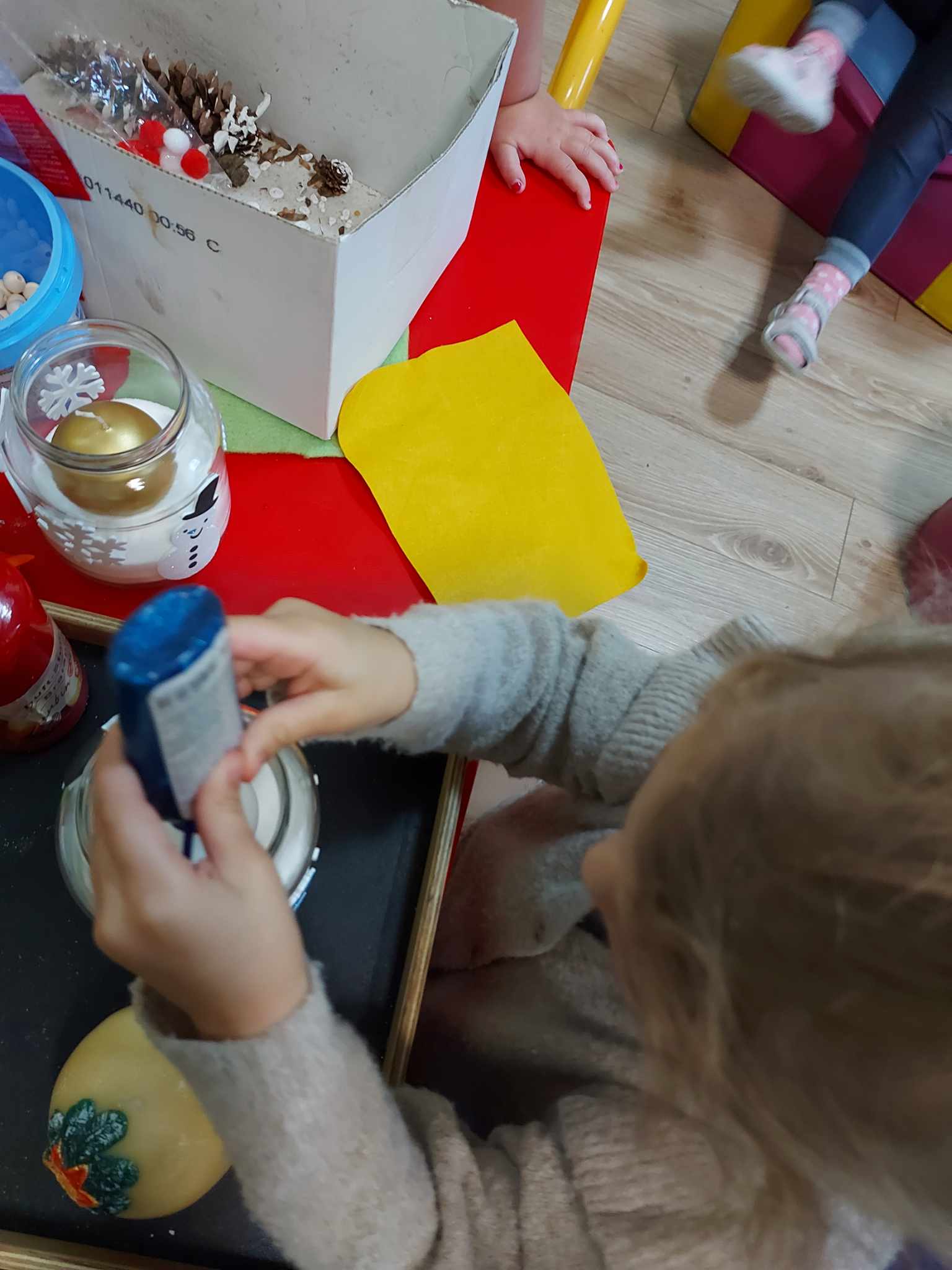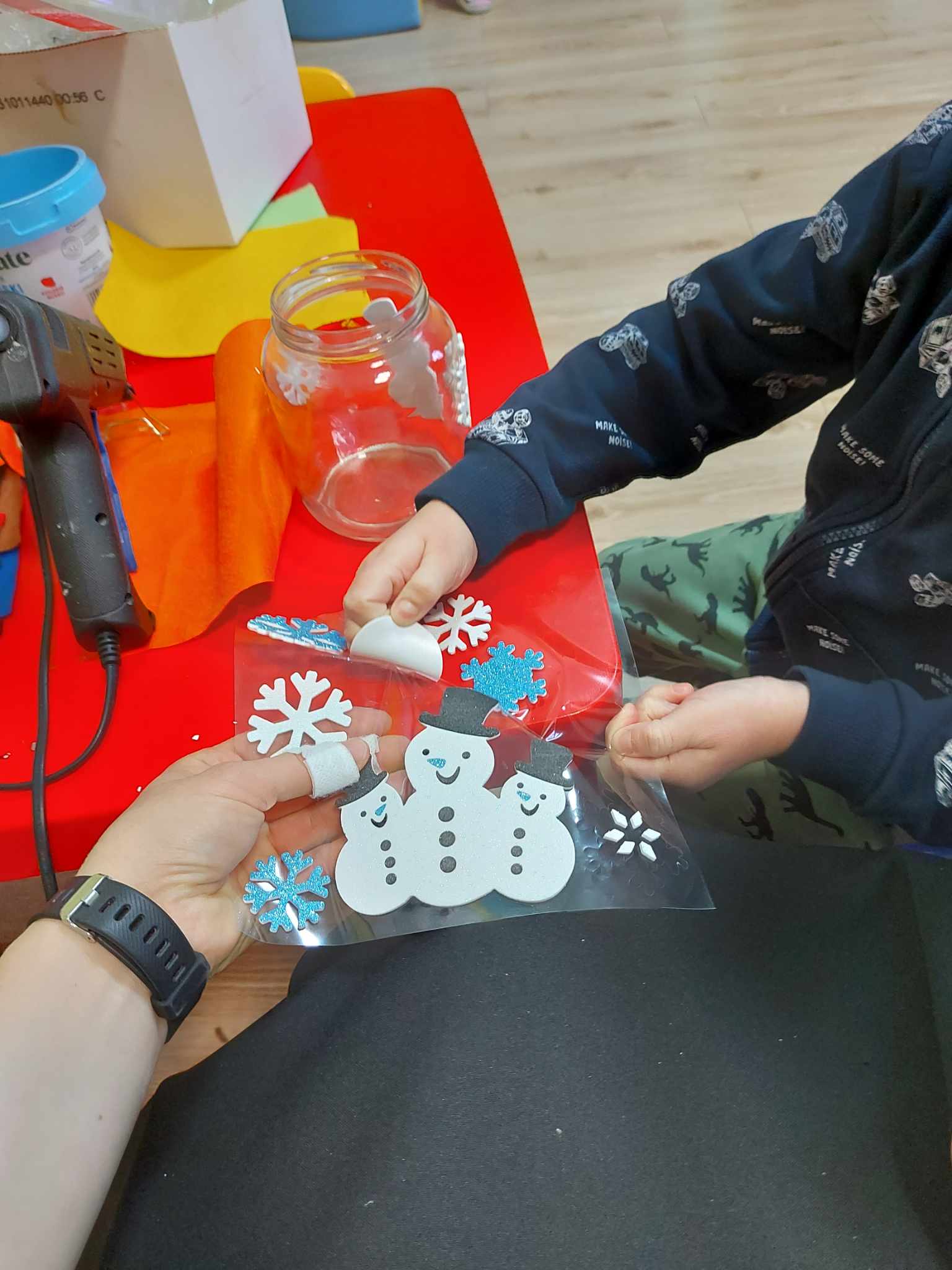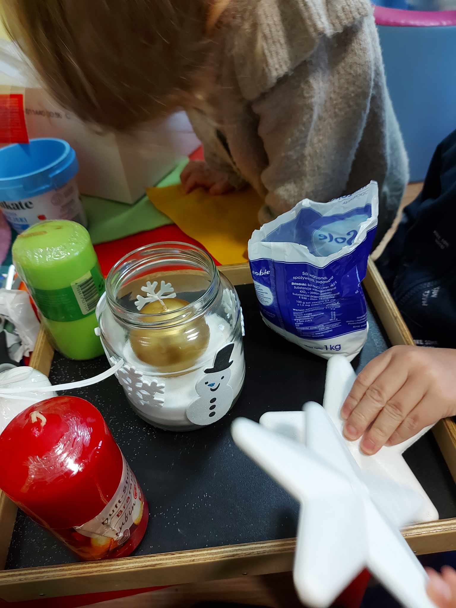 Nasze najmłodsze pociechy przygotowują powoli ozdoby na kiermasz świąteczny oraz korzystając z pięknej pogody, dokarmiają ptaki w karmniku.