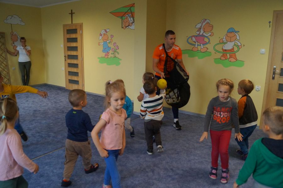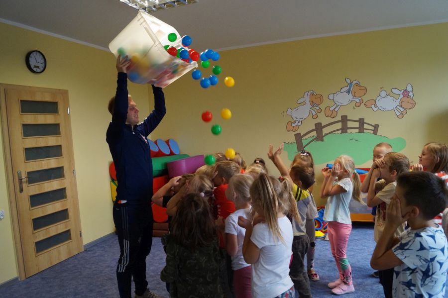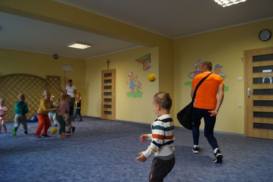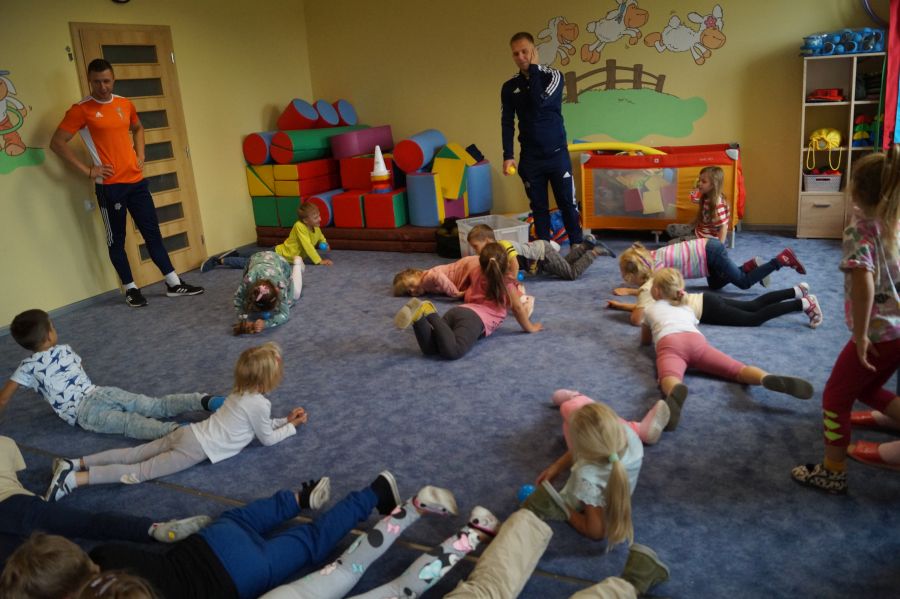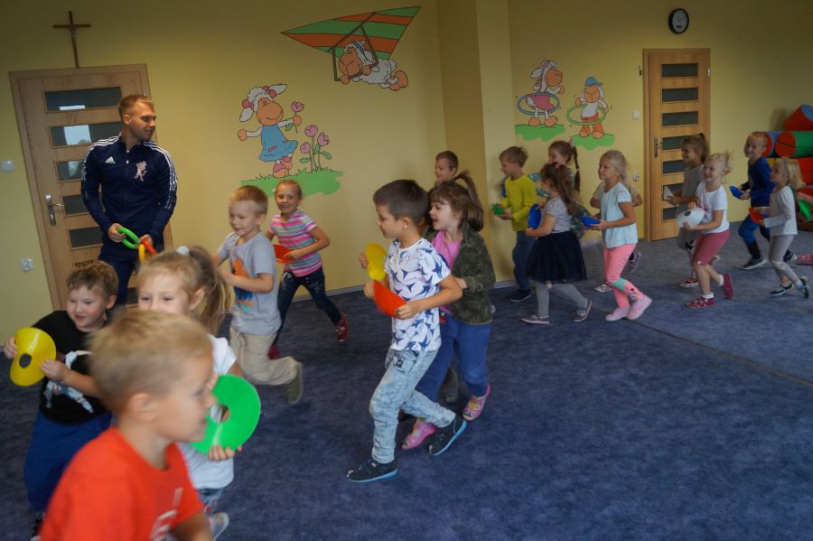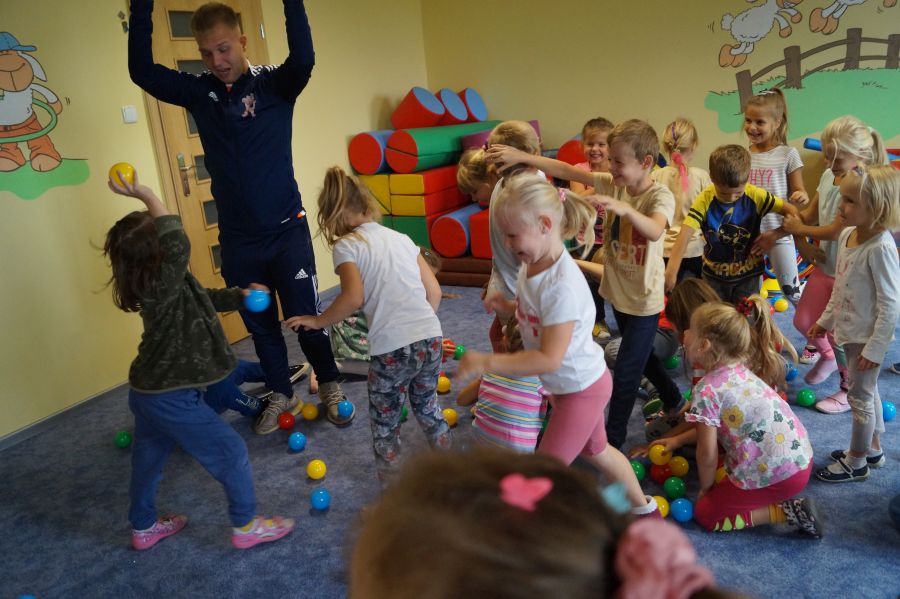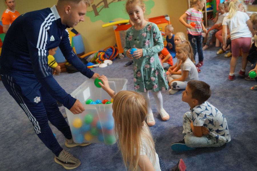 Wszystkie dzieci miały okazję poznać trenerów z „Fabryki sportu”, którzy będą prowadzić zajęcia dodatkowe w naszym przedszkolu. Zabawa była super, a dzieci w większości zachwycone, co widać po ich minach 😉