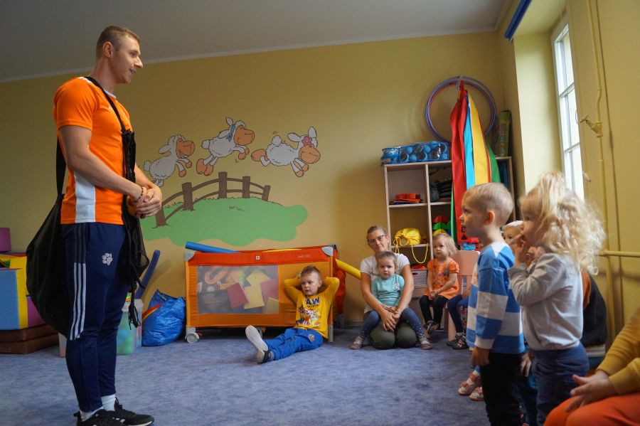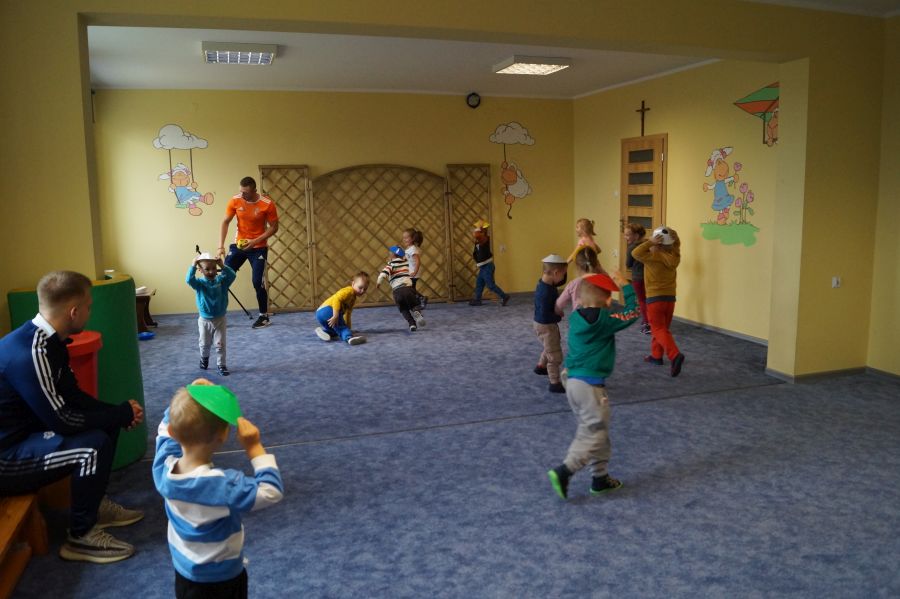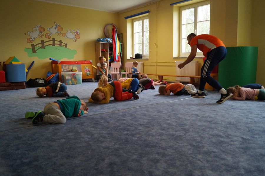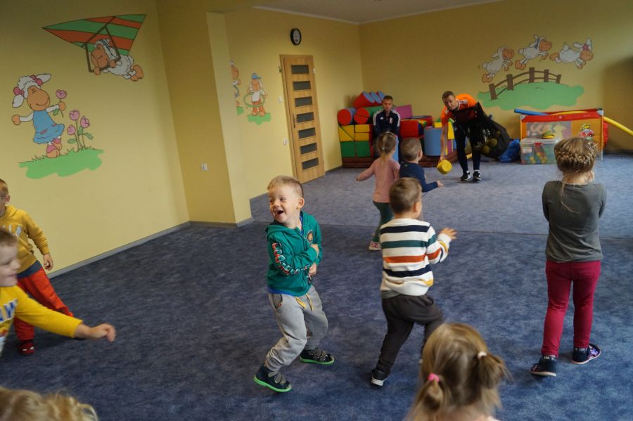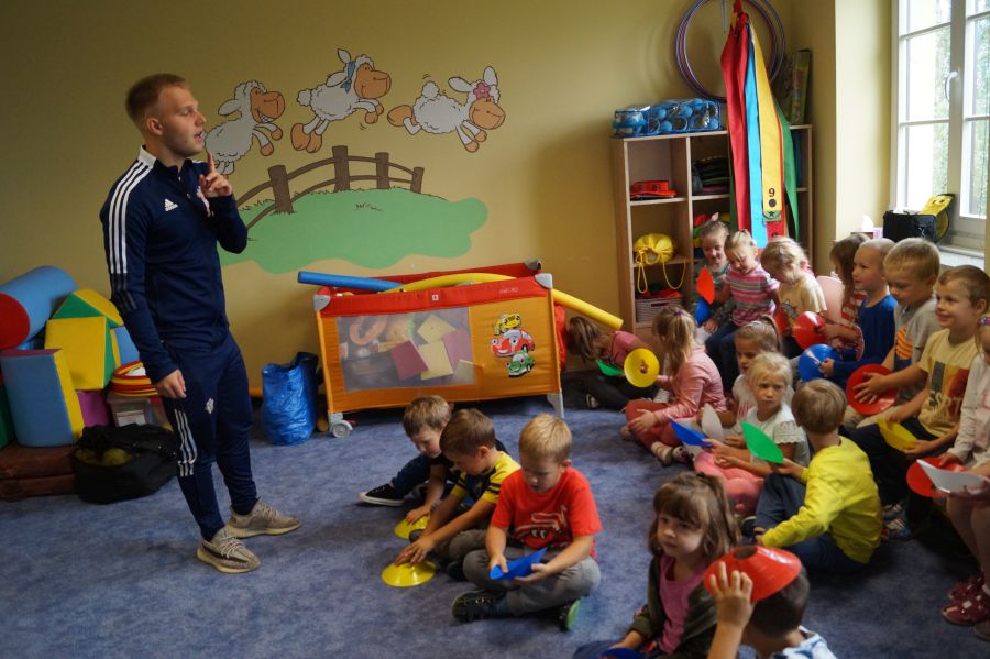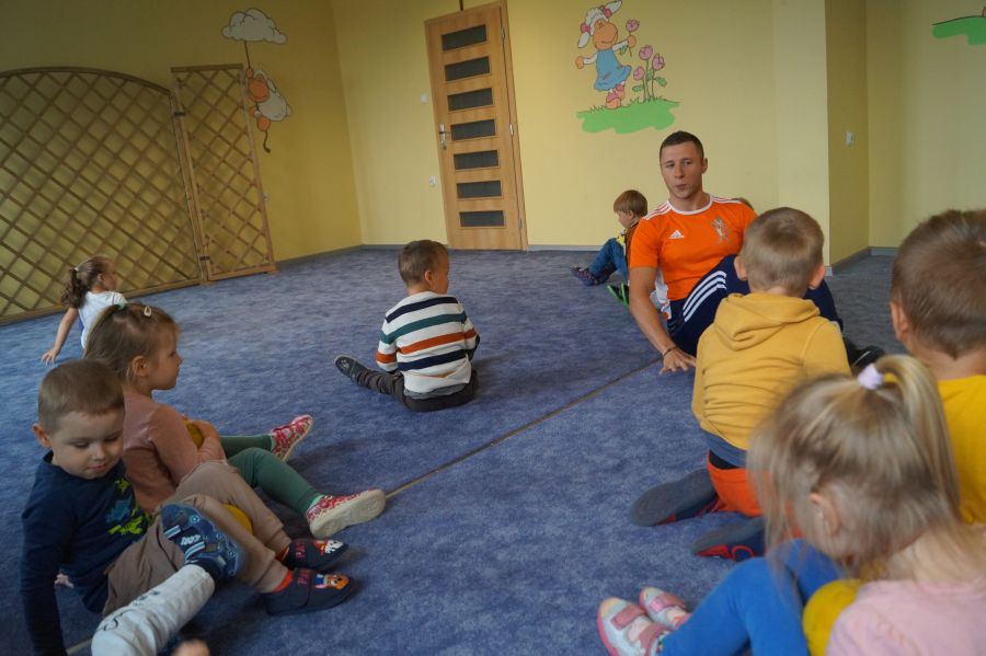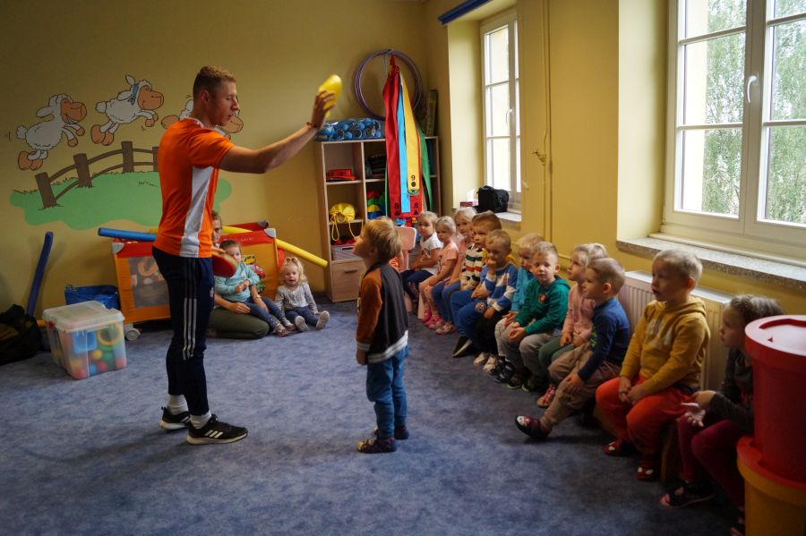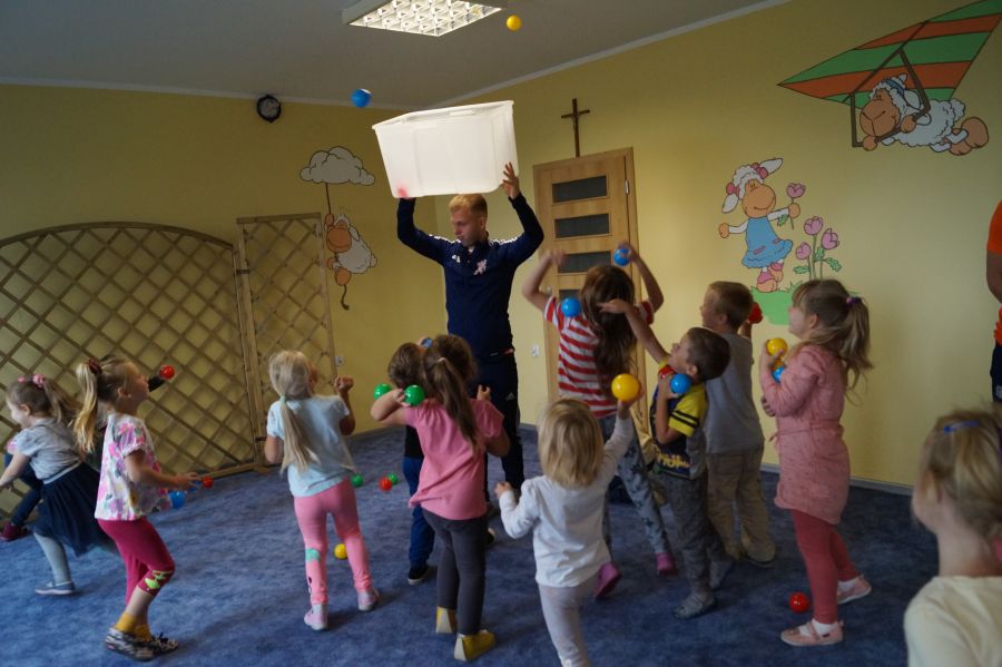 Wszystkie dzieci miały okazję poznać trenerów z „Fabryki sportu”, którzy będą prowadzić zajęcia dodatkowe w naszym przedszkolu. Zabawa była super, a dzieci w większości zachwycone, co widać po ich minach 😉