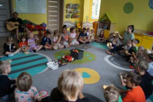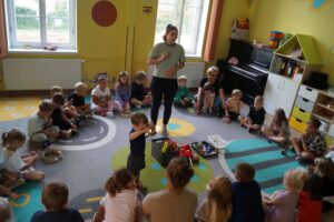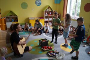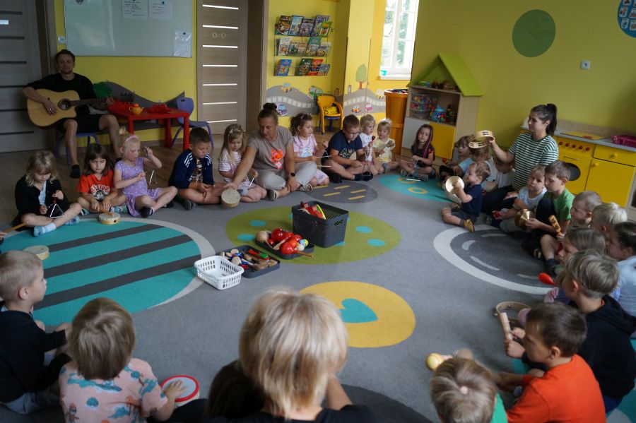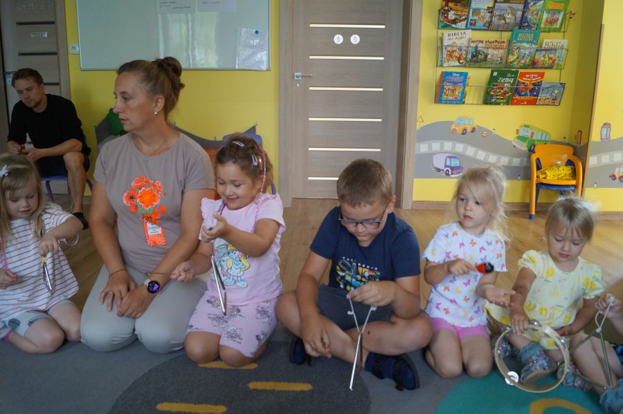 Dzisiaj mieliśmy wyjątkowych gości- przyjechali do nas rodzice Zosi i Stasia, aby wprowadzić nasze dzieci w świat muzyki. Serdecznie dziękujemy za tak cudowne, atrakcyjne, muzyczne zajęcia.