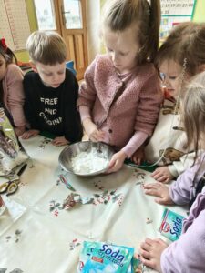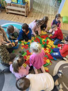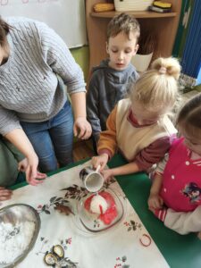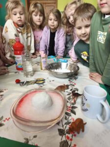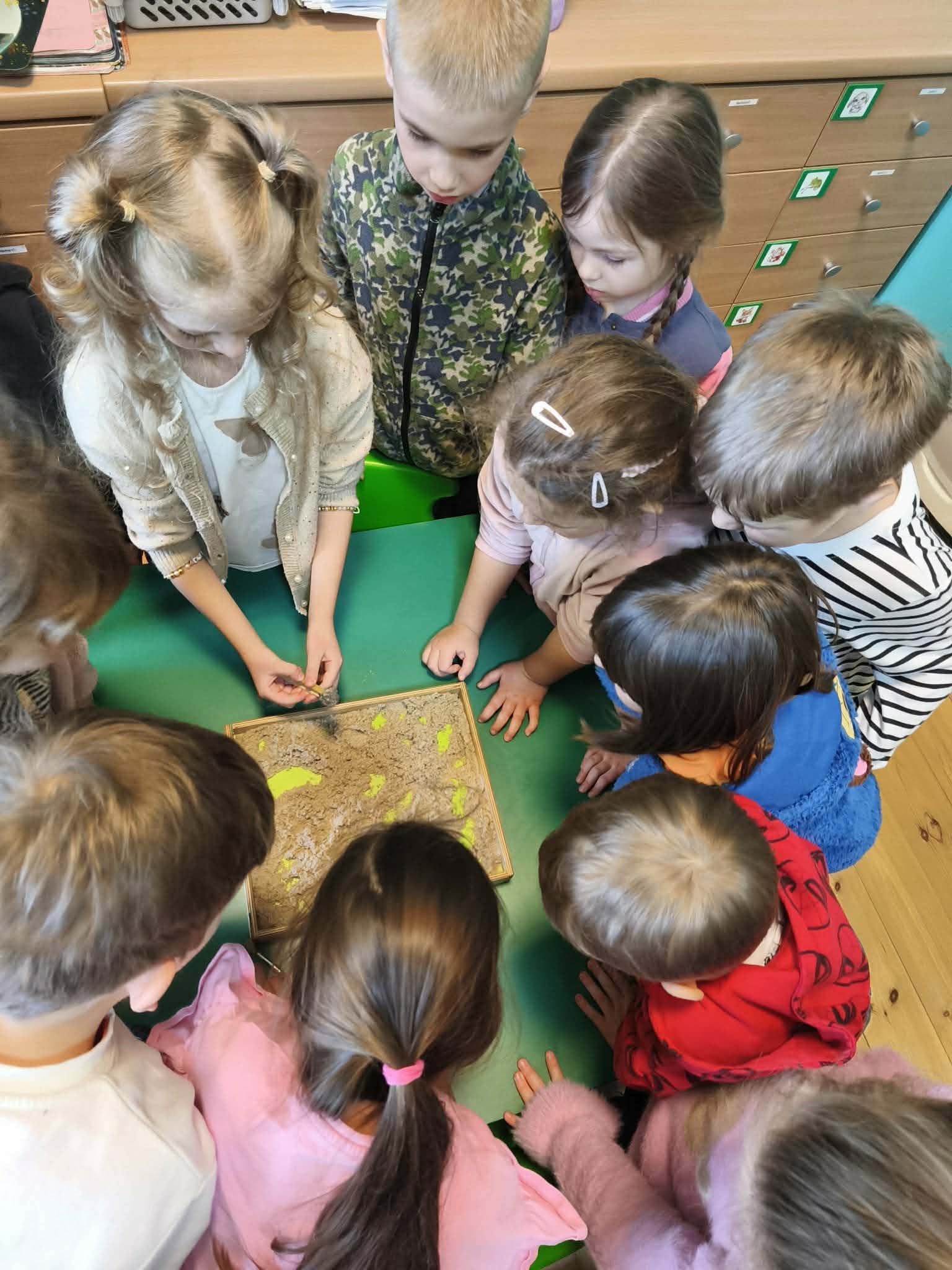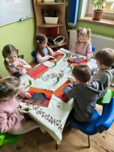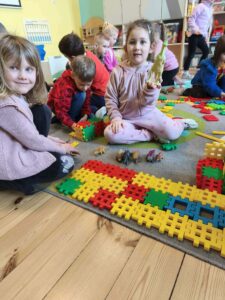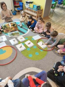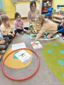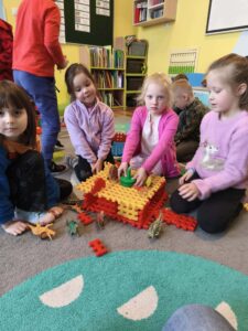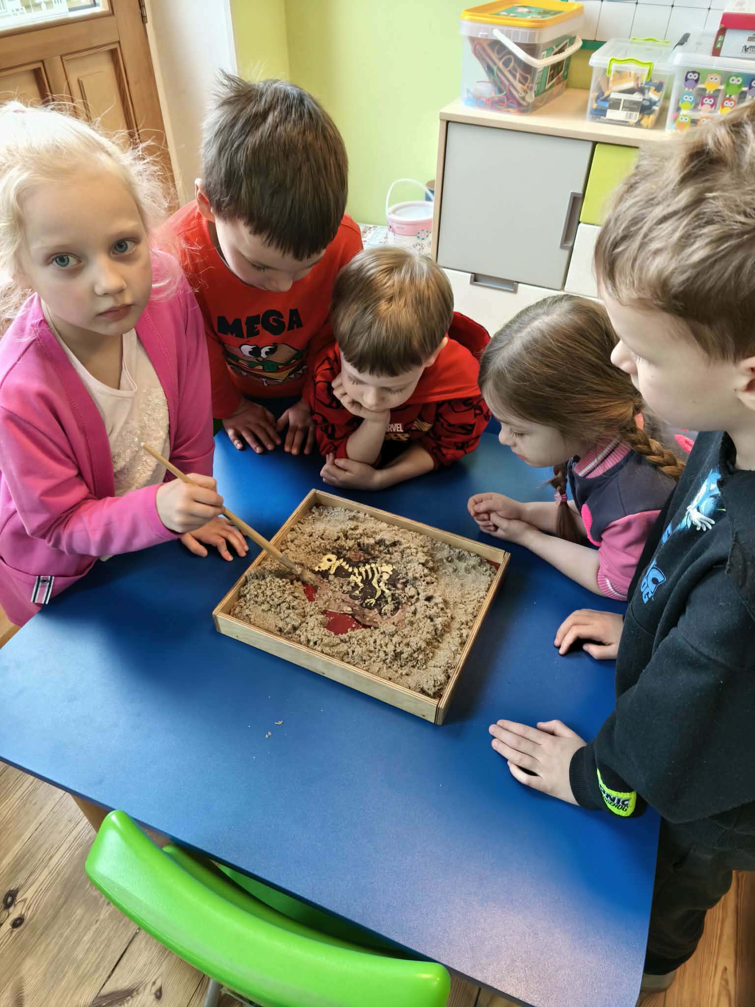 Bratki przeniosły się do świata prehistorycznych gadów. Dzieci zapoznały się z podstawowymi informacjami o dinozaurach: wygląd i sposób życia. Zbudowały Park Jurajski, poznały tajniki pracy paleontologów, wykonały pracę plastyczną „Szkielet dinozaura ” z patyczków higienicznych, a także uczestniczyły w eksperymentach narodzin dinozaurów. Był to czas nauki i zabawy.