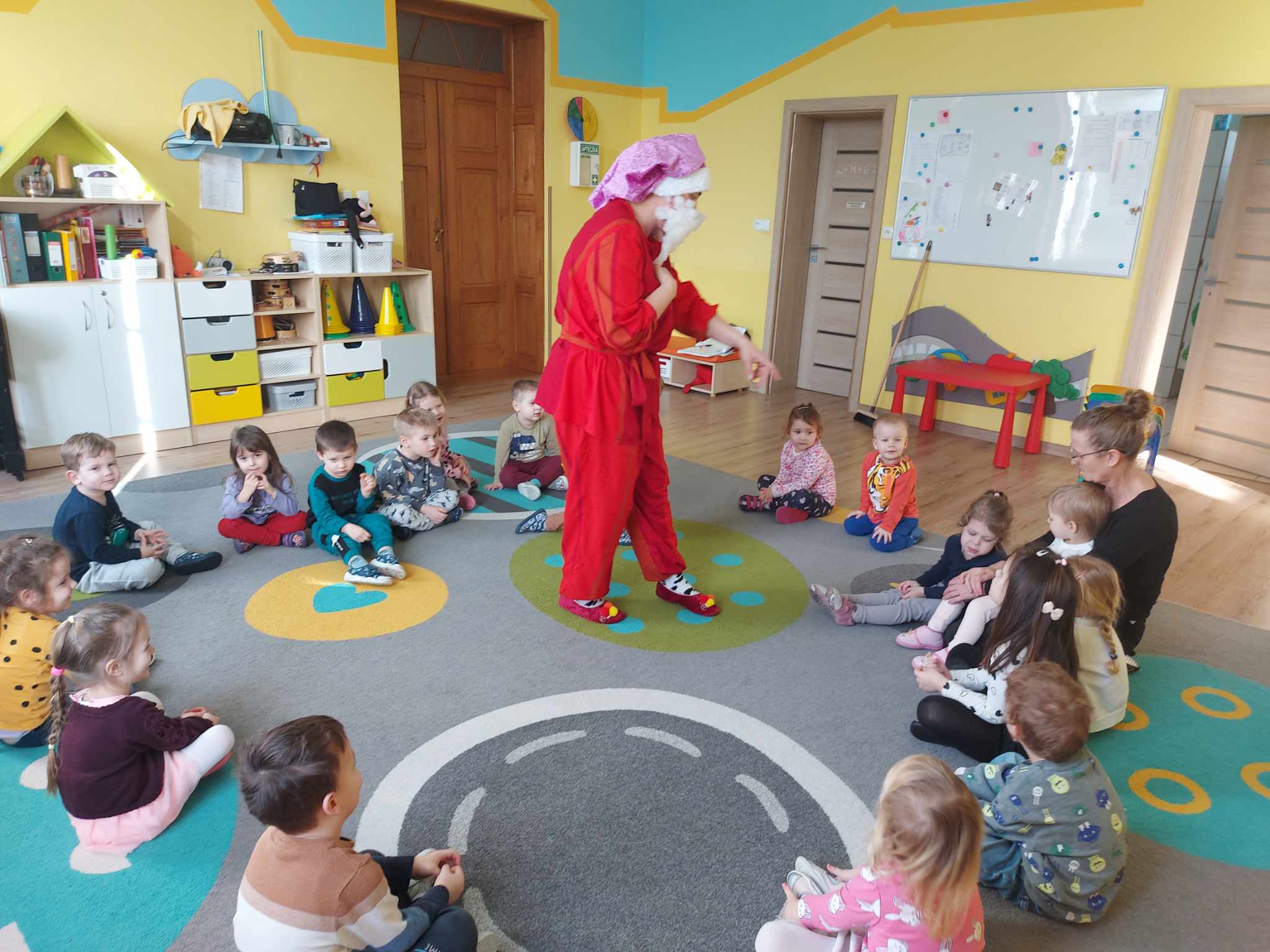 Maluszki przeniosły się do krainy baśni, a zajęcia poprowadził dla nich Krasnal Gapcio. Zajęcia z Krasnalem Gapciem.