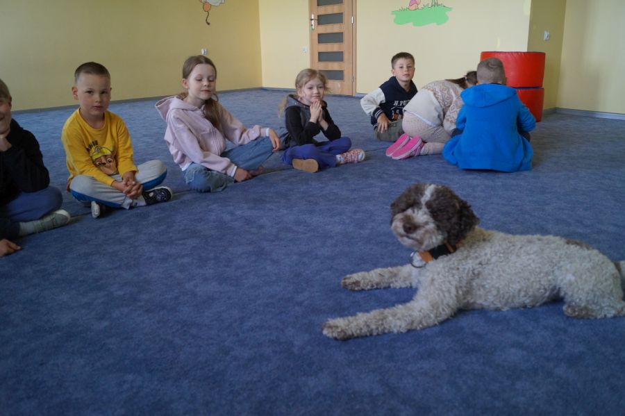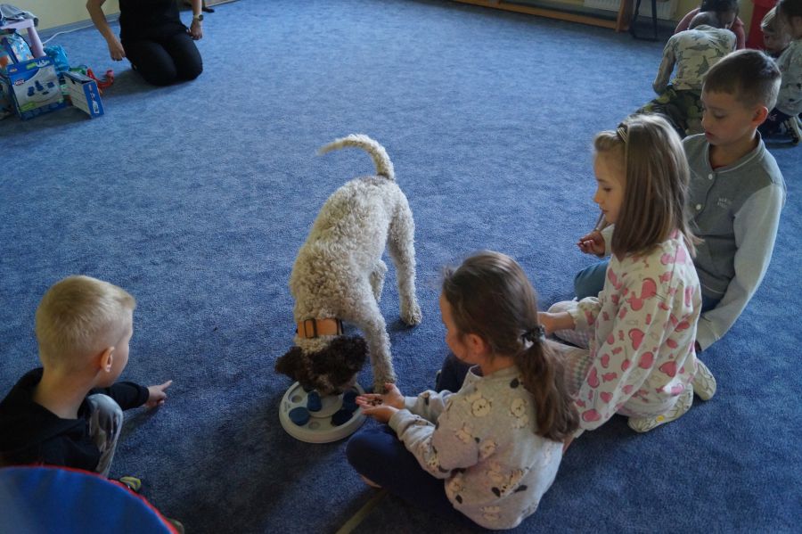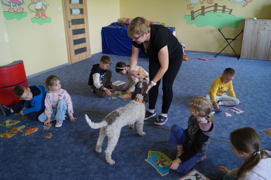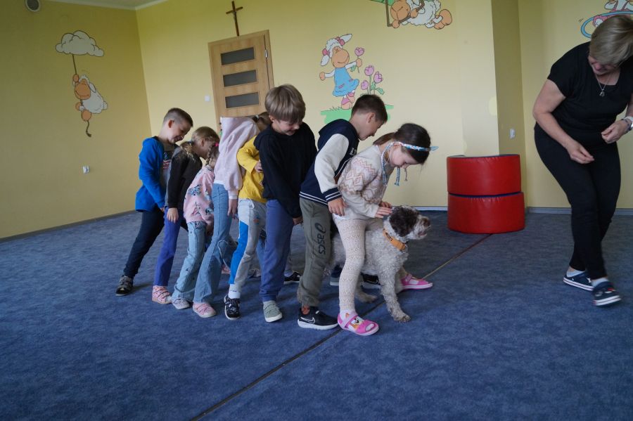 Większość dzieci czeka niecierpliwie na kolejne spotkanie z psem. Każde zajęcie uczy ich czegoś nowego. Zajęcia z psem.
