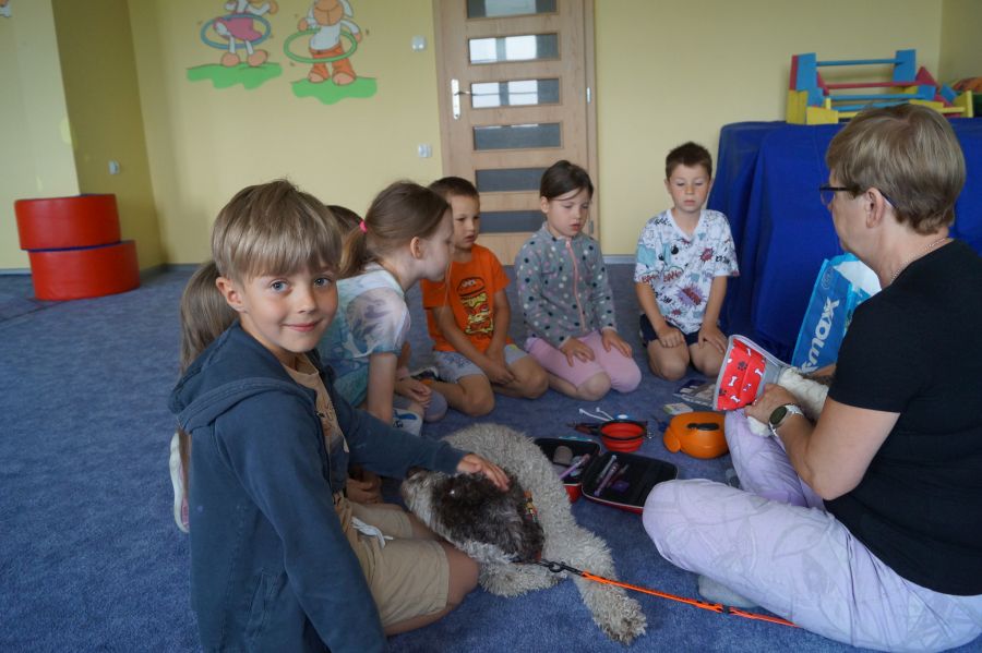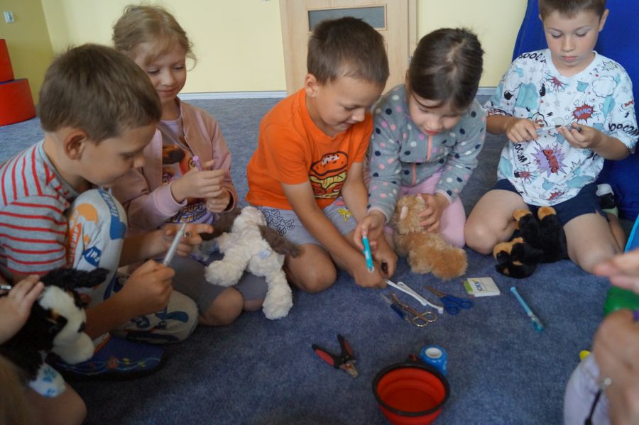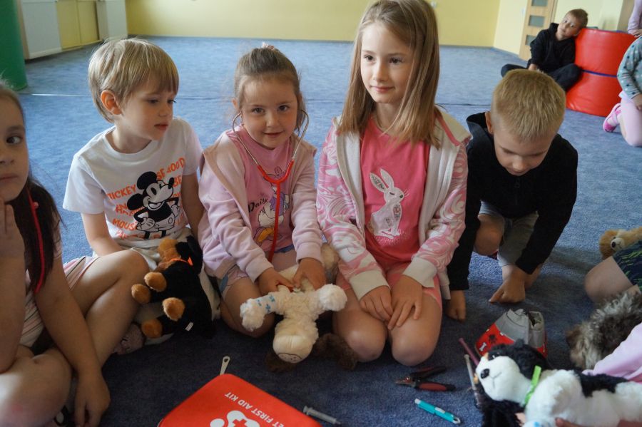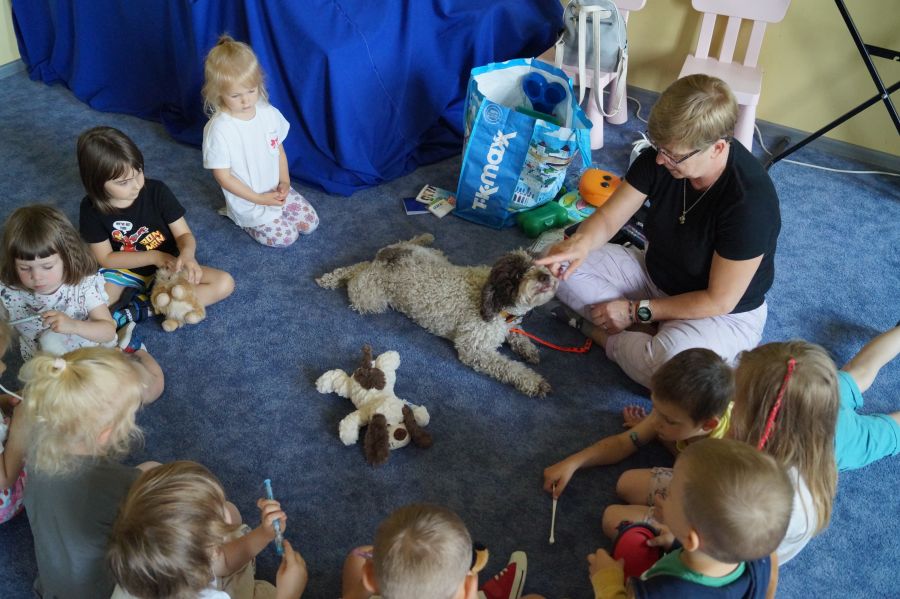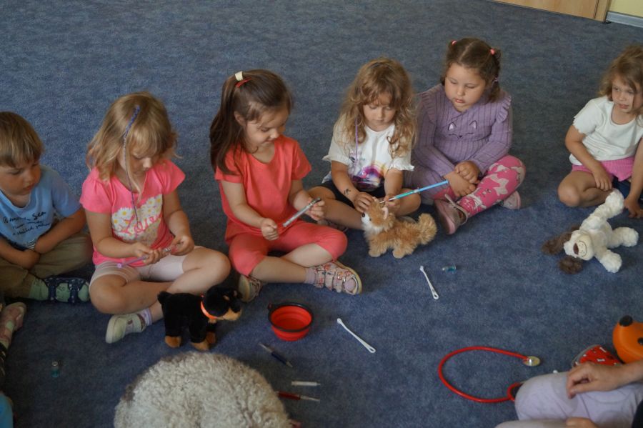 Tym razem podczas zajęć z psem, dzieci miały okazję poznać prace weterynarza.