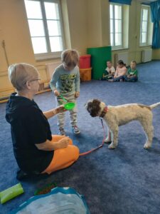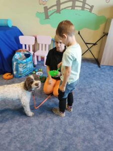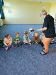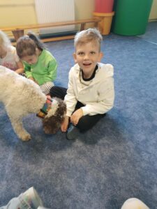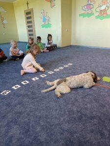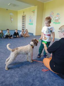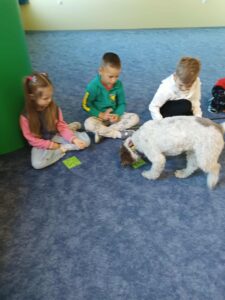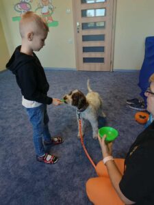 Pierwszy raz w tym roku przyjechała do nas p. Wioleta razem ze swoim pupilem- Moly. Dzieci z wielkim zainteresowaniem biorą udział w tych zajęciach.