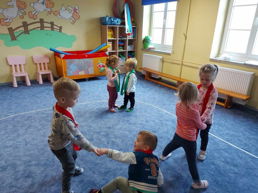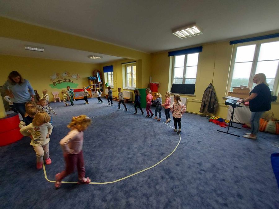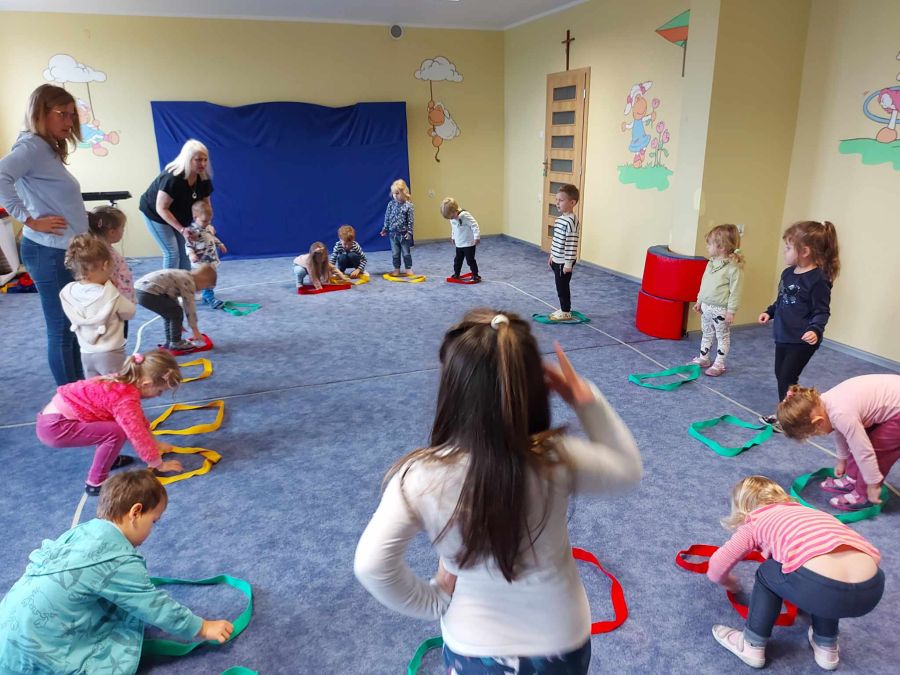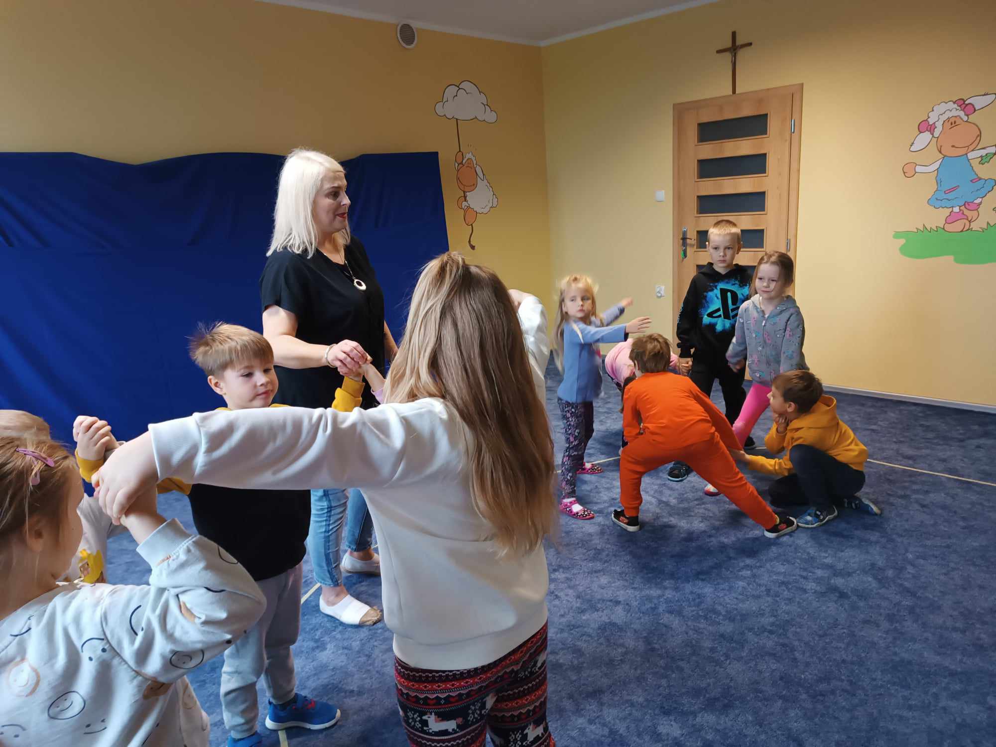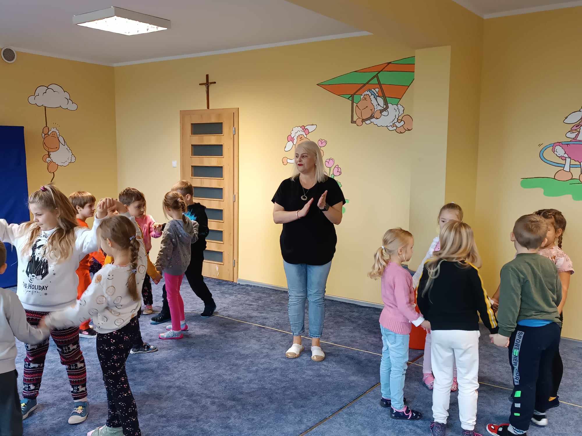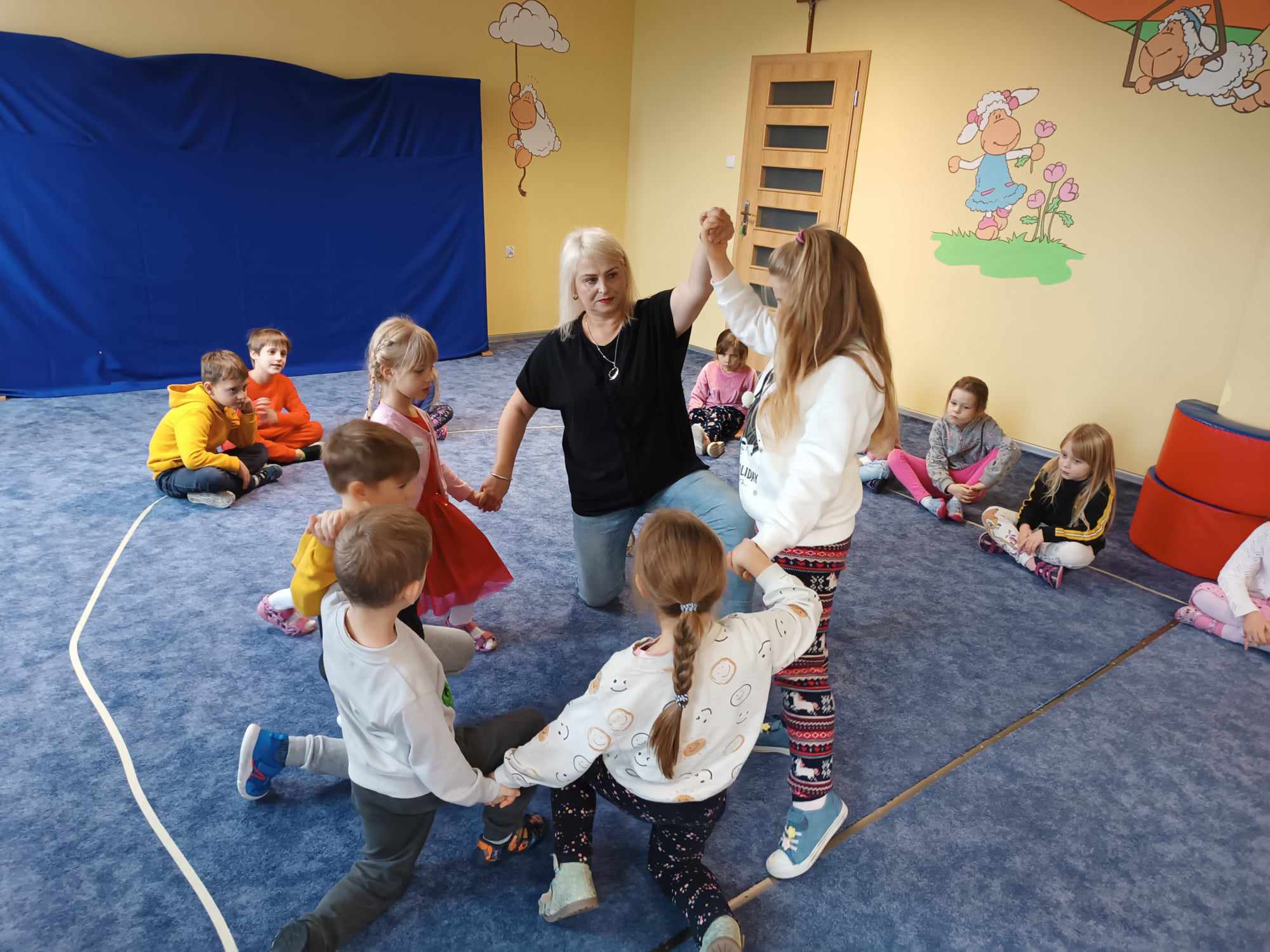 W poniedziałki w naszym przedszkolu prowadzone są zajęcia z rytmiki. W tym roku osobą prowadzącą jest pani Oksana.